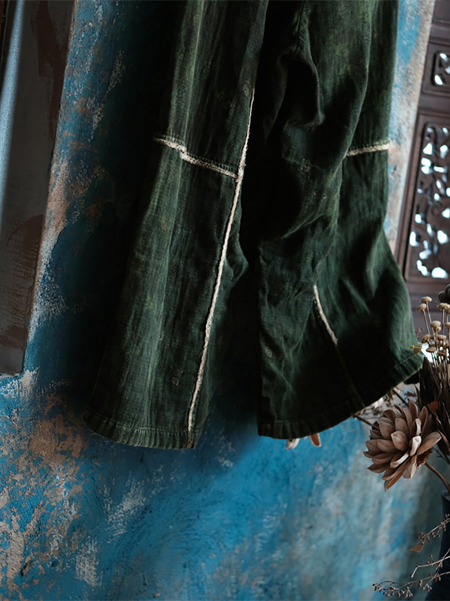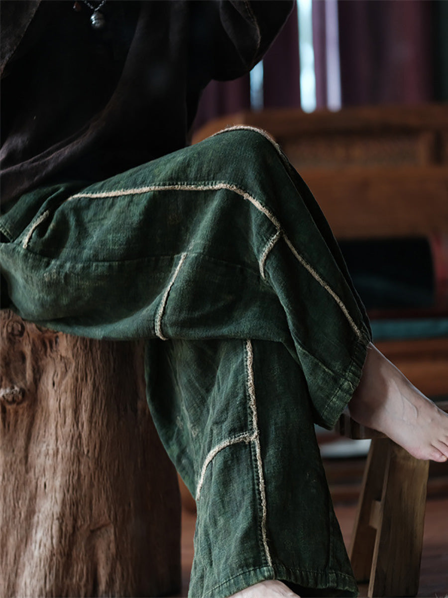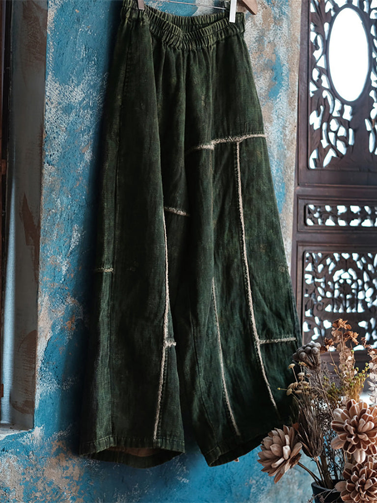 Plus Size Women Summer Retro Spliced Wide-leg Cotton Pants