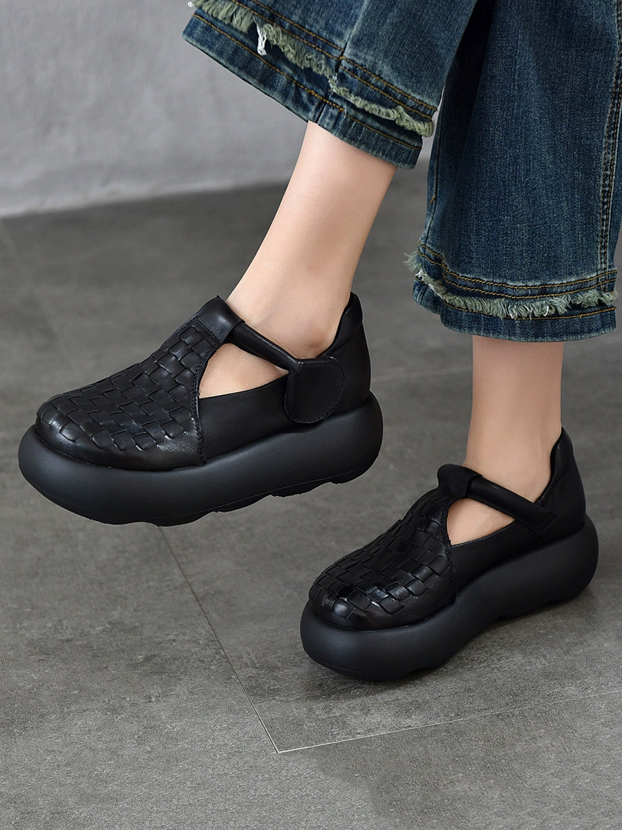Women Summer Genuine Leather Weave Platform Shoes