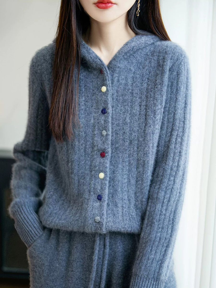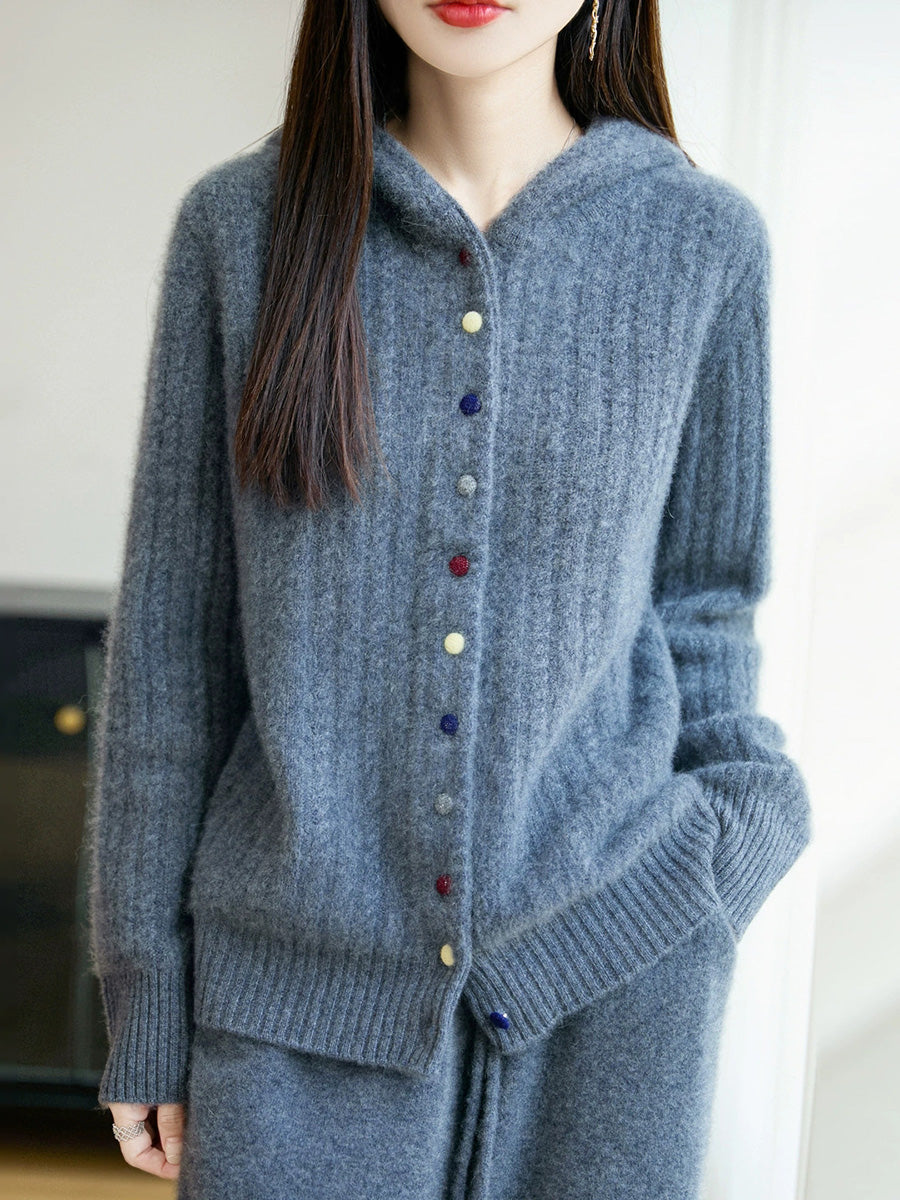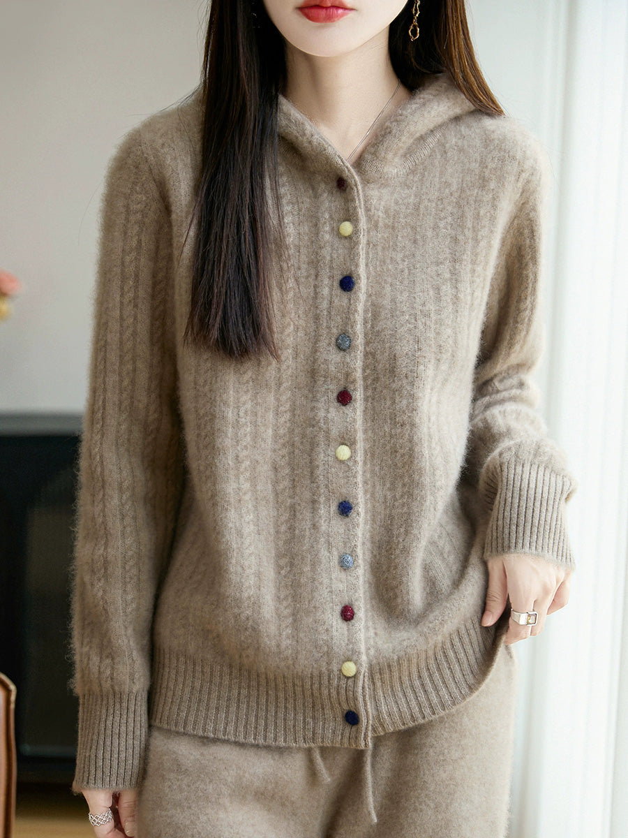 Women Winter Casual Pure Color Hooded Sweater Coat