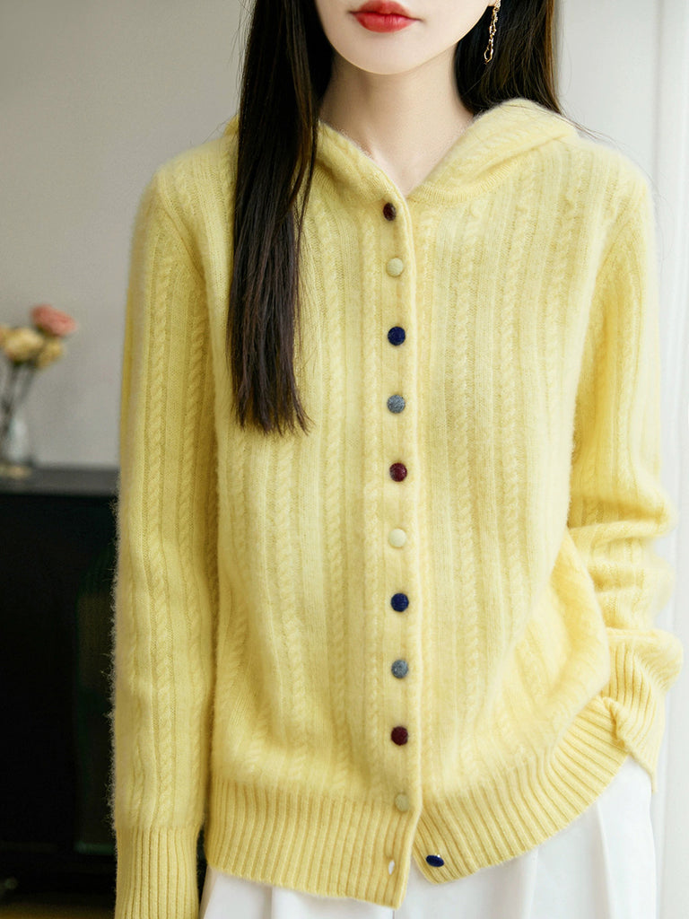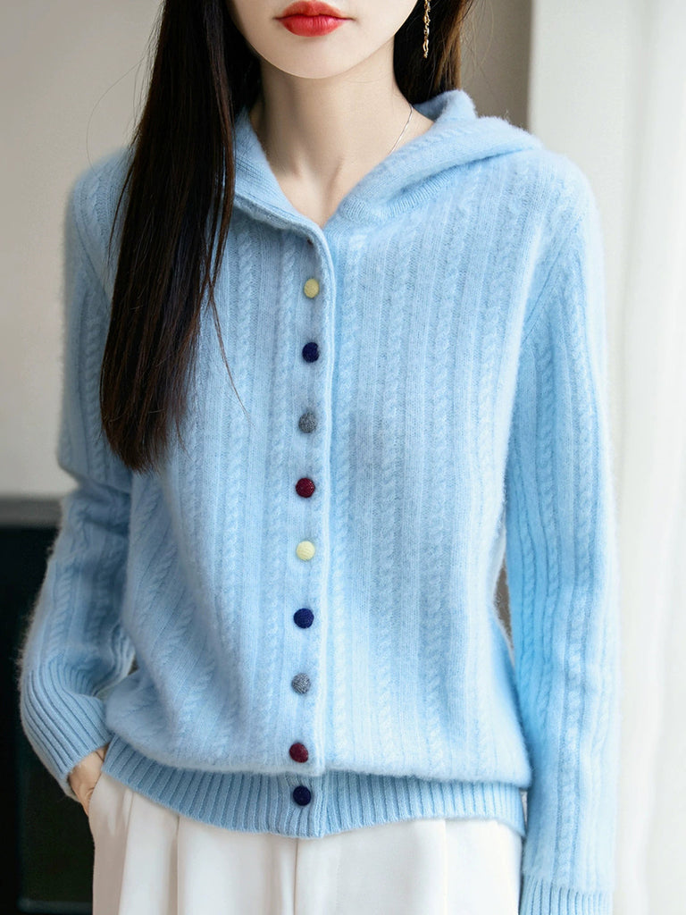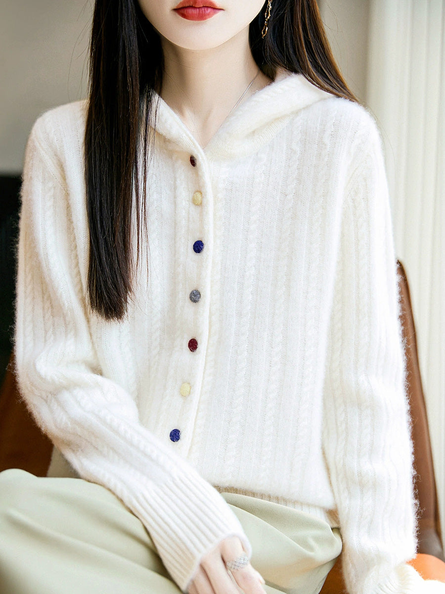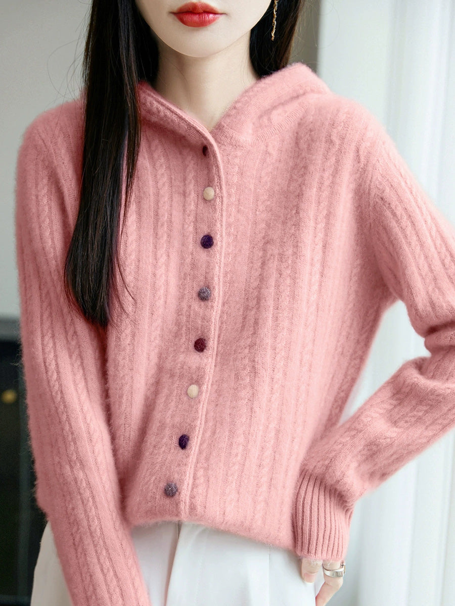Women Winter Casual Pure Color Hooded Sweater Coat