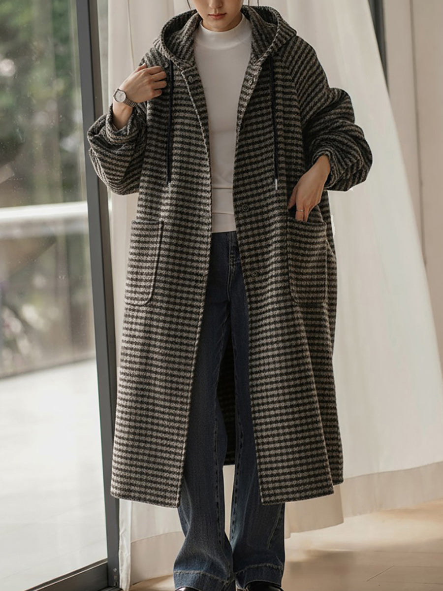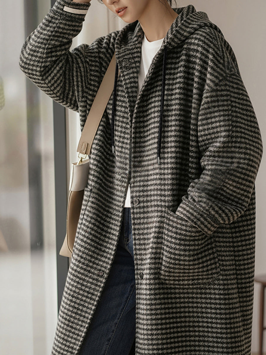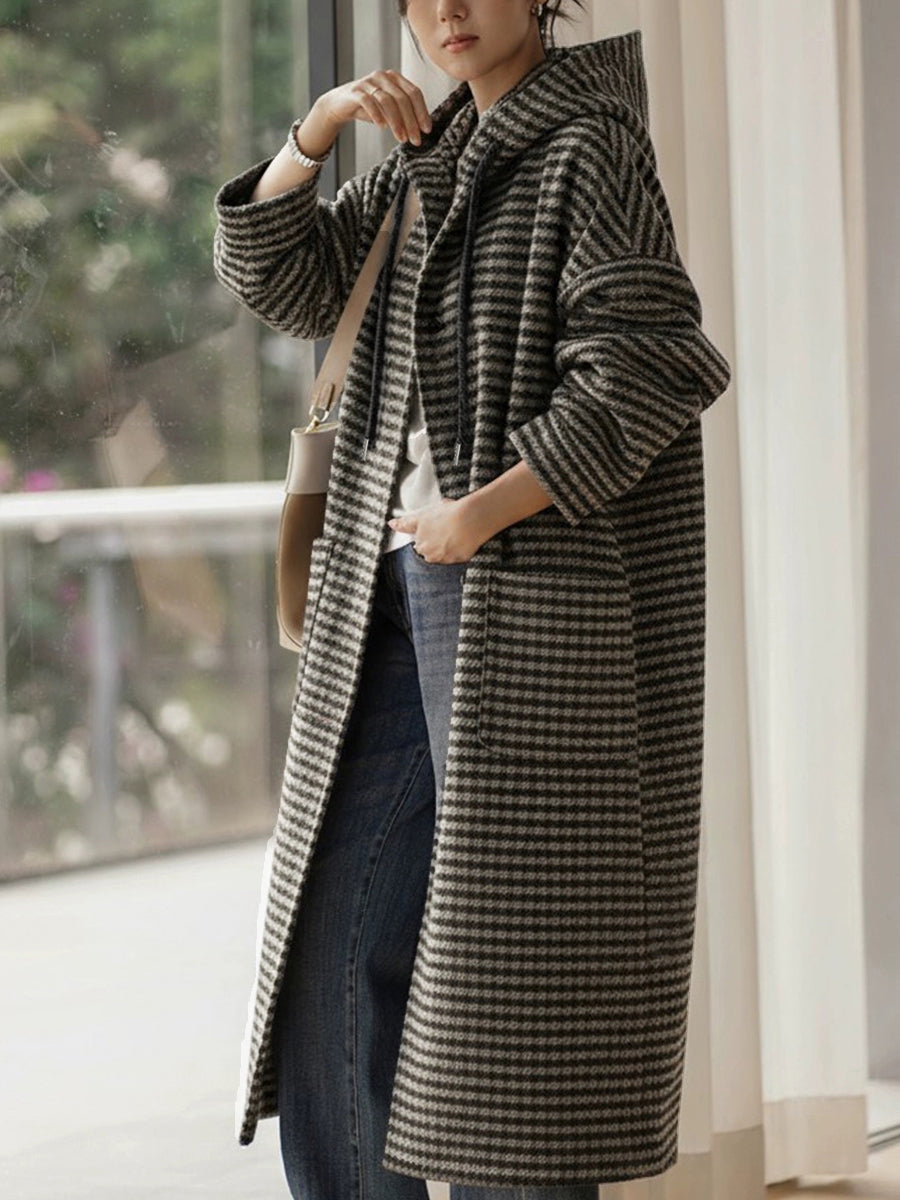 Plus Size Women Vintage Winter Stripe Hooded Coat