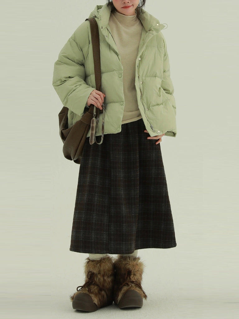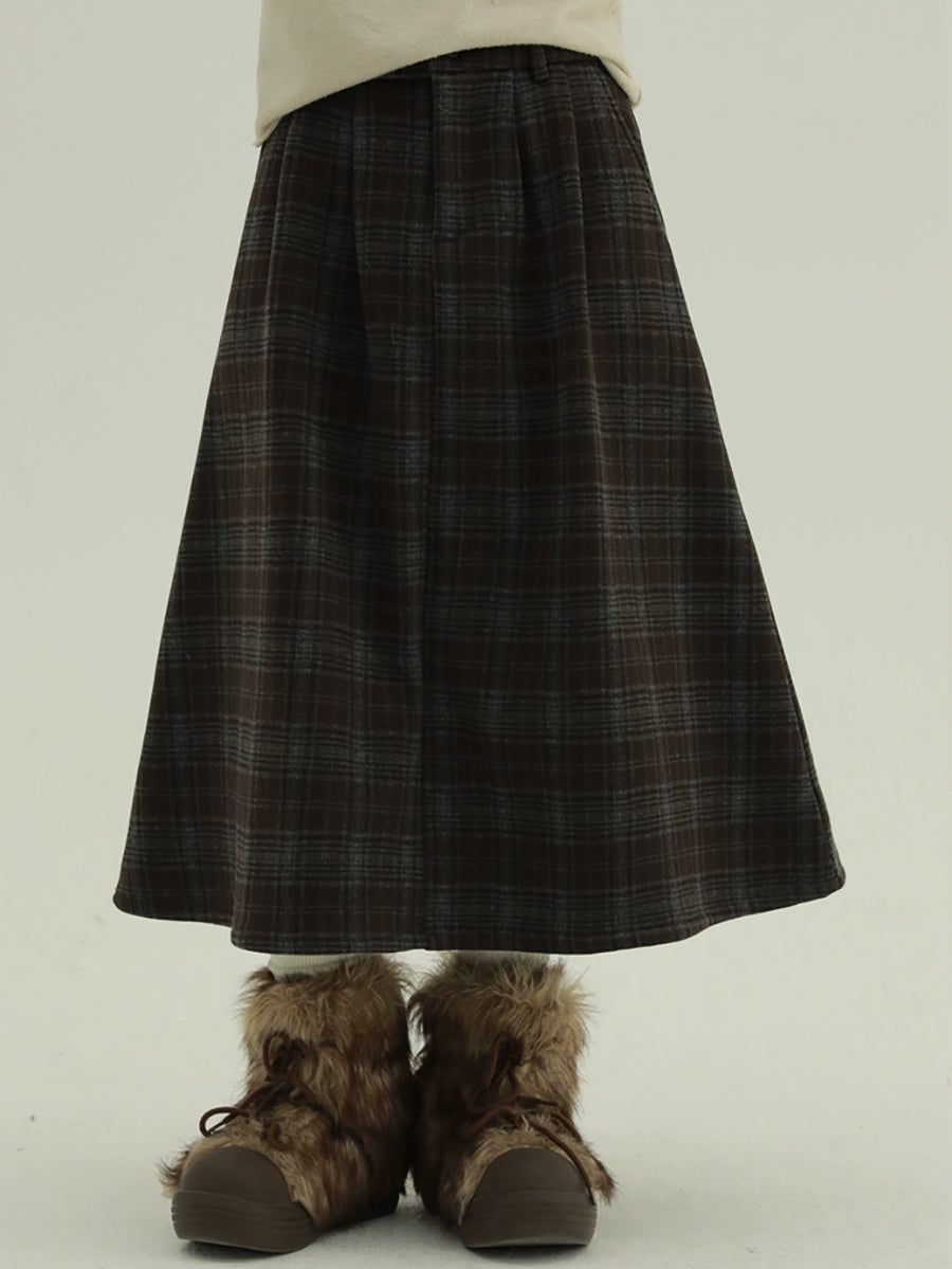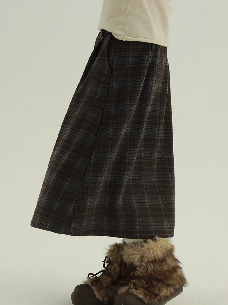 Women Winter Fleece-lined Plaid A-Shape Skirt