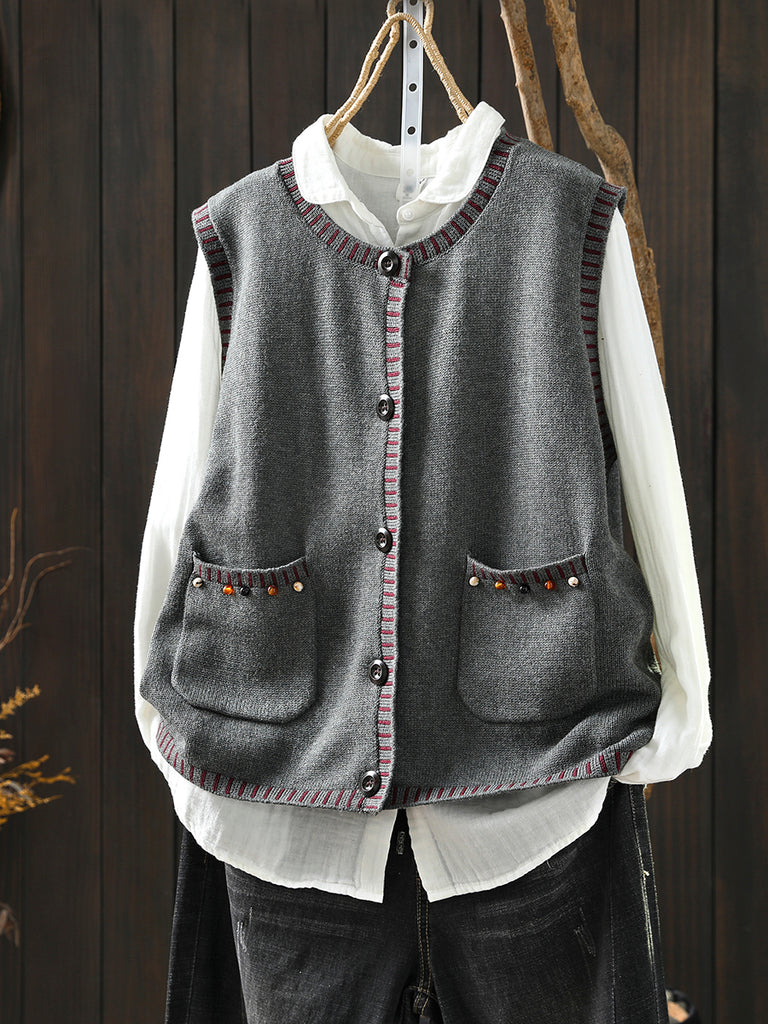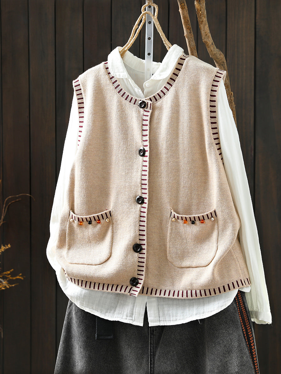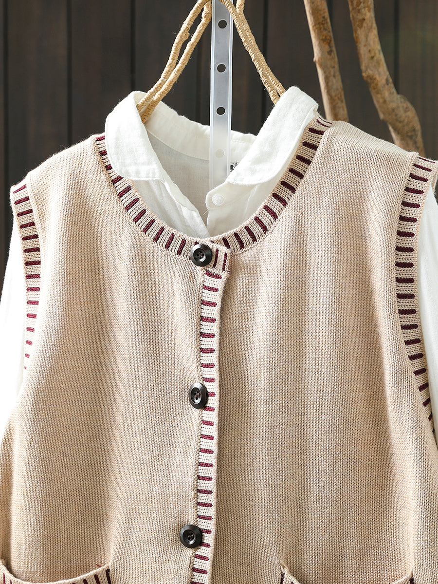 Women Autumn Artsy O-Neck Knitted Vest