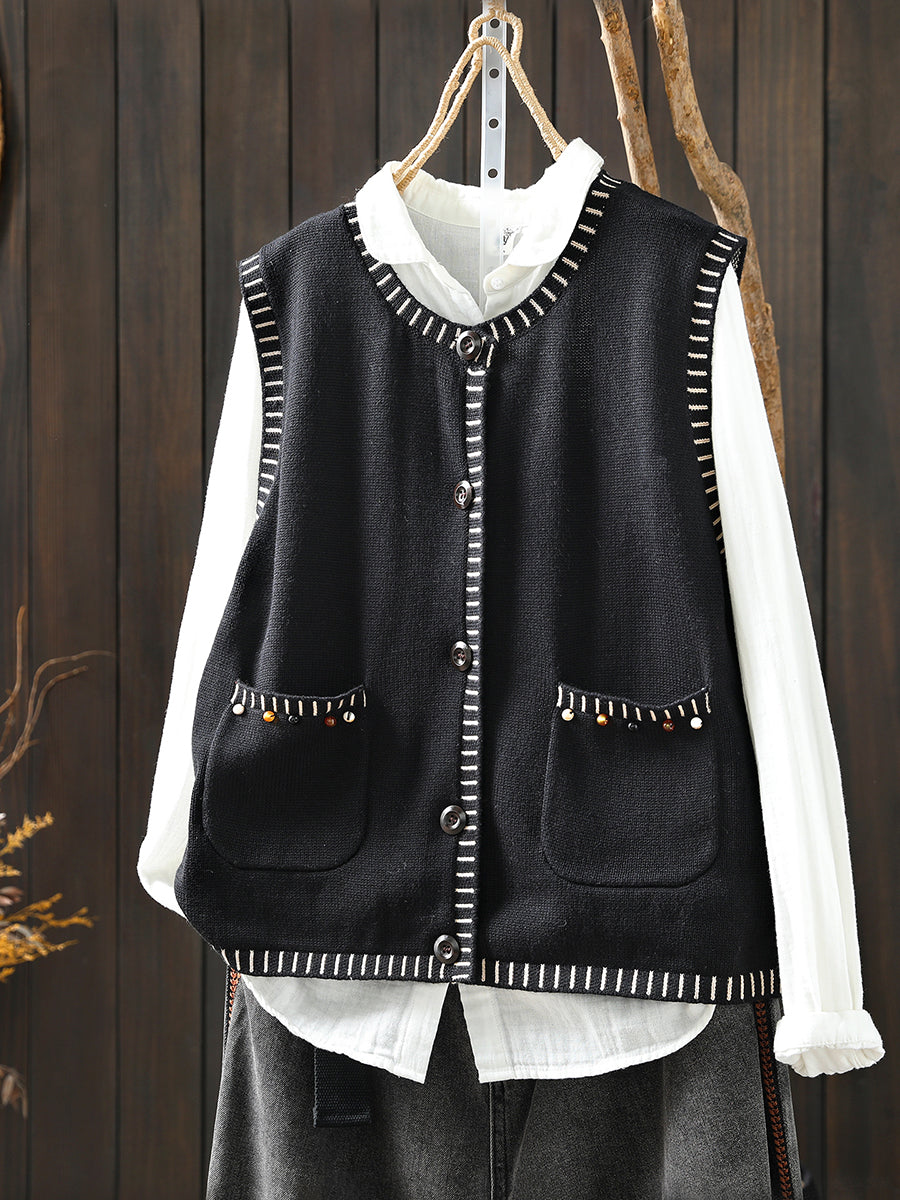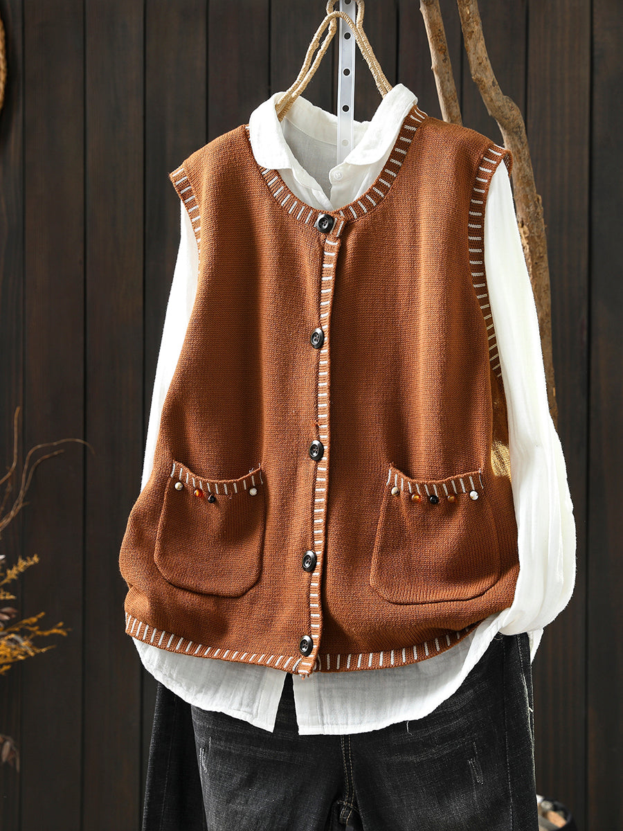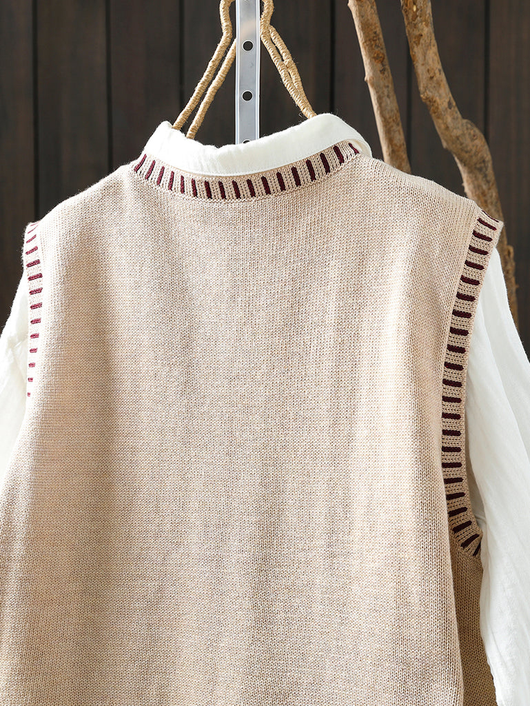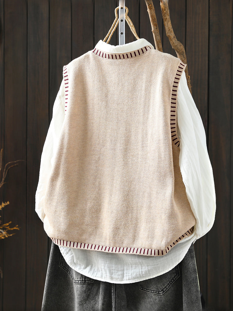 Women Autumn Artsy O-Neck Knitted Vest