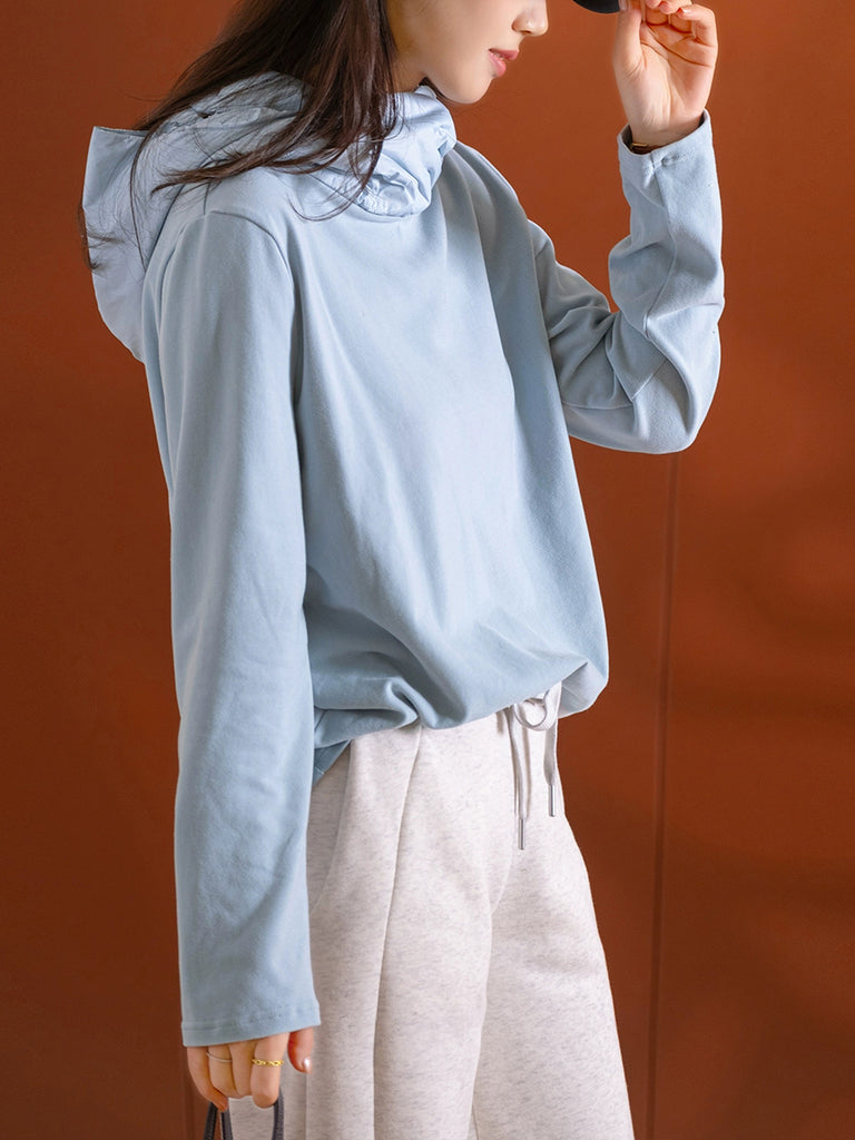 Women Winter Artsy Pure Color Cotton Hoodie