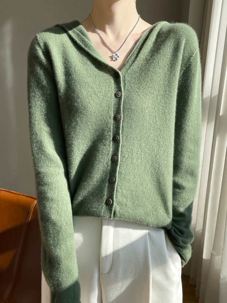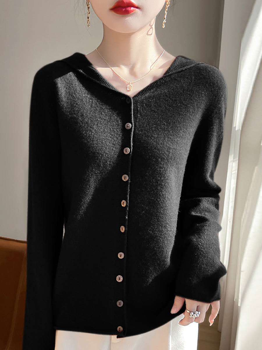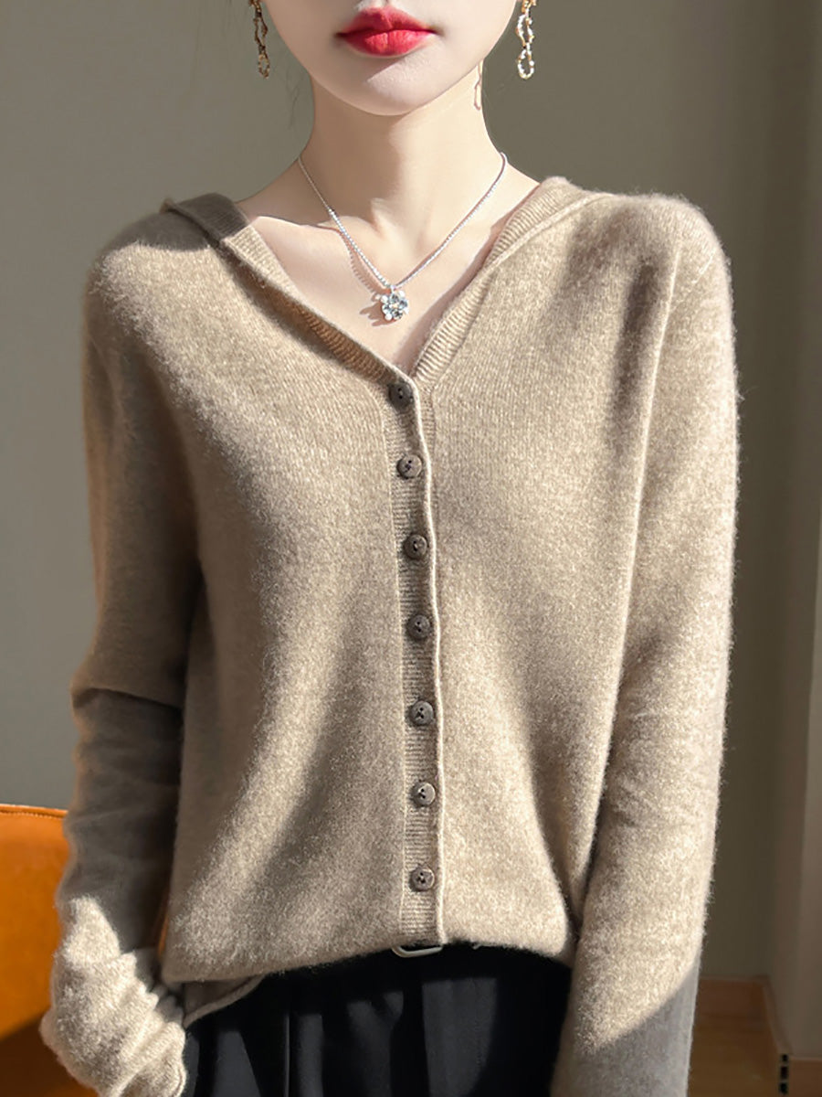 Women Autumn Artsy Pure Color Hooded Sweater