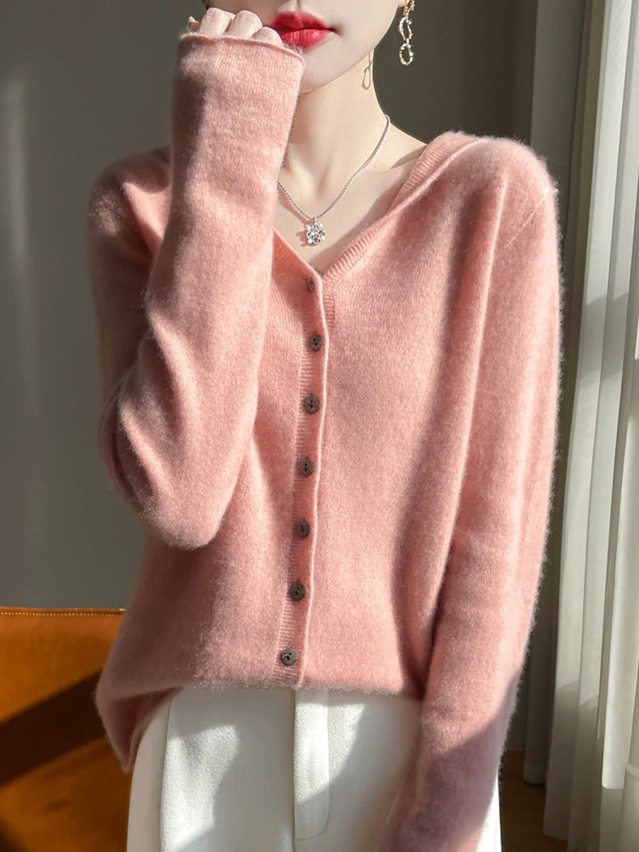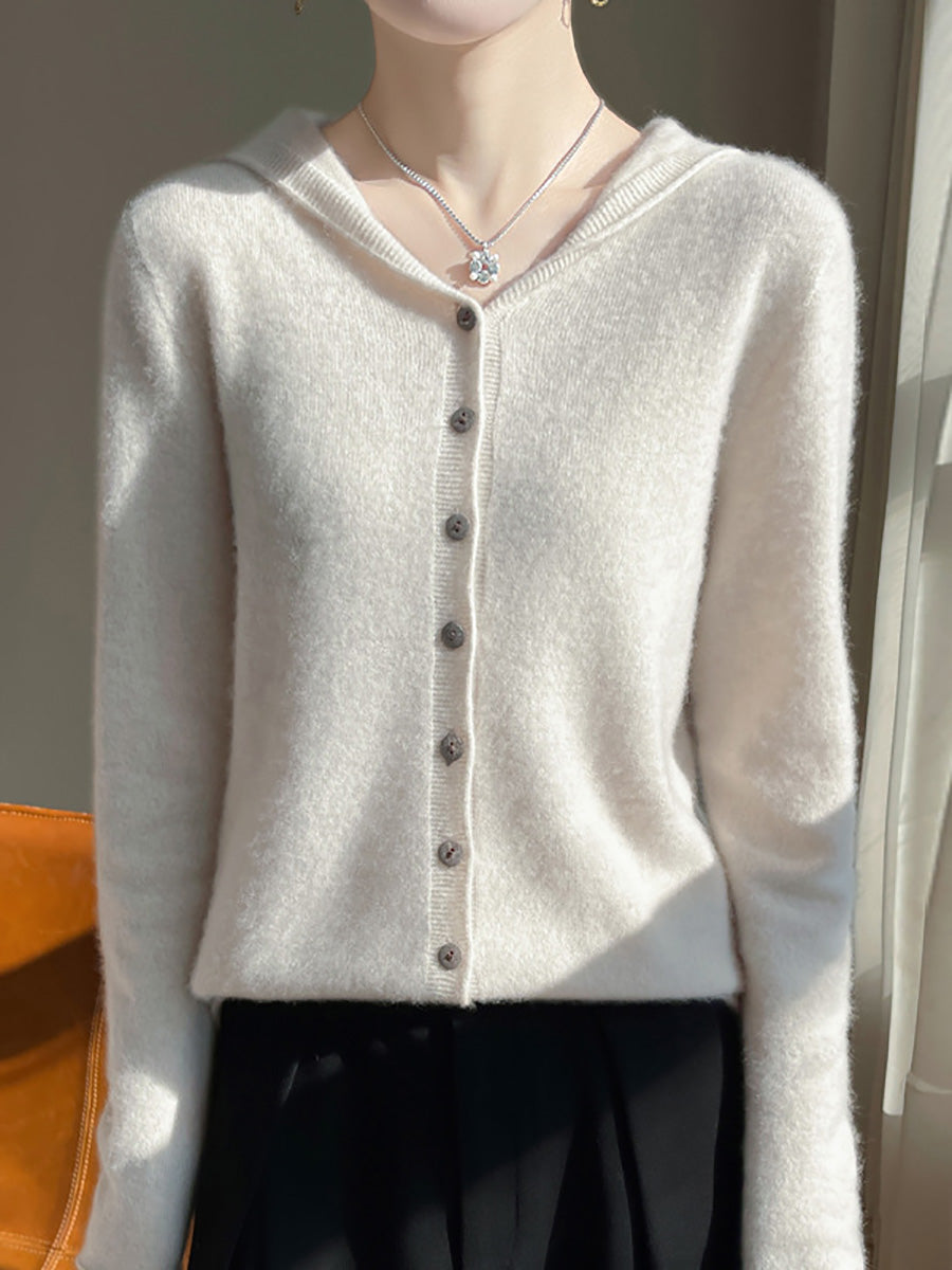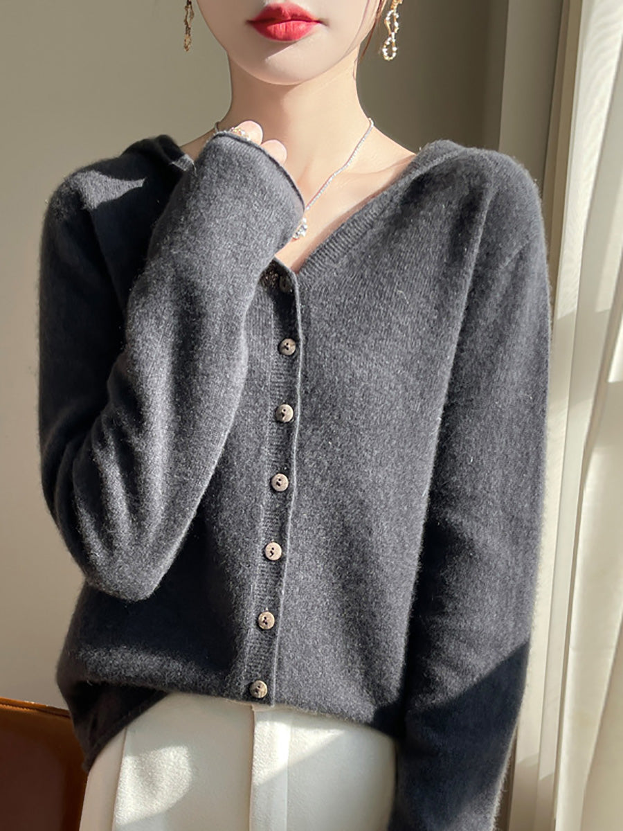 Women Autumn Artsy Pure Color Hooded Sweater