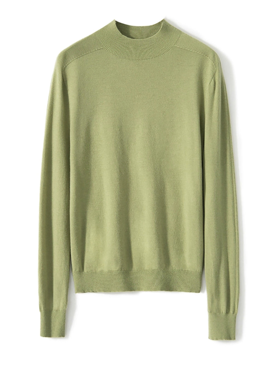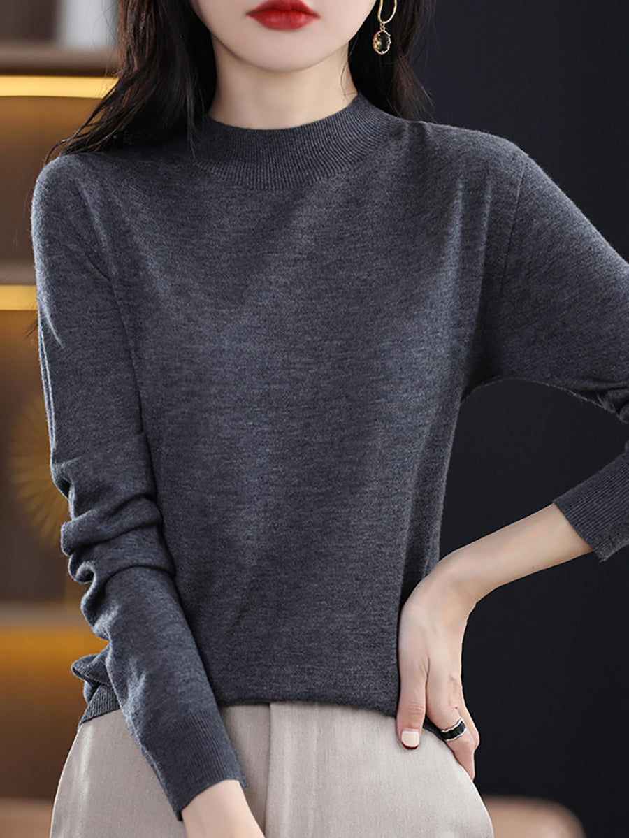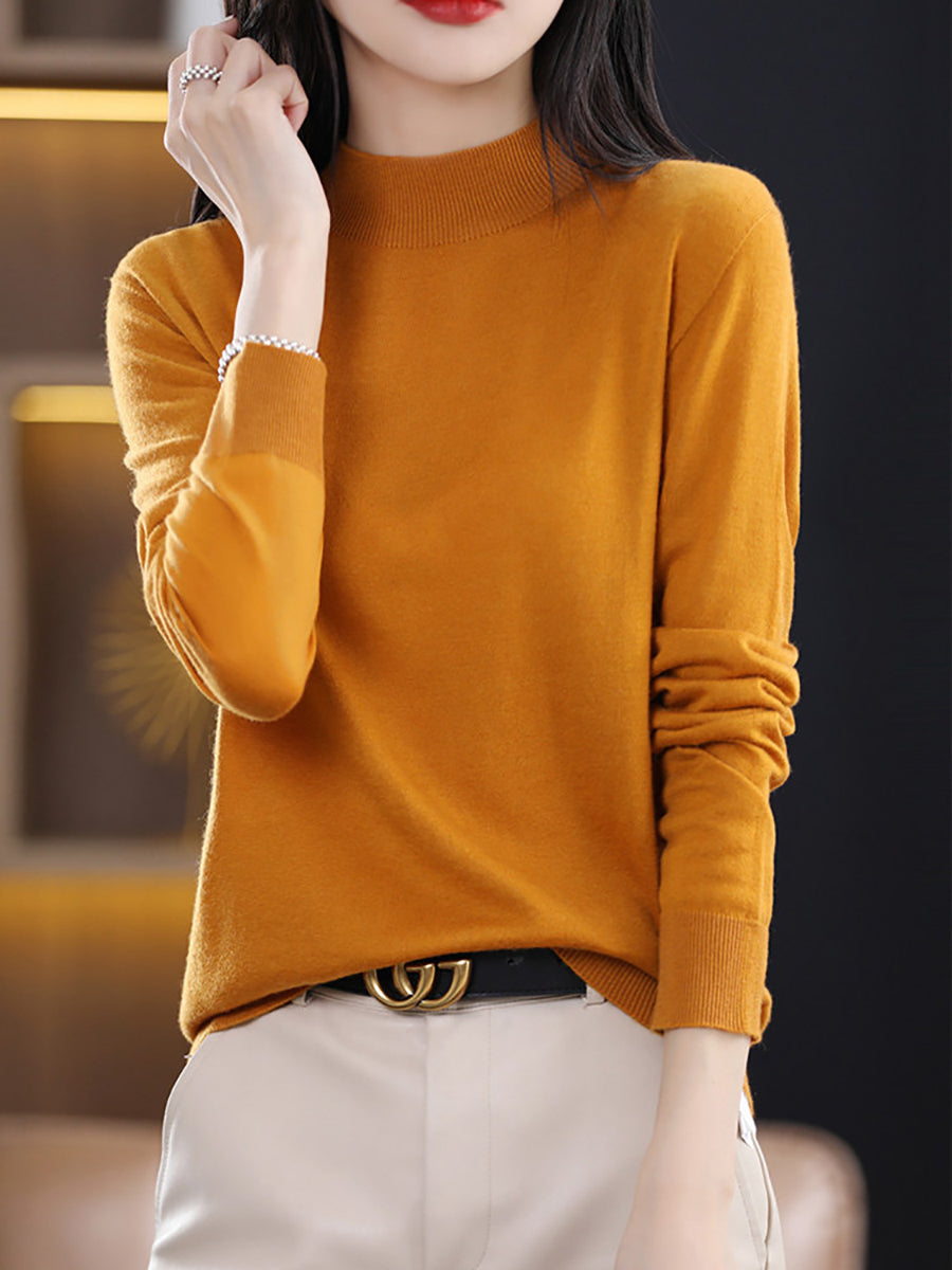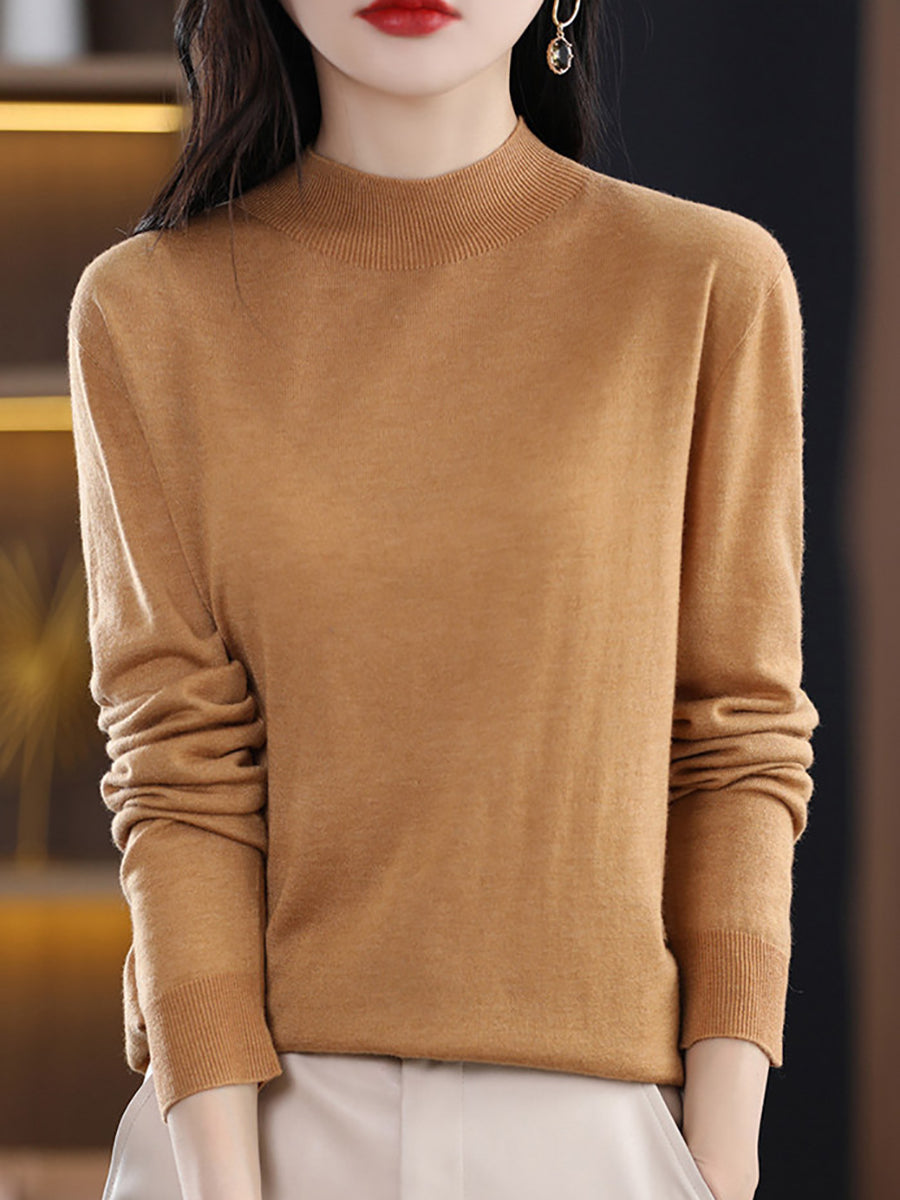 Women Autumn Artsy Pure Color Knitted Half-Turtleneck Sweater