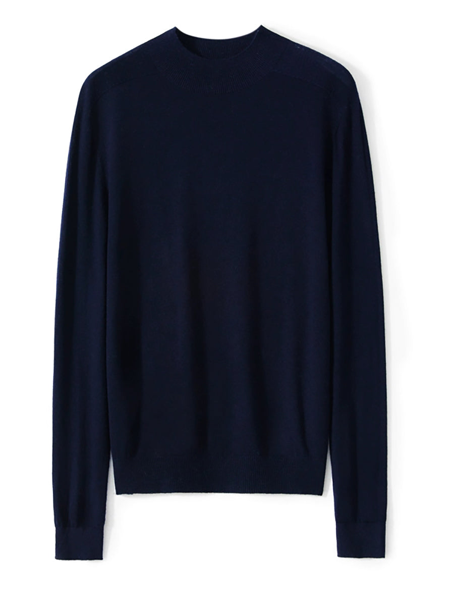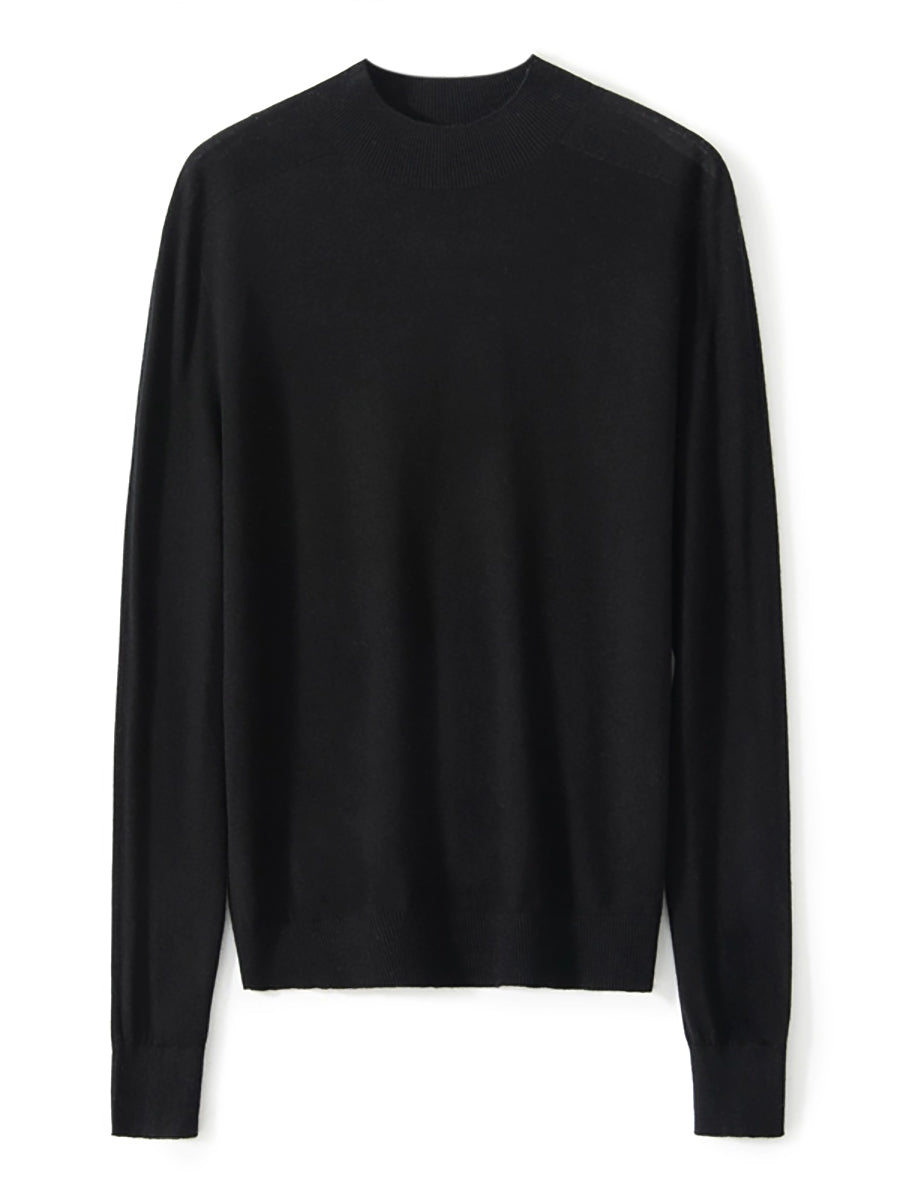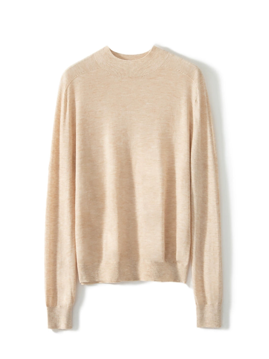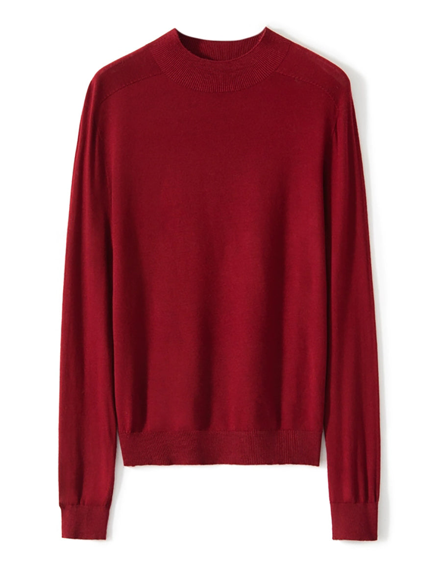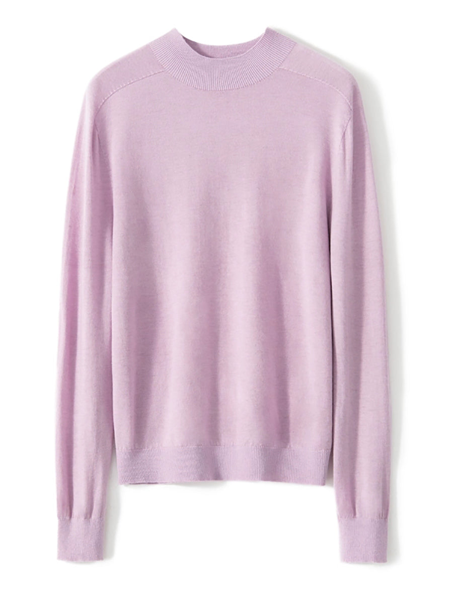 Women Autumn Artsy Pure Color Knitted Half-Turtleneck Sweater