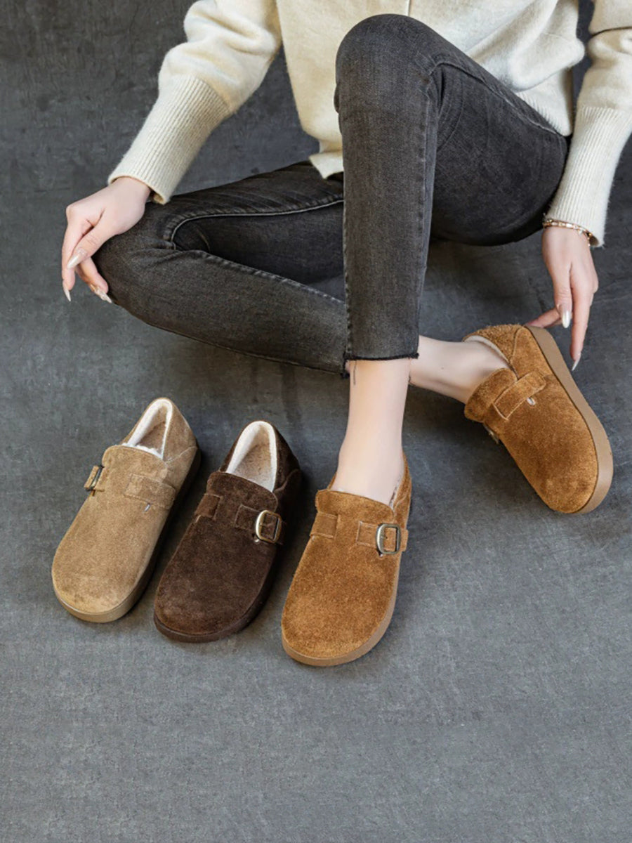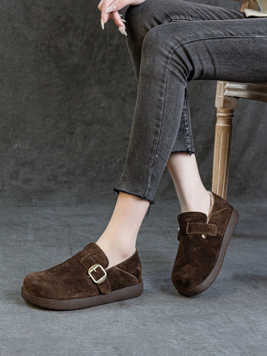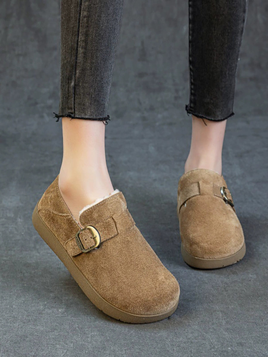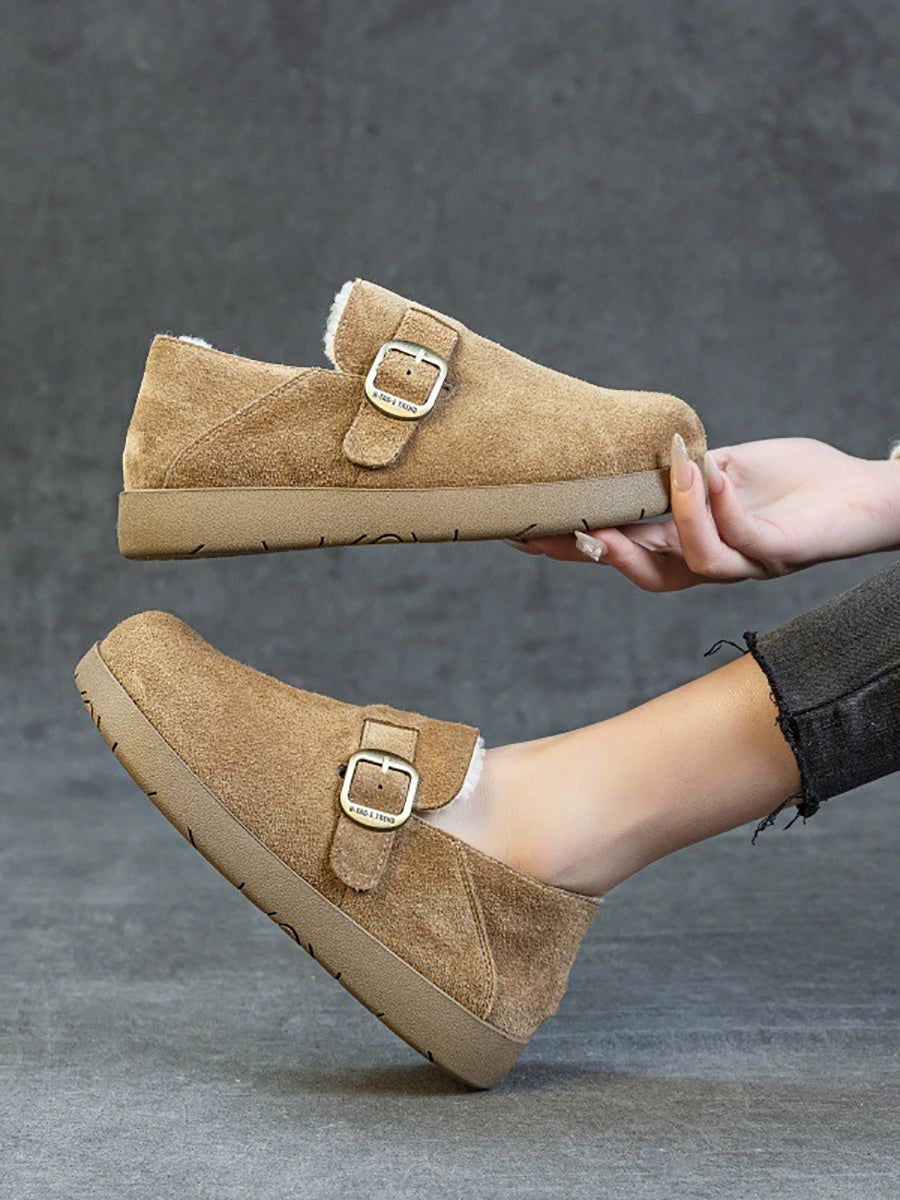 Women Winter Suded Leather Fleece-lined Flat Shoes