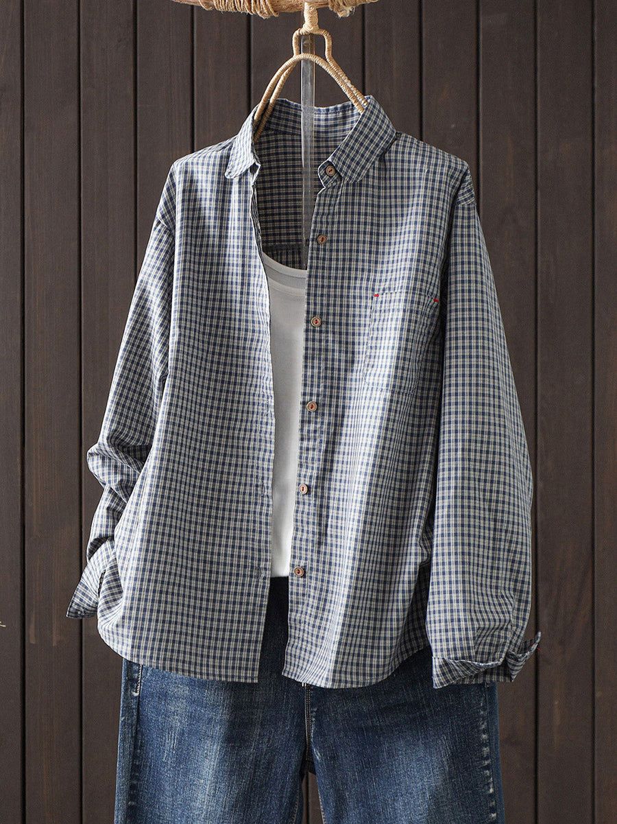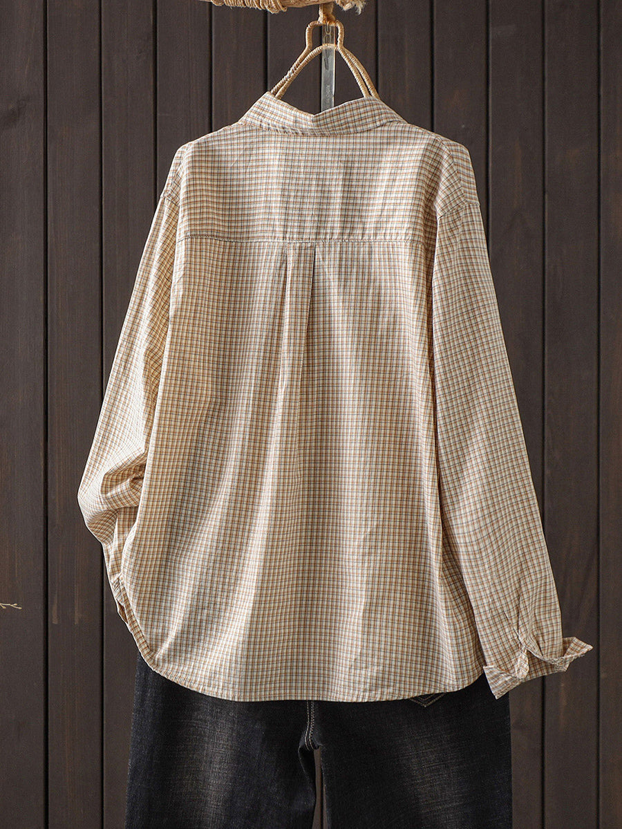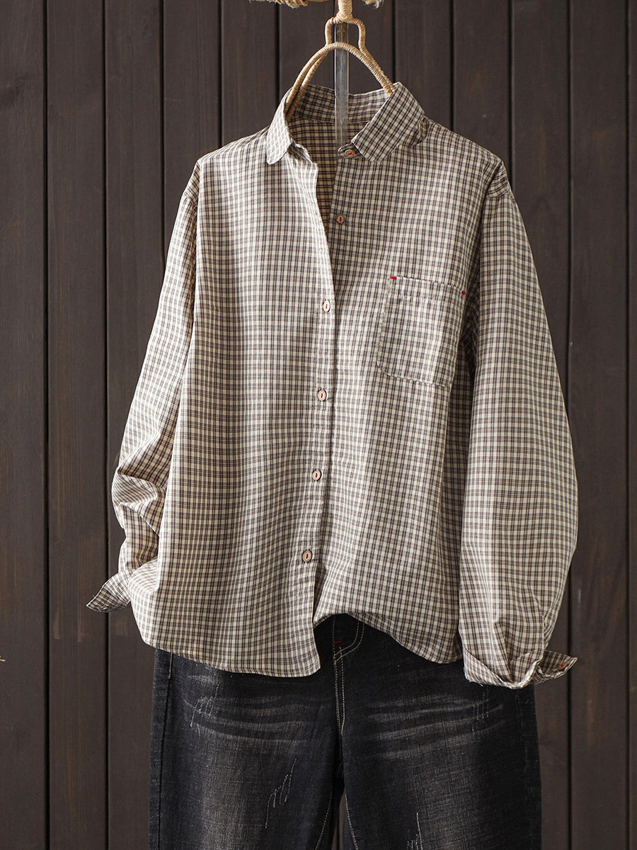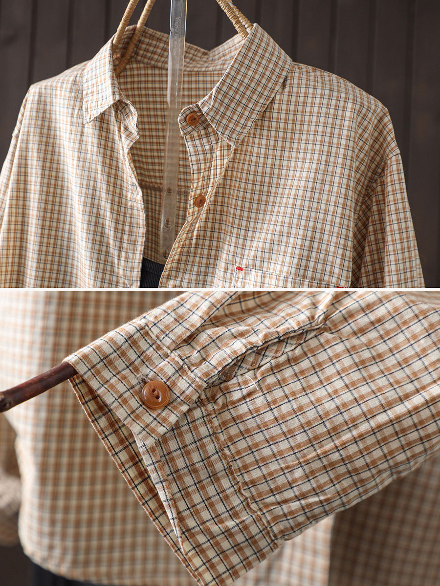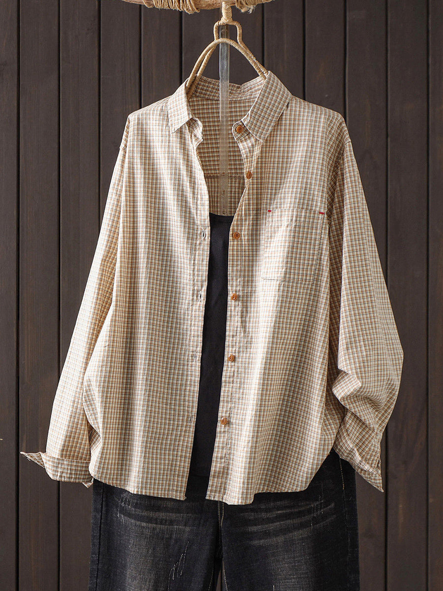 Women Artsy Spring Plaid 100%Cotton Shirt