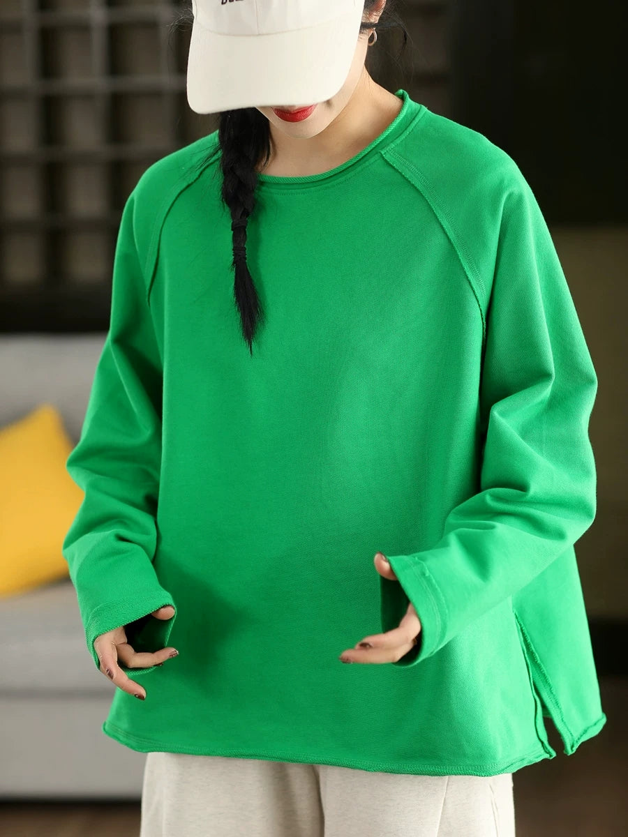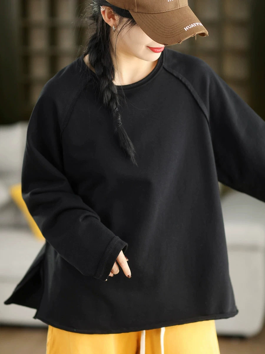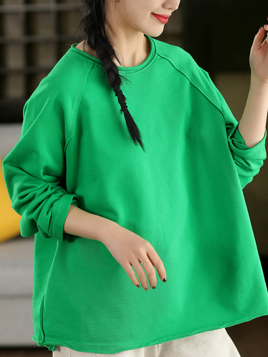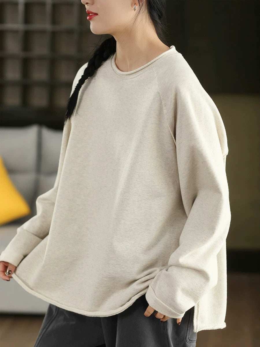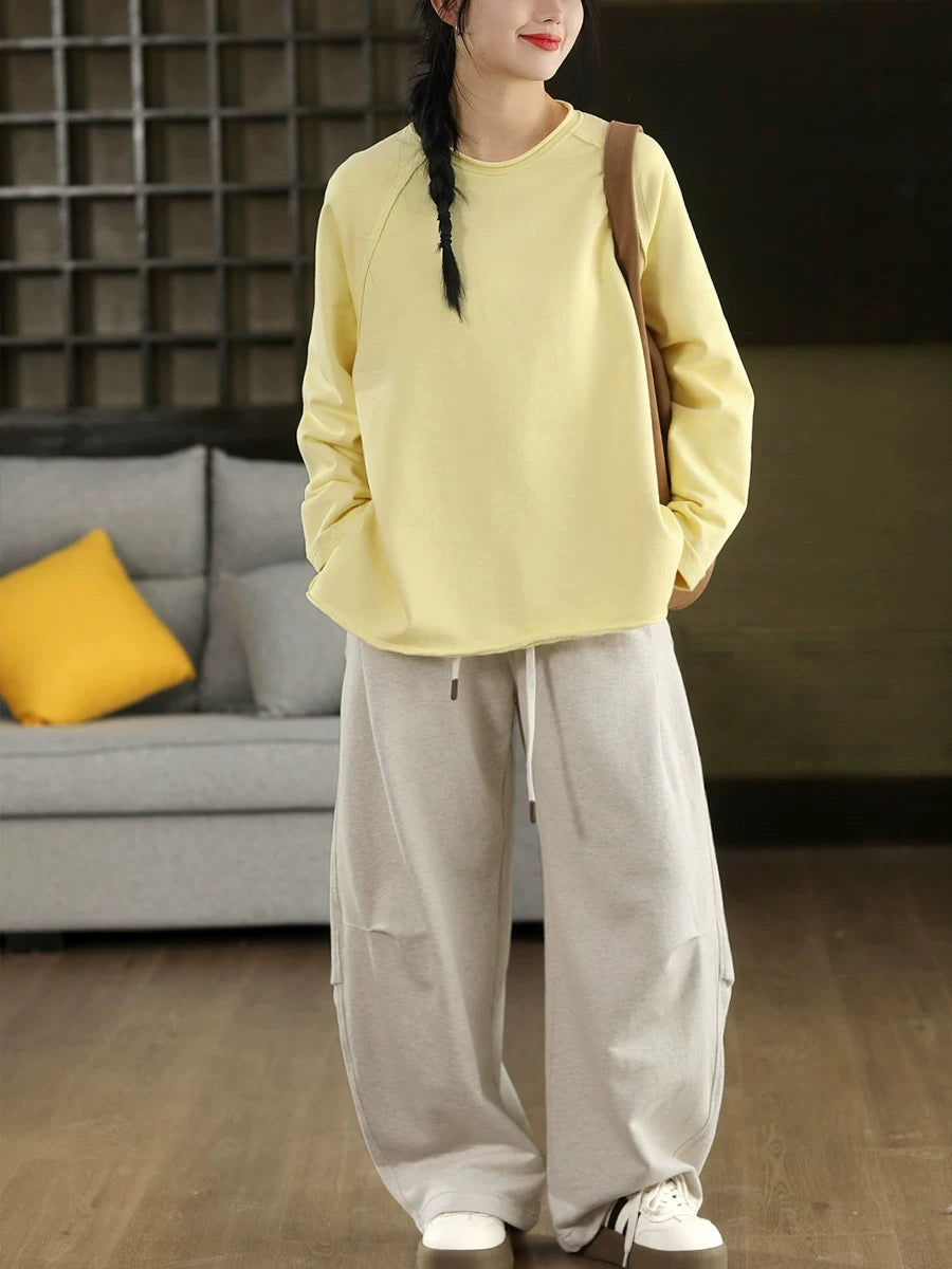 Women Casual Spring Pure Color 100%Cotton O-Neck Blouse