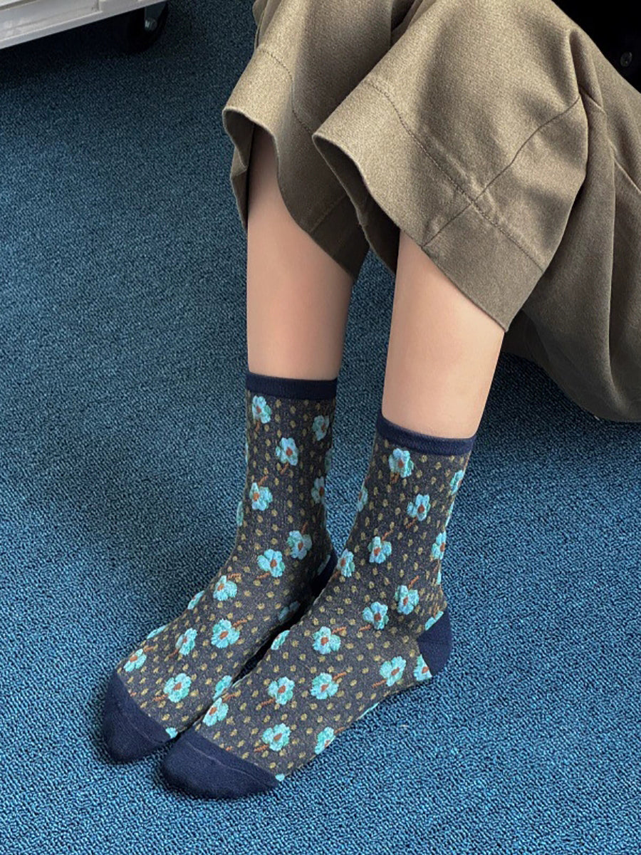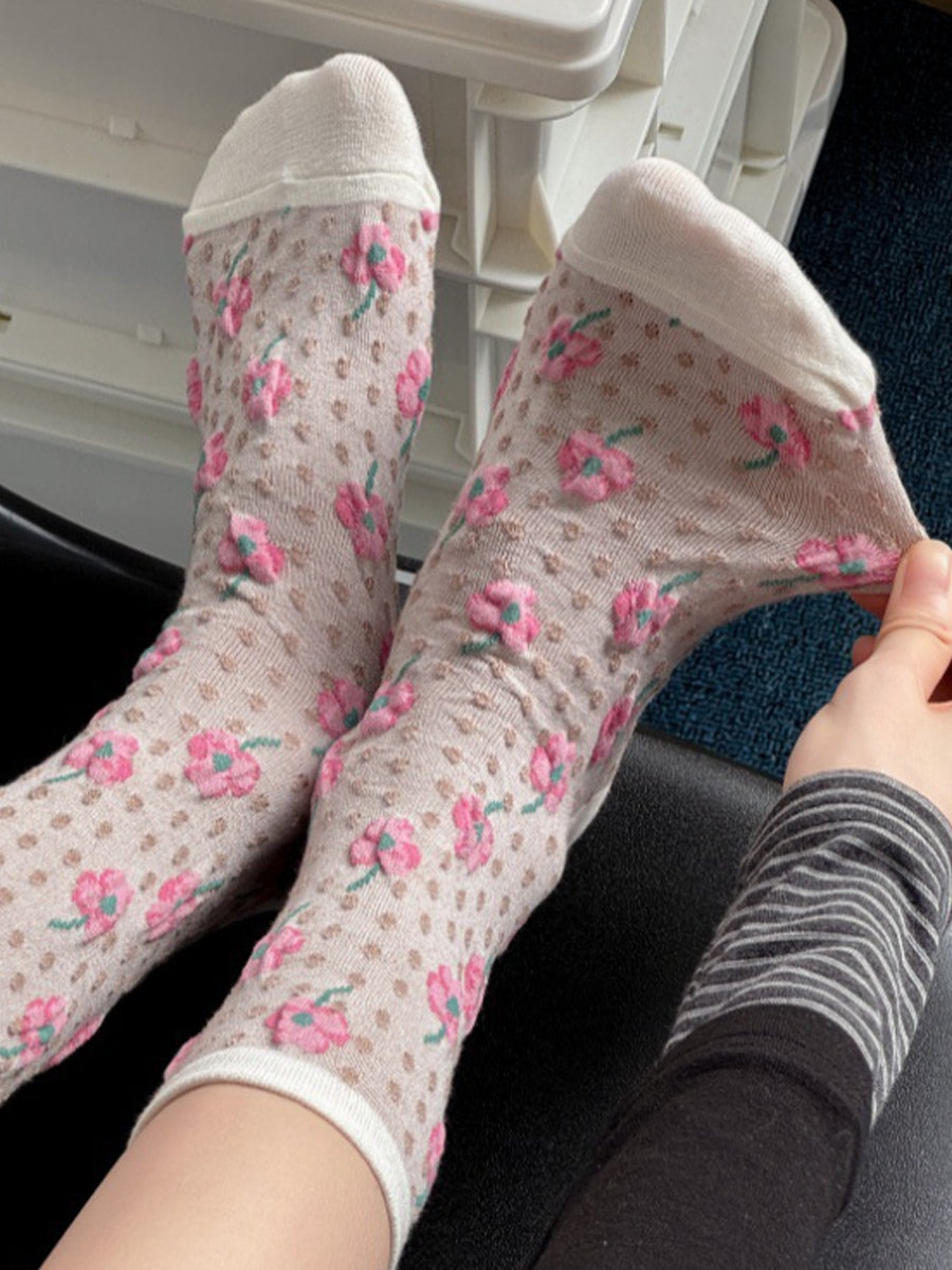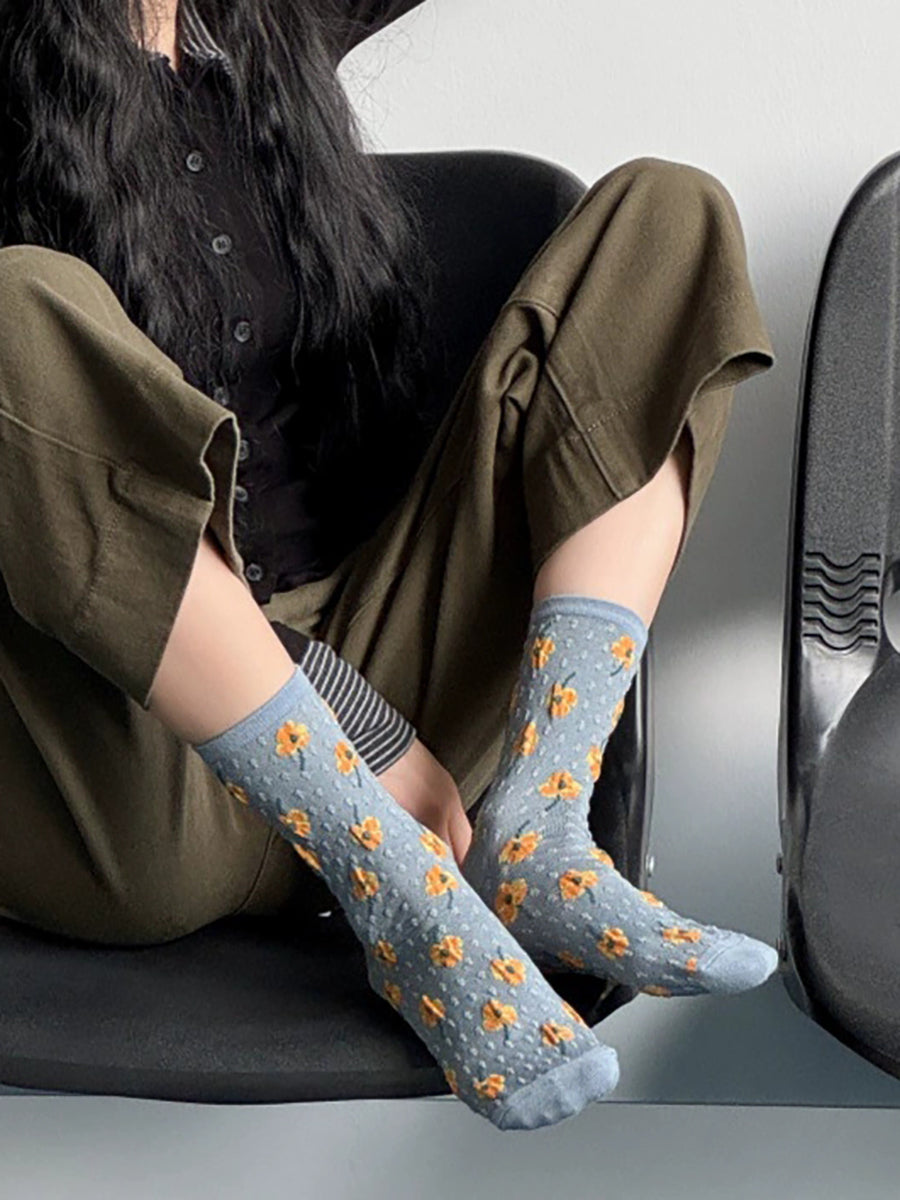 5 Pairs Women Artsy Flower Embossing Cotton Socks