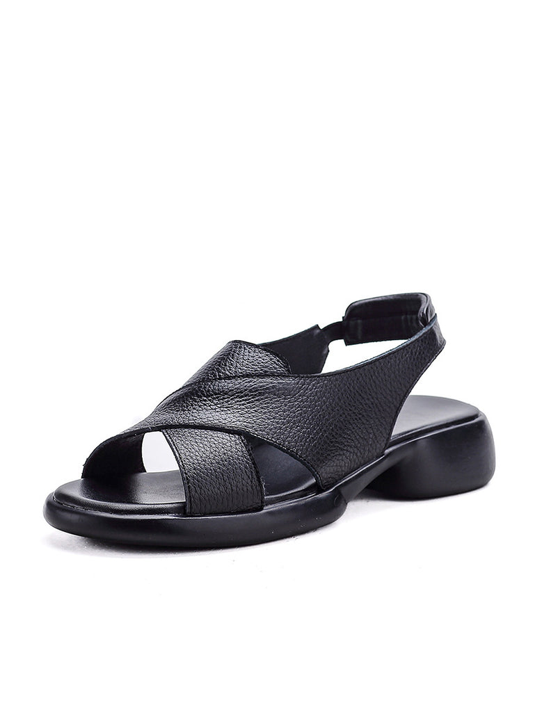 Women Casual Genuine Leather Cross Low Heel Sandals