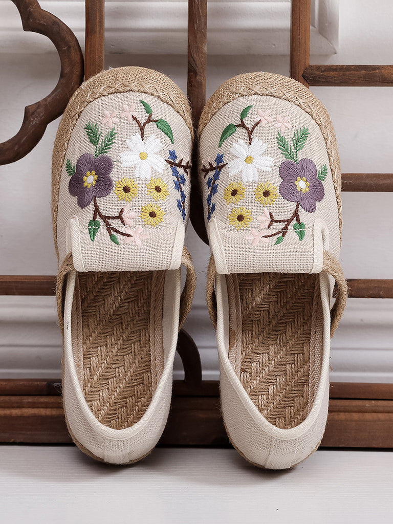 Women Summer Artsy Embroidery Flat Cotton Shoes