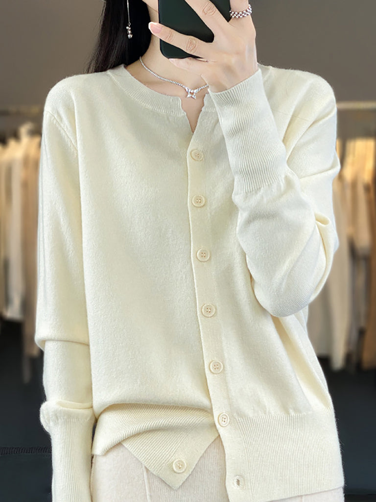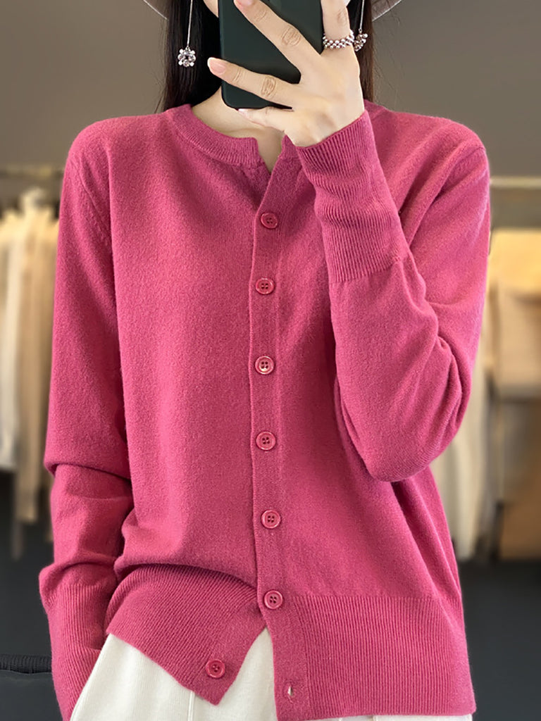 Women Winter Casual Pure Color Knitted O-Neck Sweater