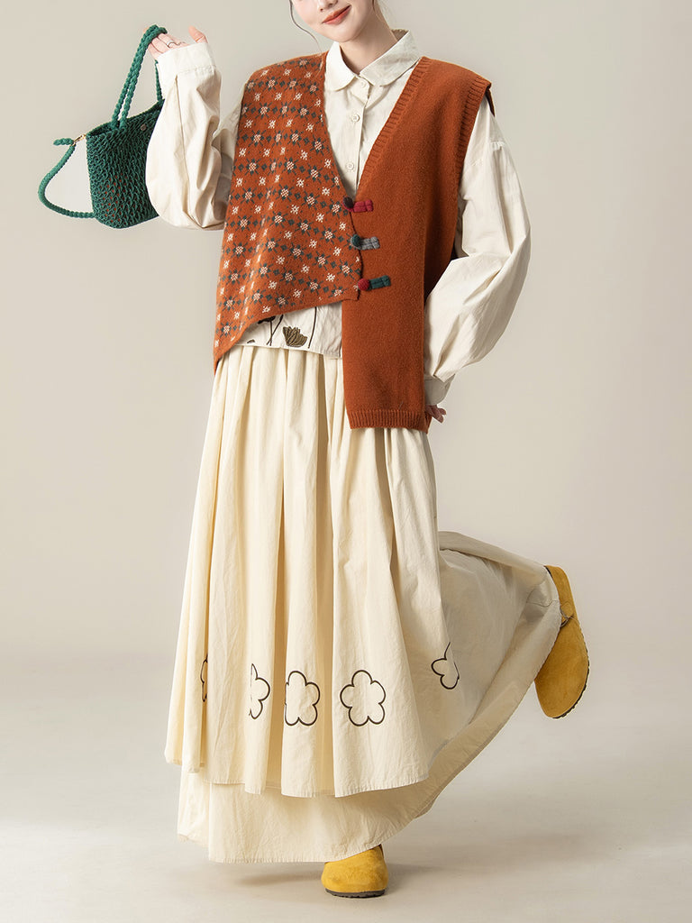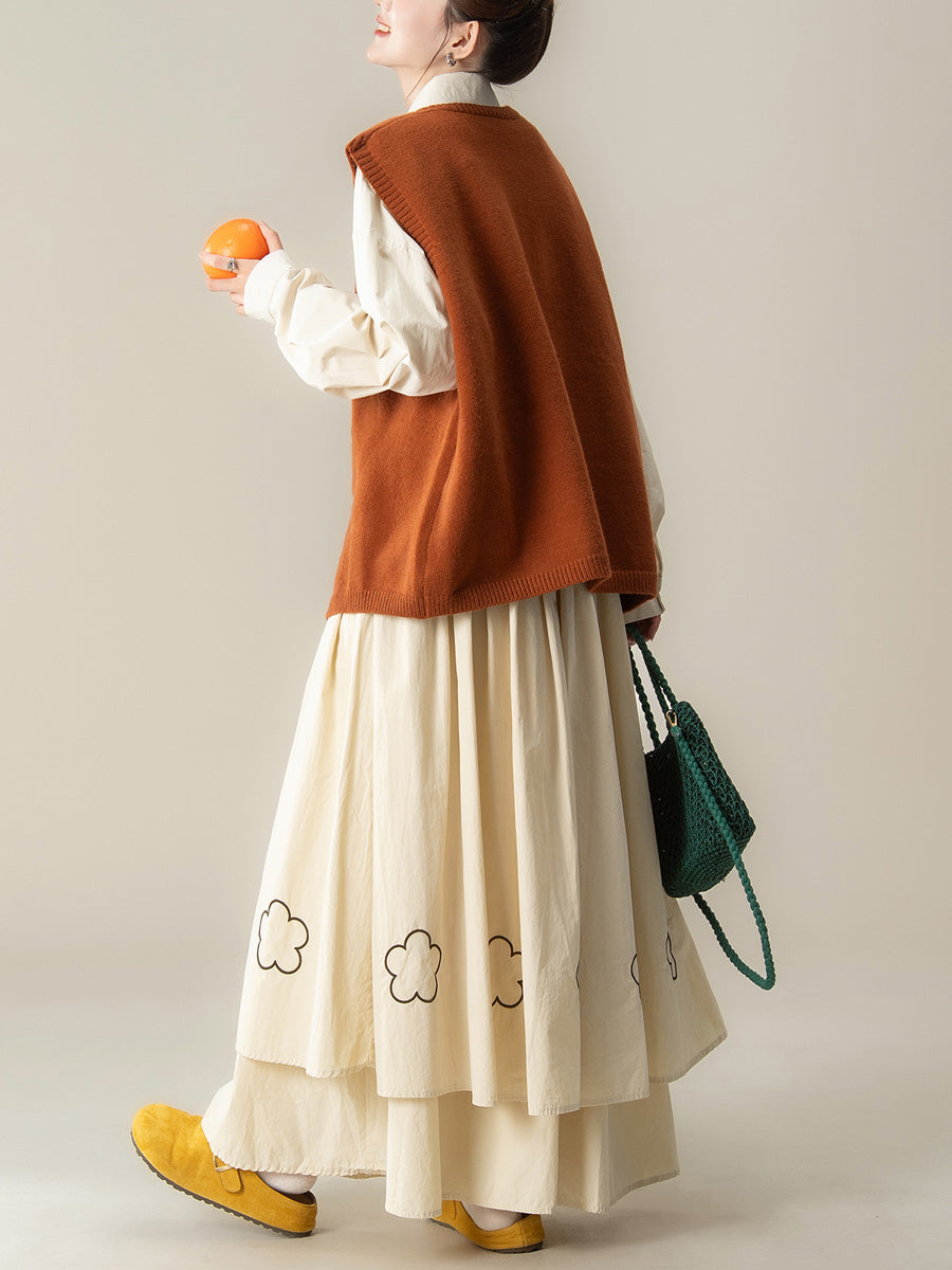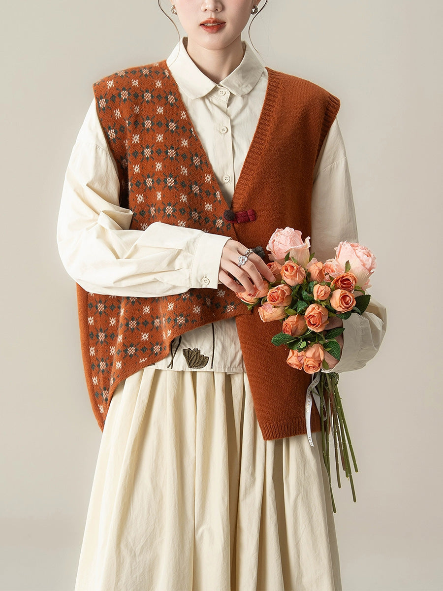This versatile knitted vest combines timeless retro aesthetics with contemporary design sensibilities. Featuring a distinctive flower collar and clean solid colorway, it delivers sophisticated layering for transitional seasons. The irregular spliced construction at the V-neckline adds visual interest and modern edge, while the structured knit fabric ensures lasting wear. Ideal for autumn and winter wardrobes, this piece transitions ef