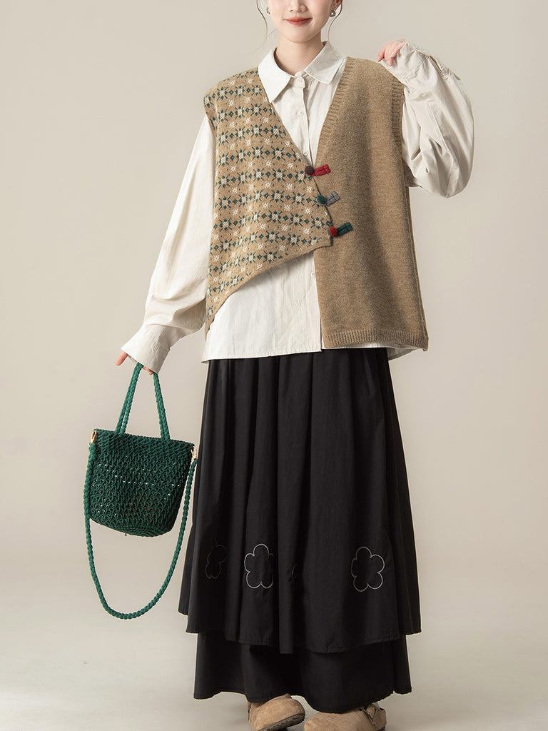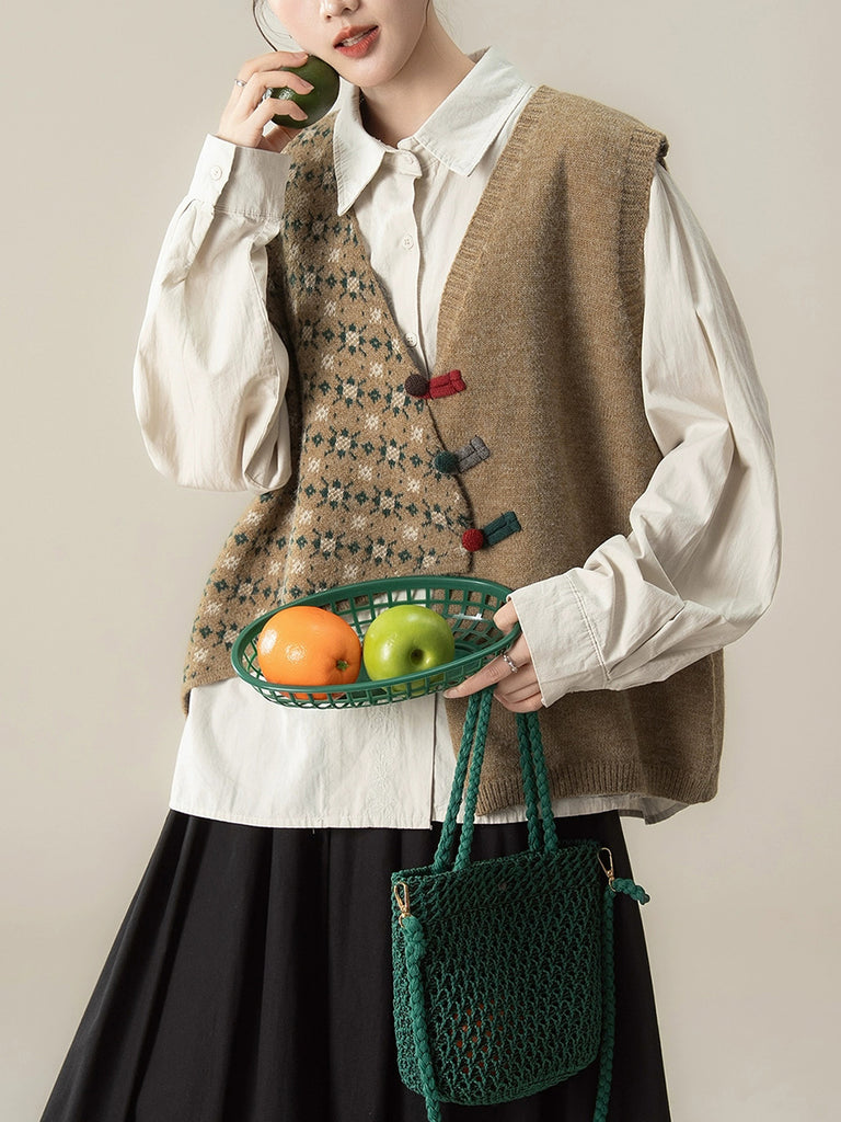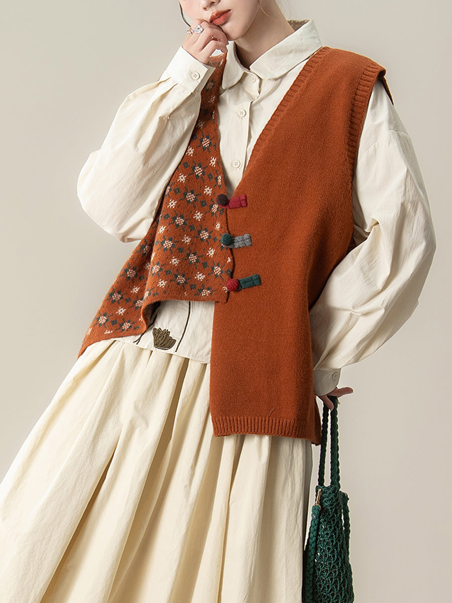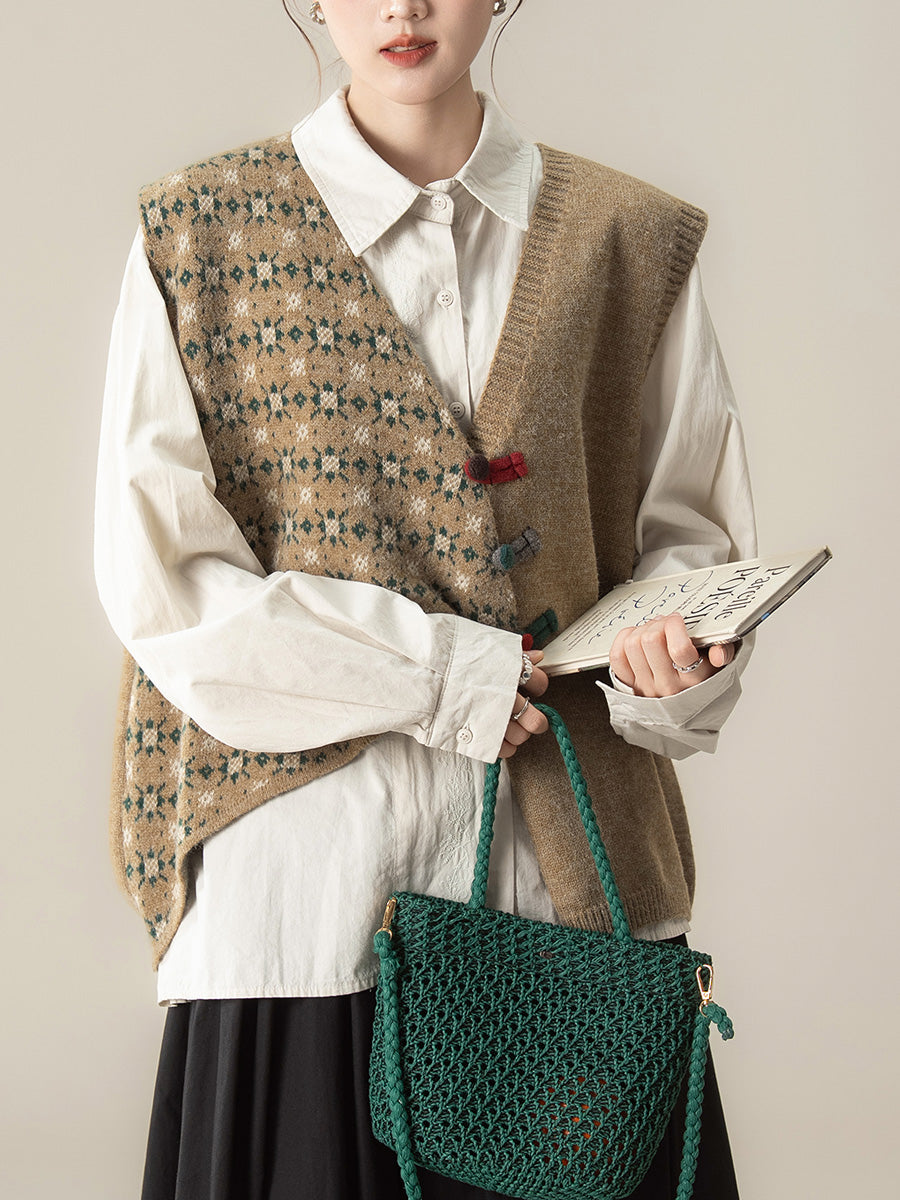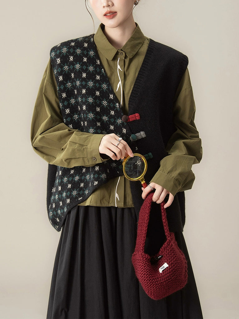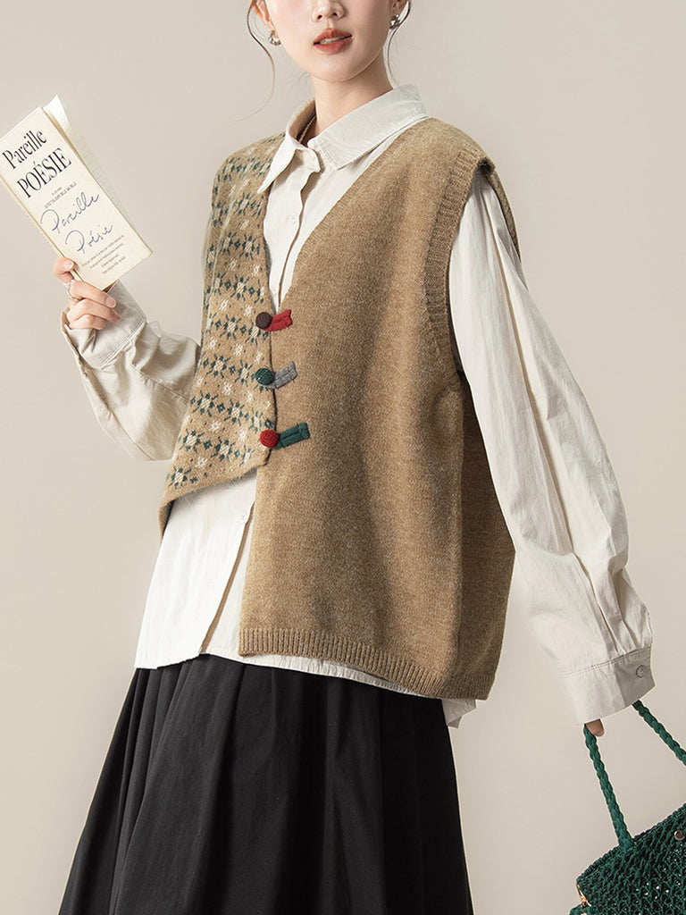 Women Autumn Irregular Spliced V-Neck Knitted Vest