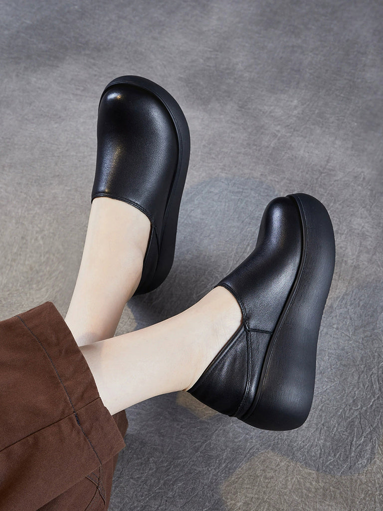 Women Genuine Leather Pure Color Platfrom Shoes