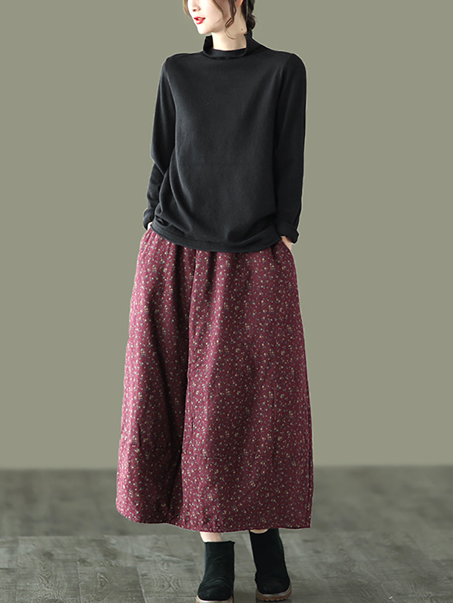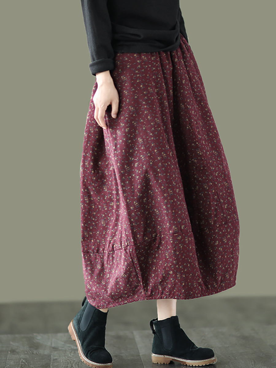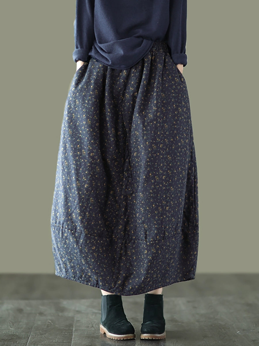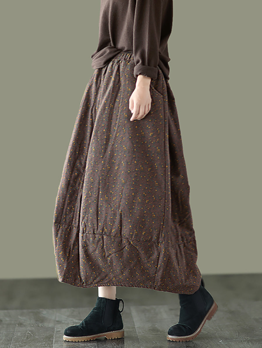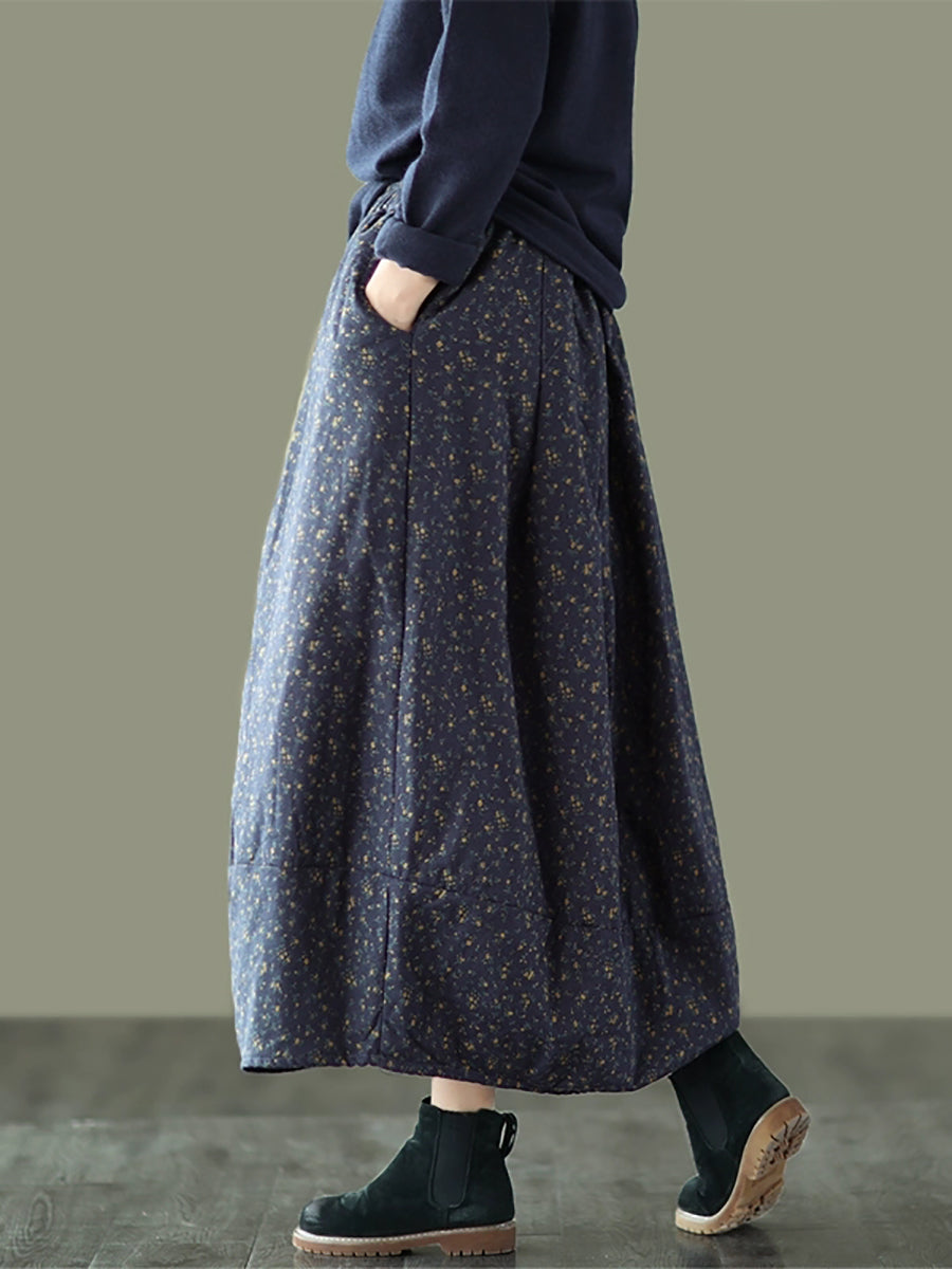 Women Winter Artsy Floral Padded Bud Skirt