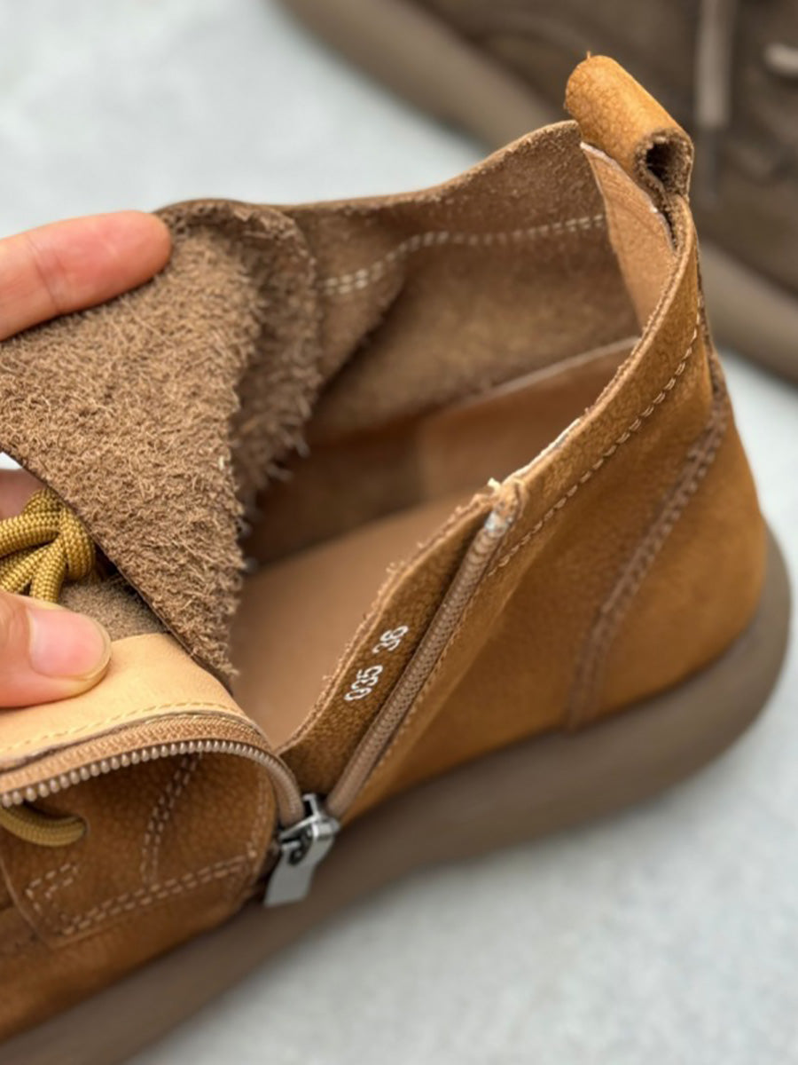 Women Winter Genuine Leather Strap Zipper Flat Boots