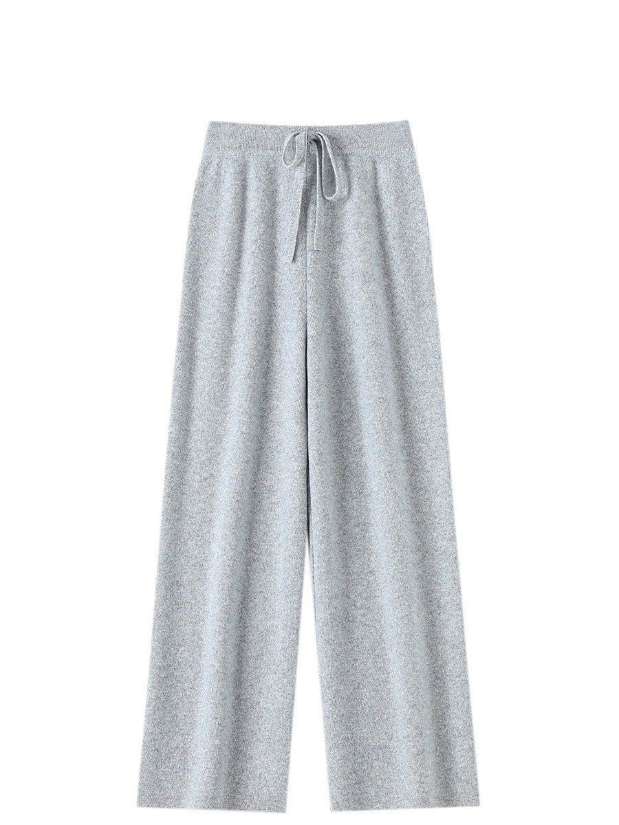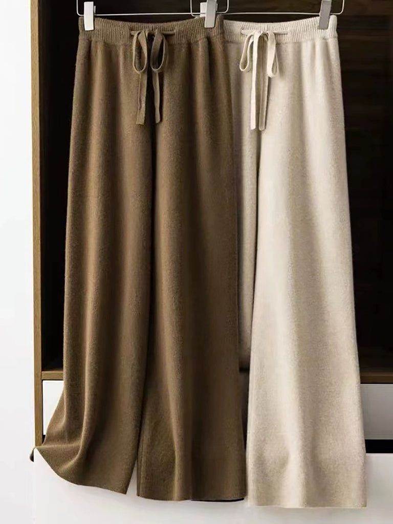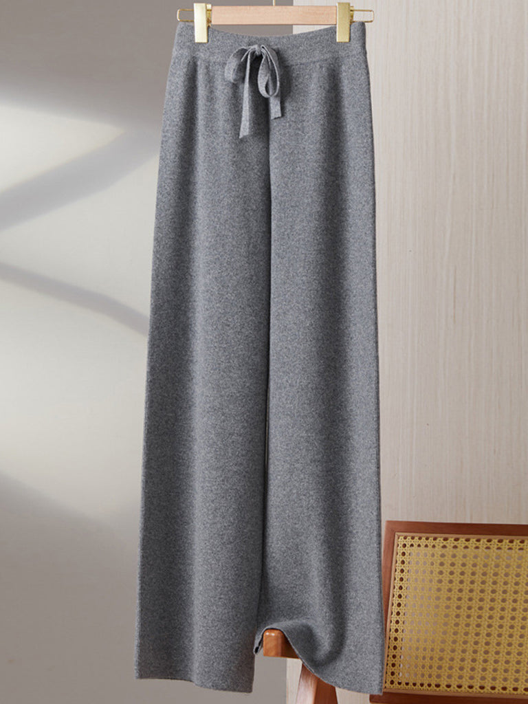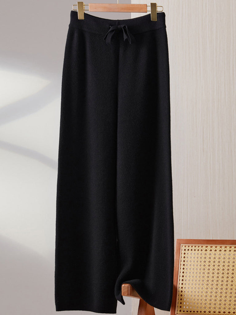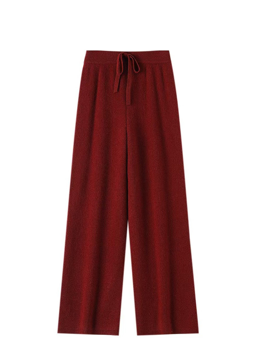 Women Winter Pure Color Knitted Wool Wide-leg Pants