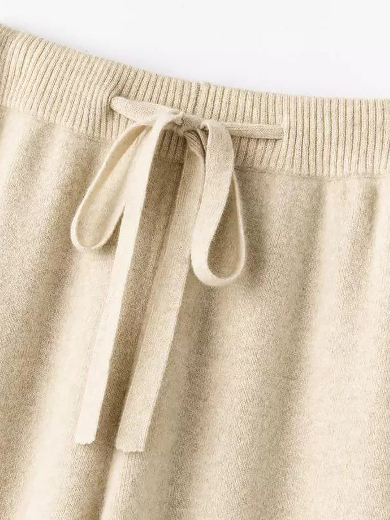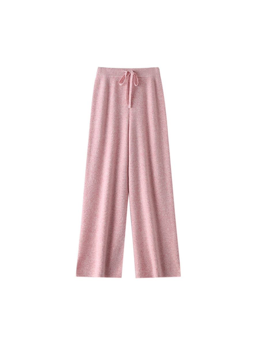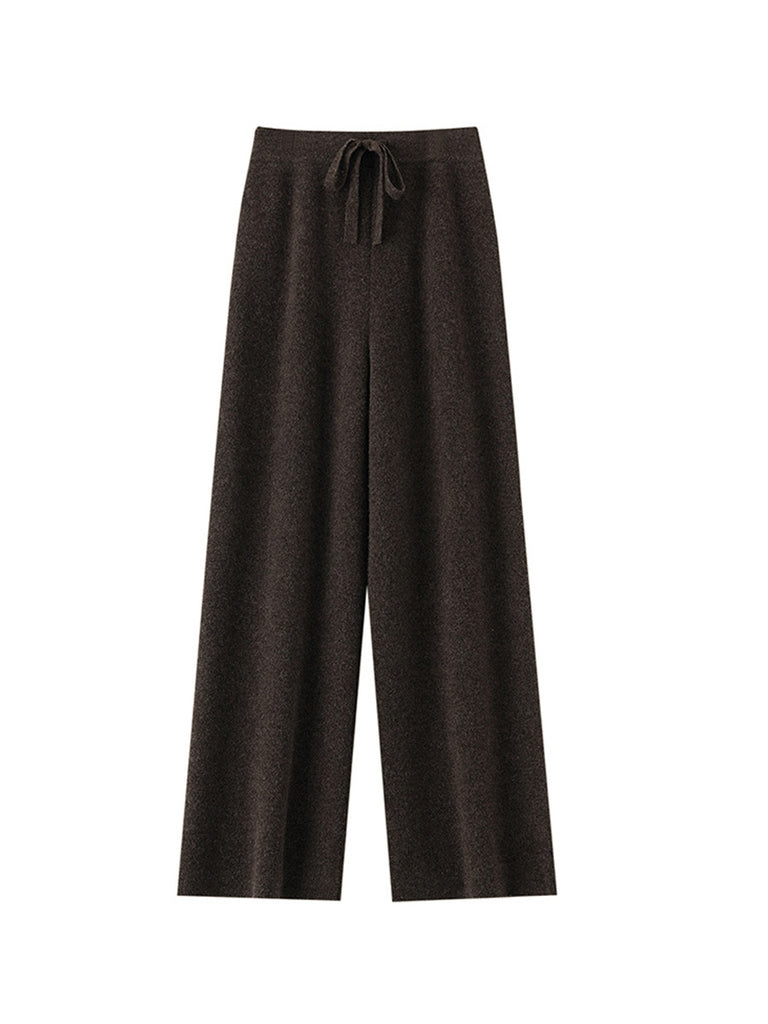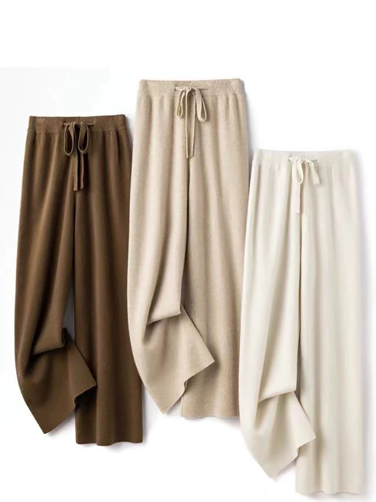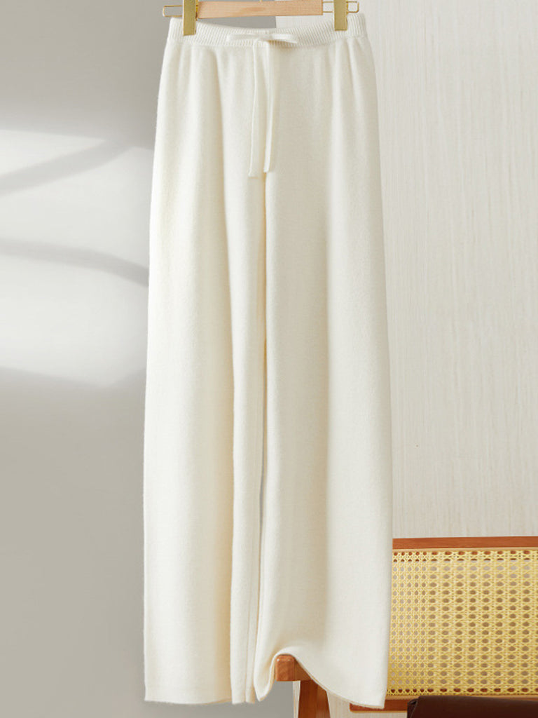 Women Winter Pure Color Knitted Wool Wide-leg Pants