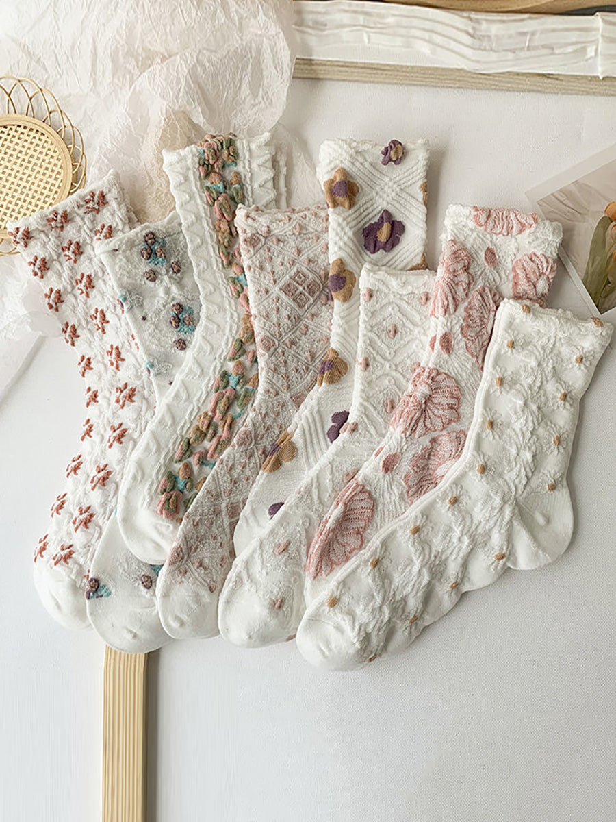 8 Pairs Women Artsy Flower Jacquard Socks