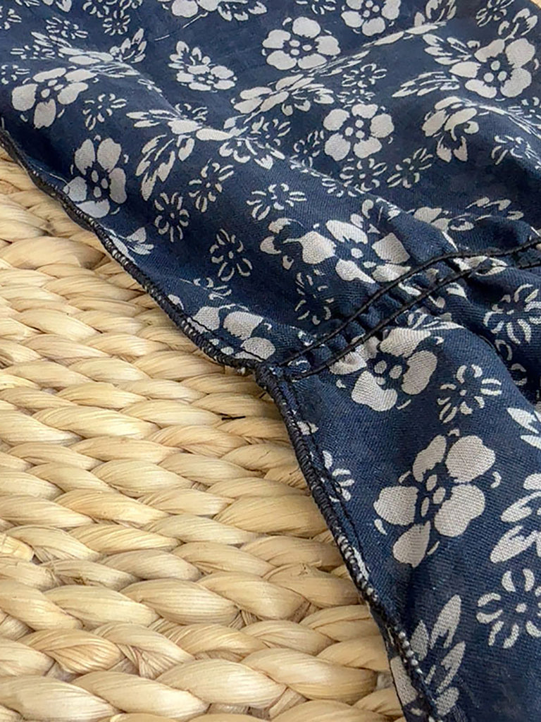 Women Summer Artsy Flower Ramie Sunpoof Sleeves