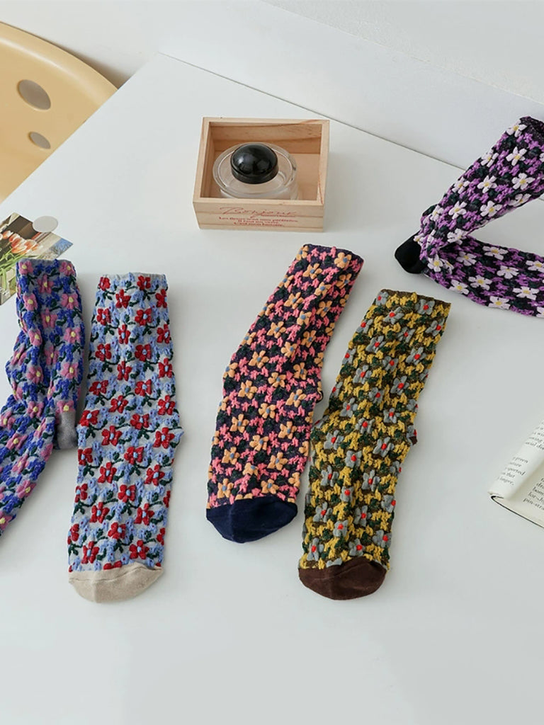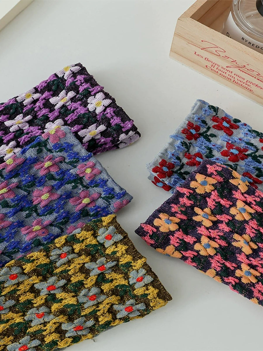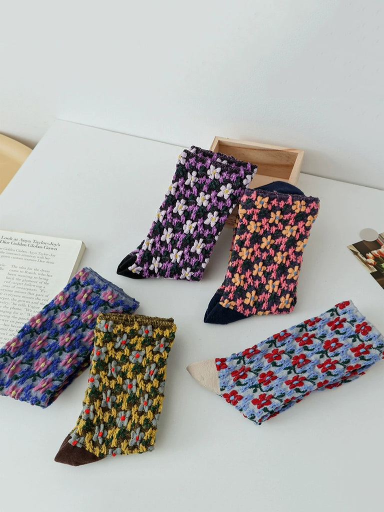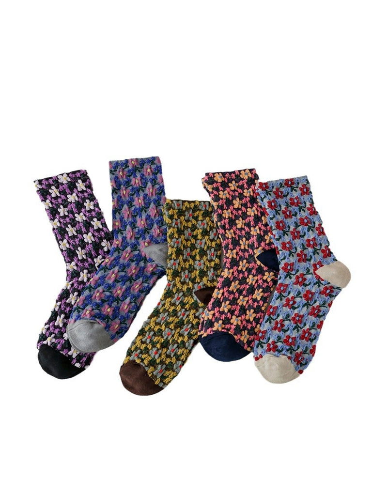 5 Pairs Women Artsy Flower Jacquard Socks
