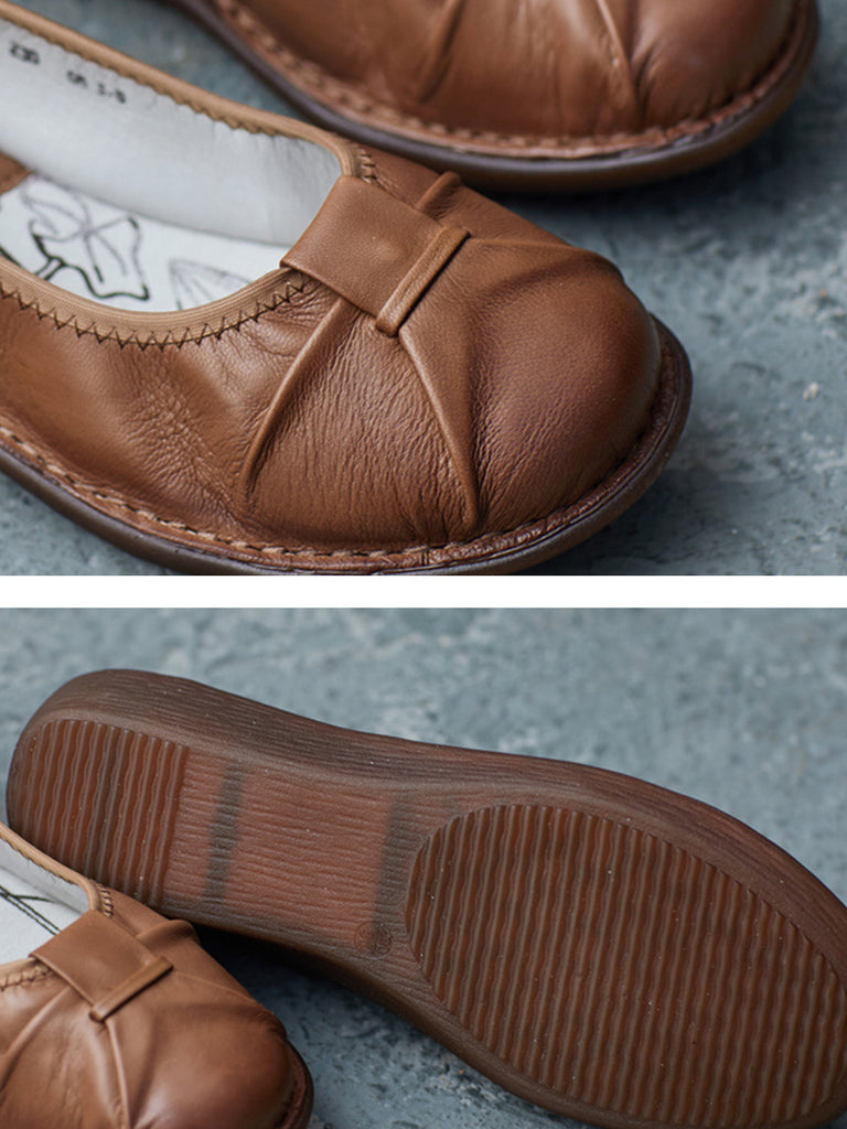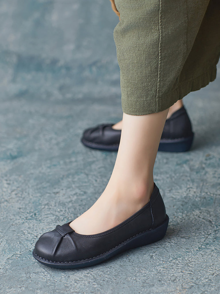 Women Ethnic Pure Color Genuine Leather Low Heel Shoes
