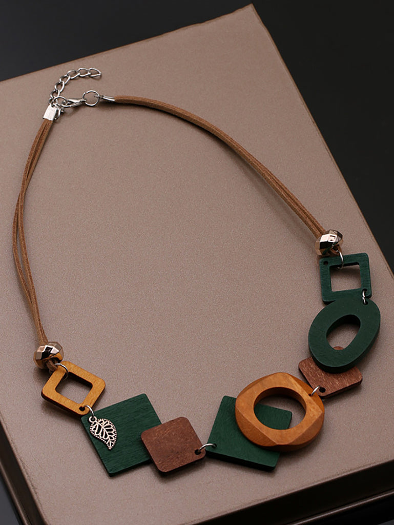 Women Geometric Wooden Weave Necklace