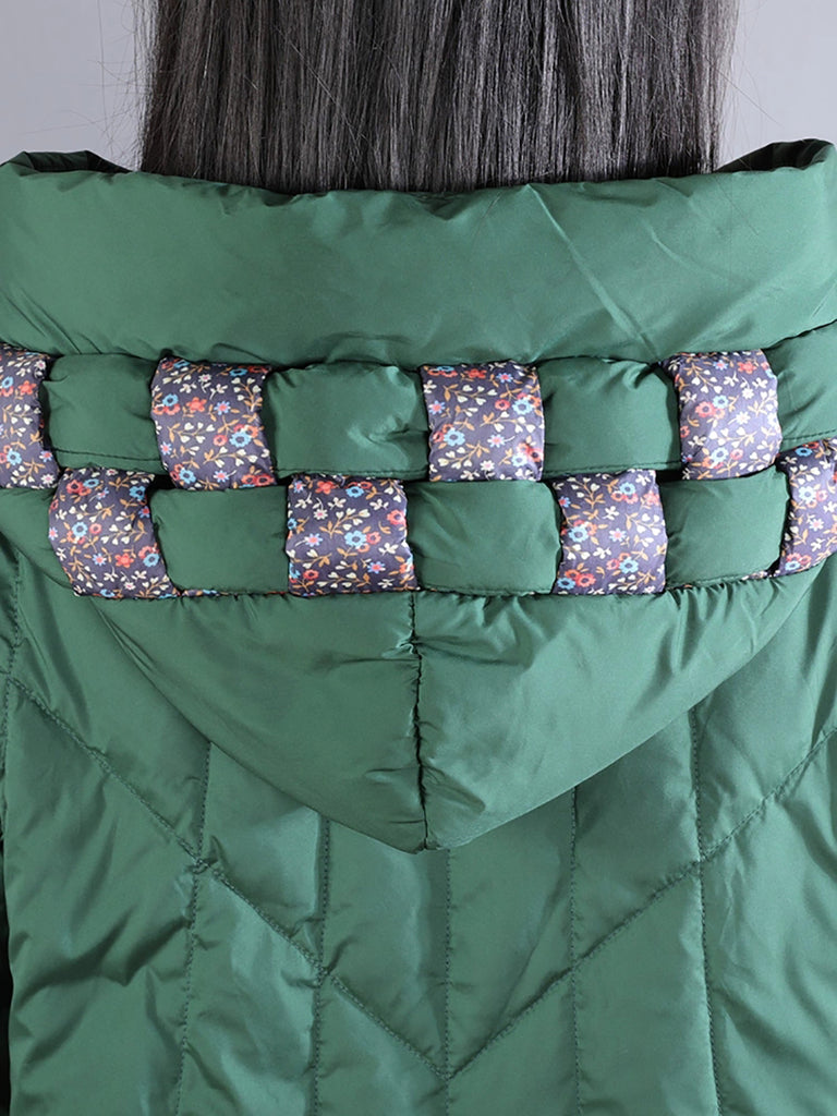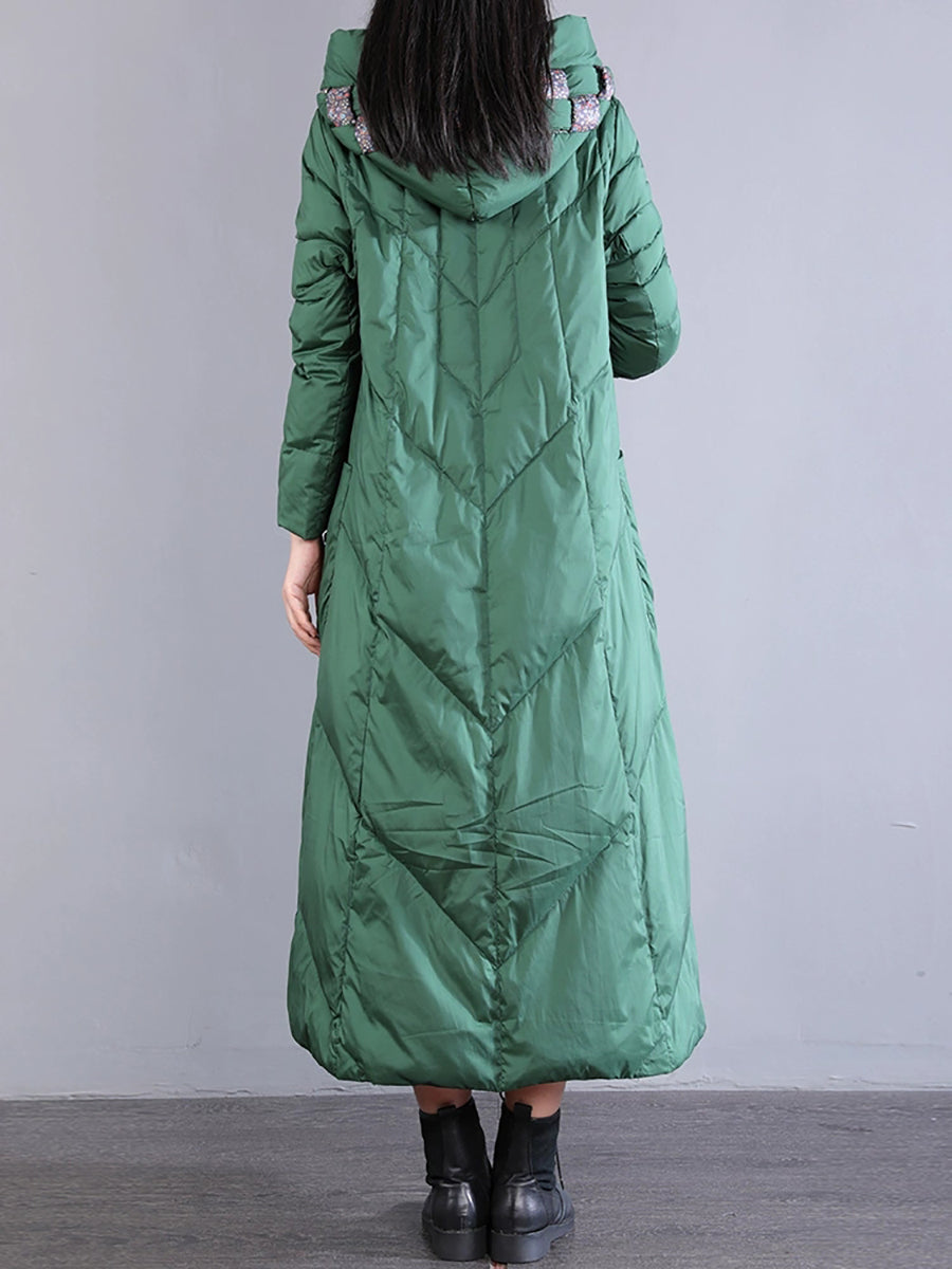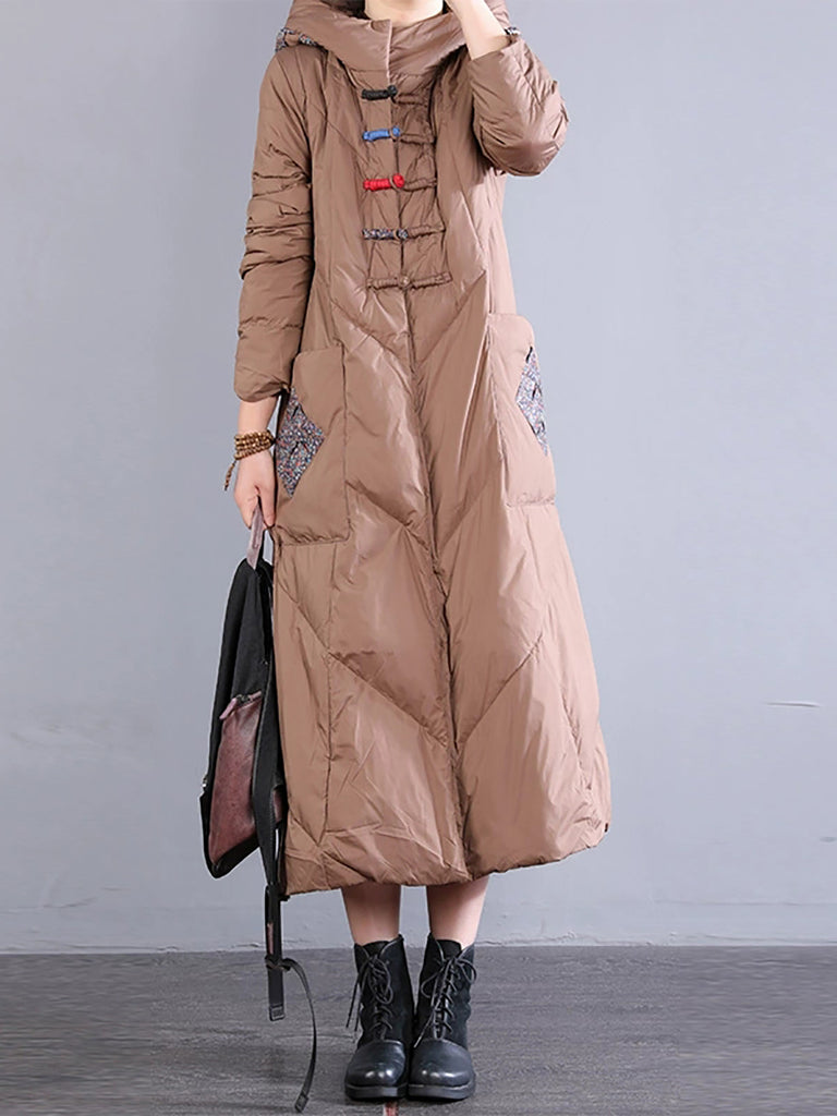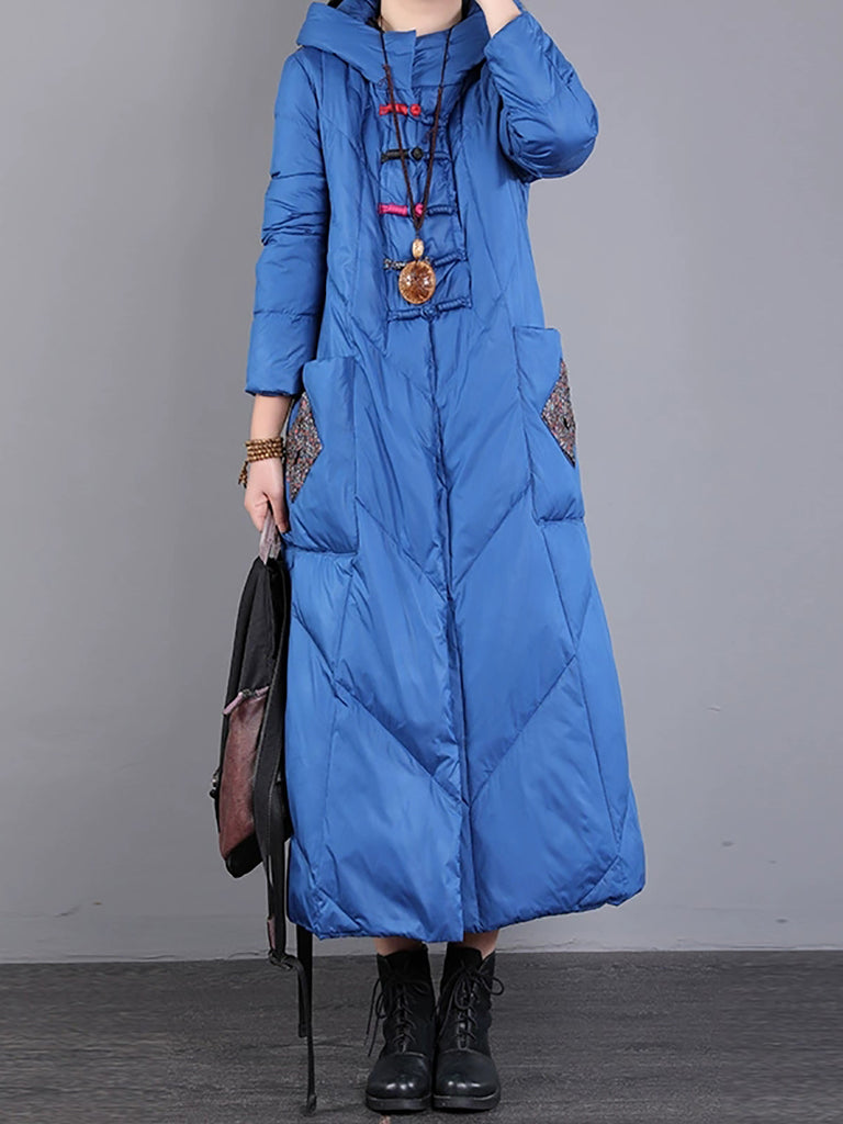 Women Winter Retro Emrboidery Padded Long Coat