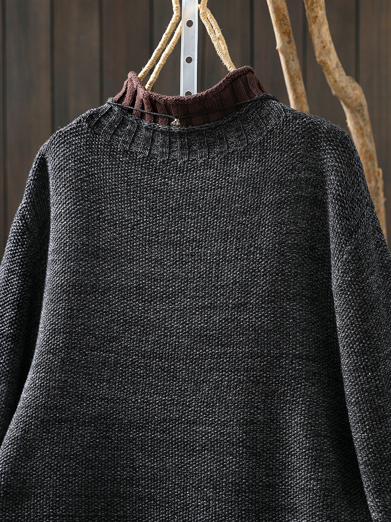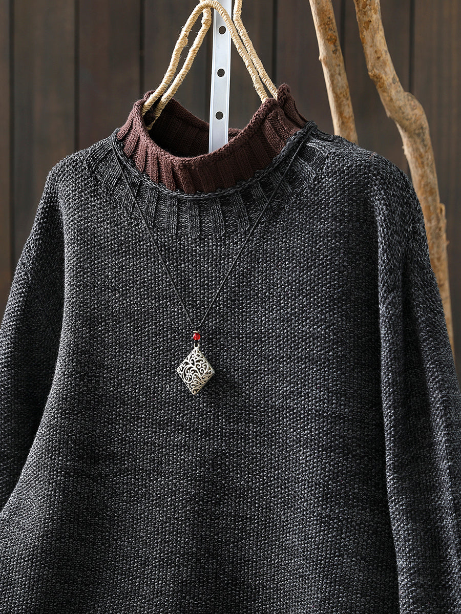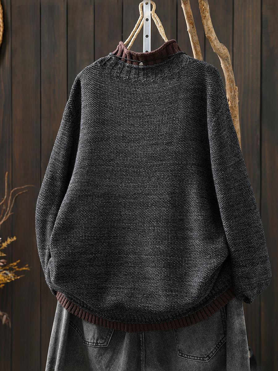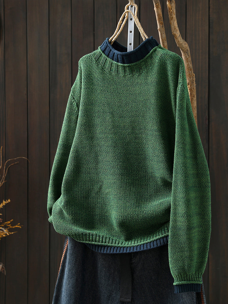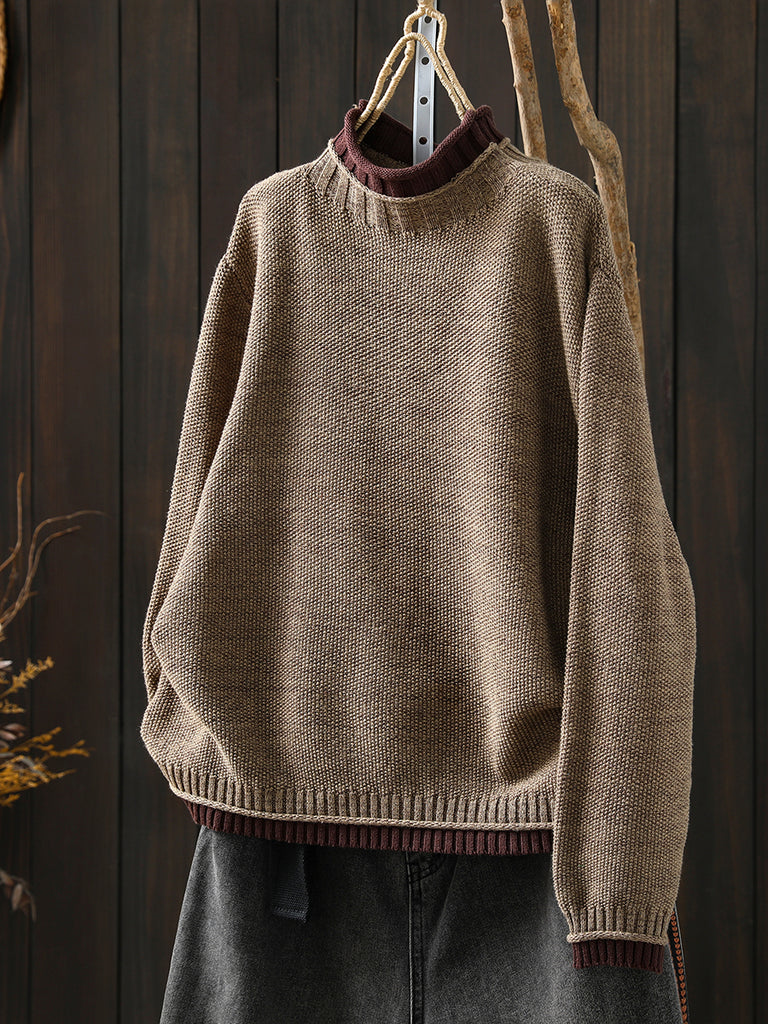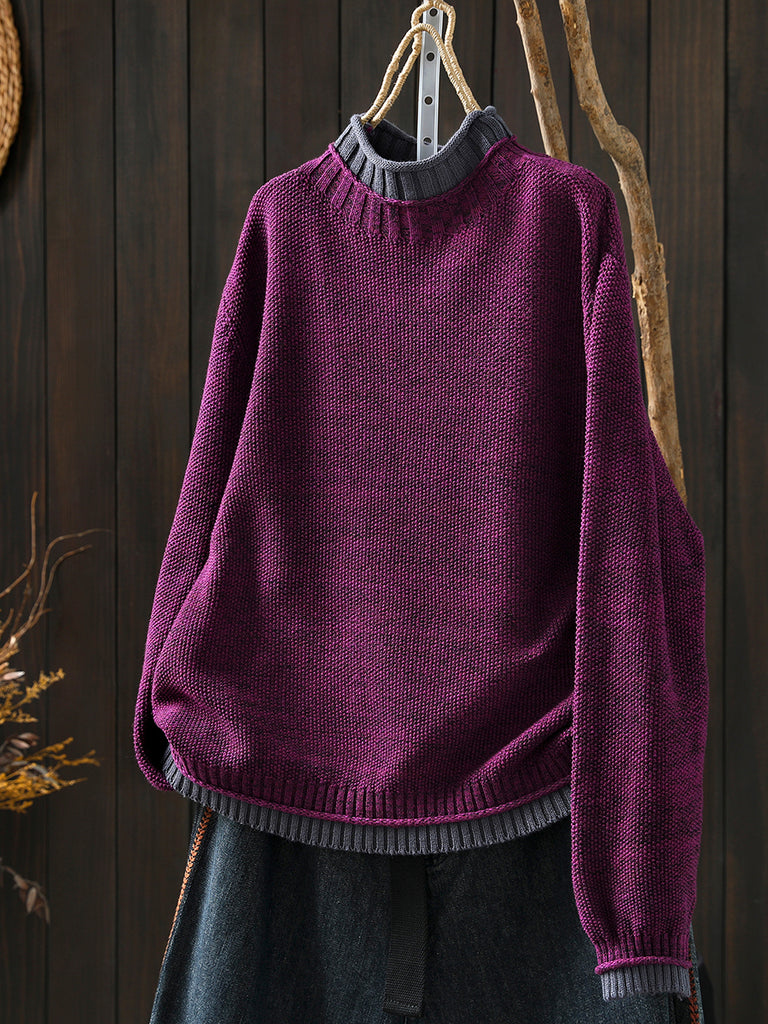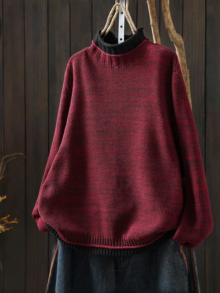 Women Autumn Artsy Colorblock Half-Turtleneck Sweater