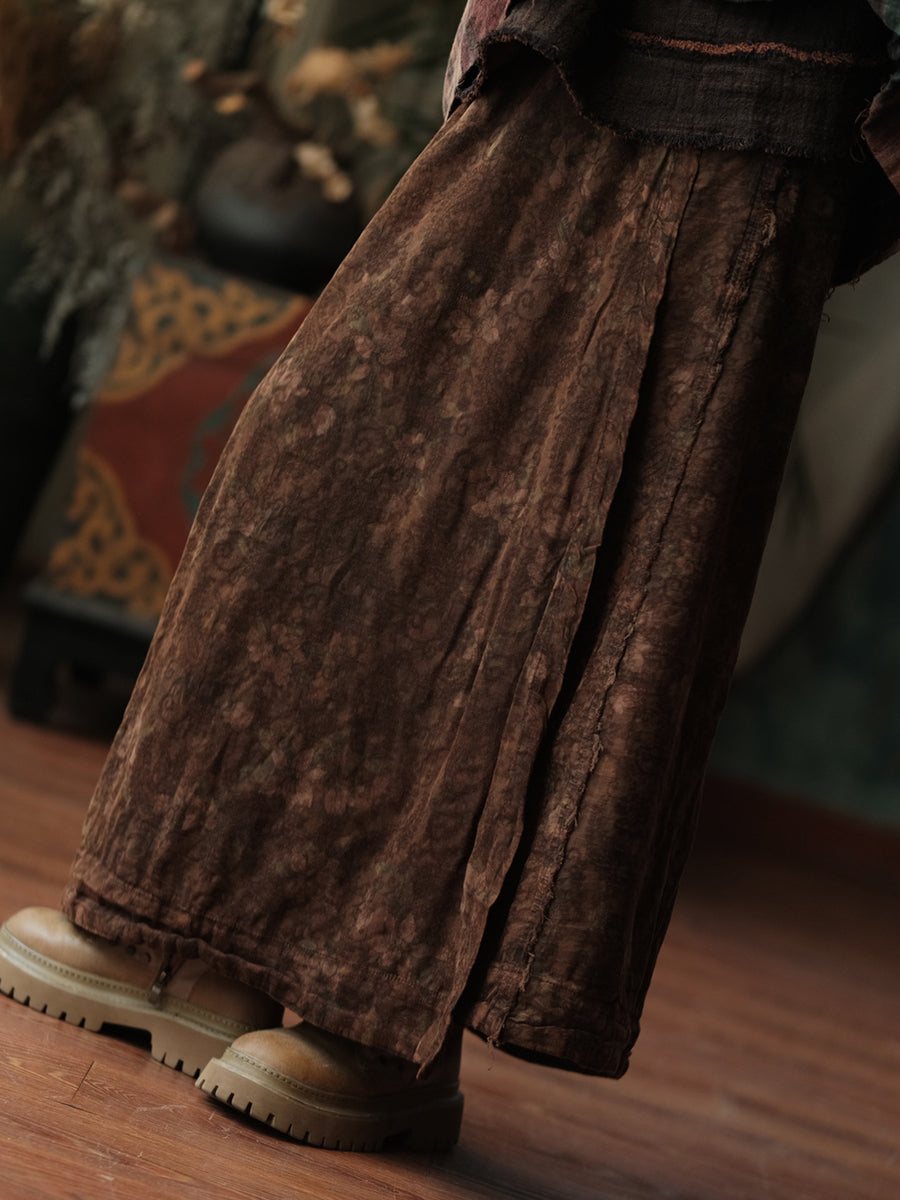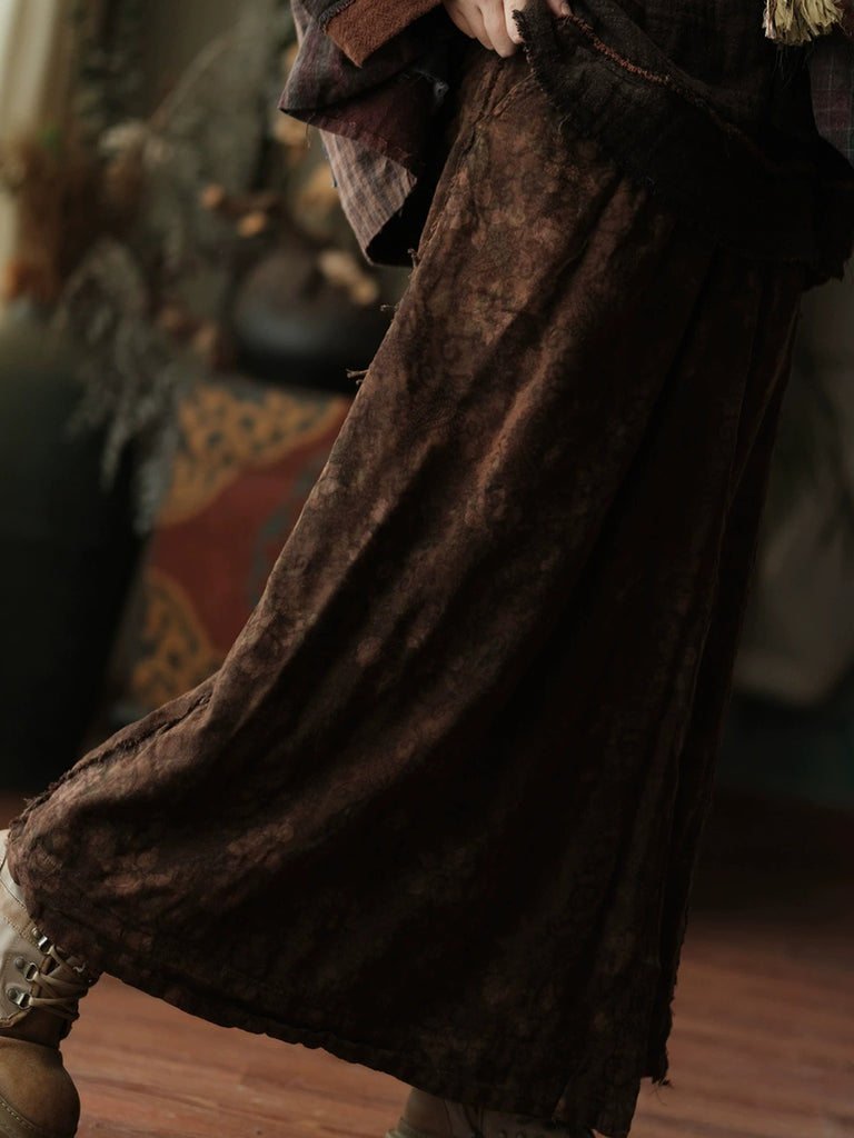 Women Autumn Retro Flower Cotton Straight Skirt