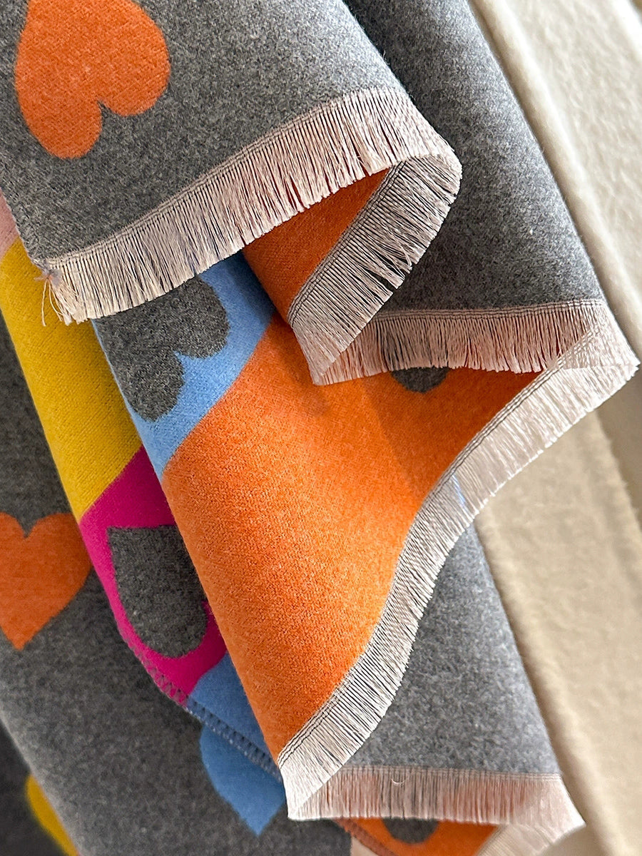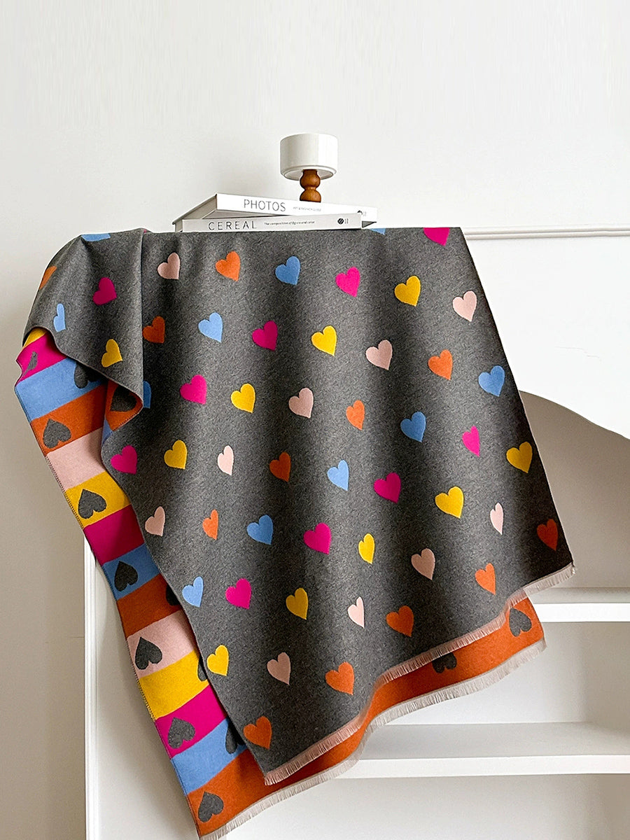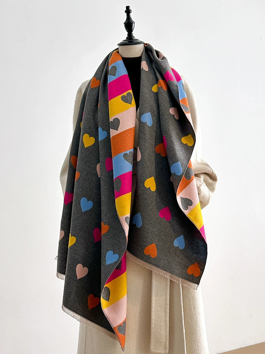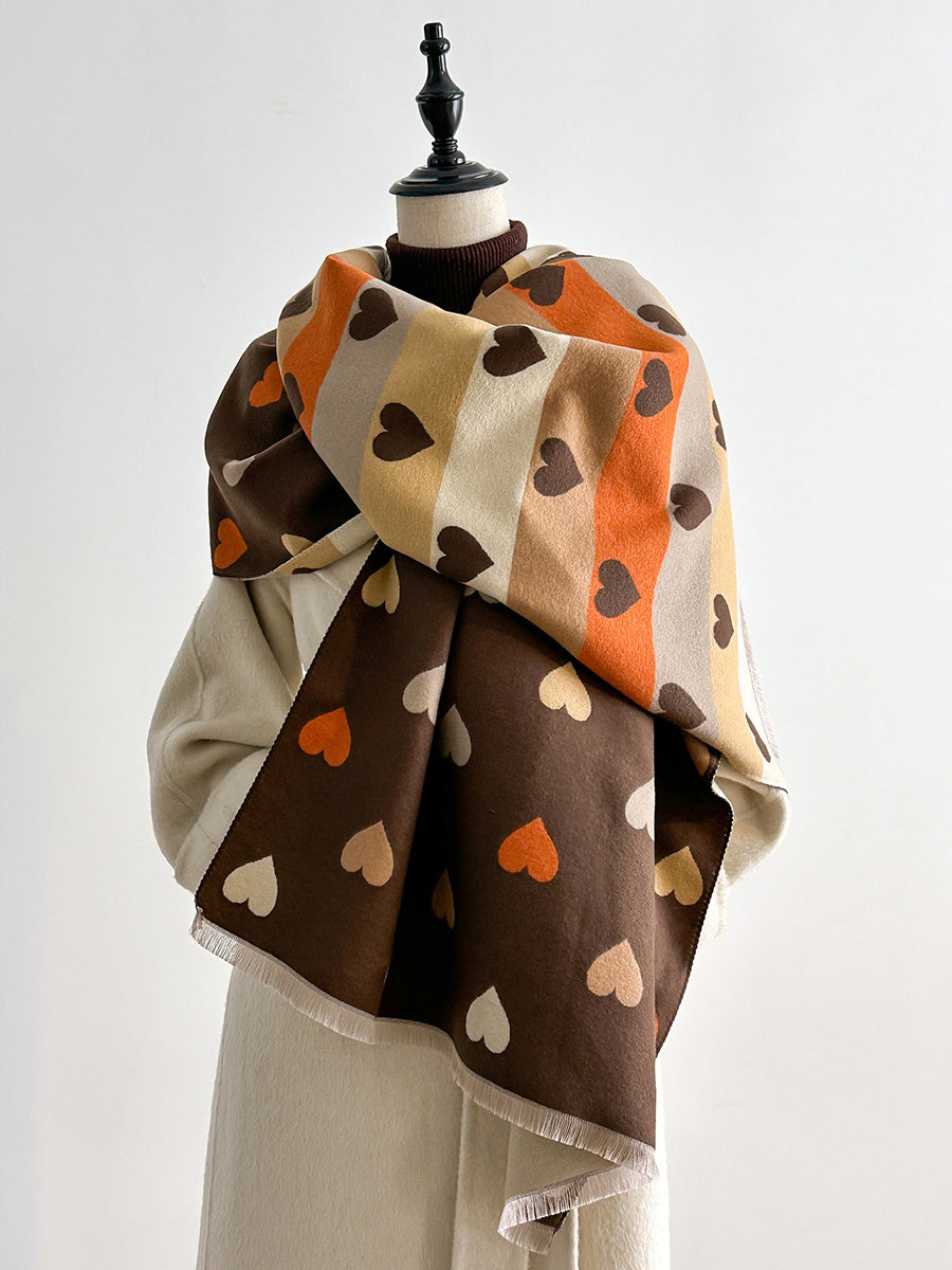 Women Fashion Heart Stripe Warm Shawl Scarf