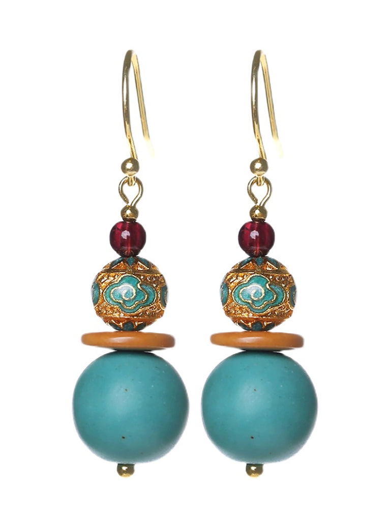 Women Turquoise Cloisonne S925Silver Plated Glod Earrings