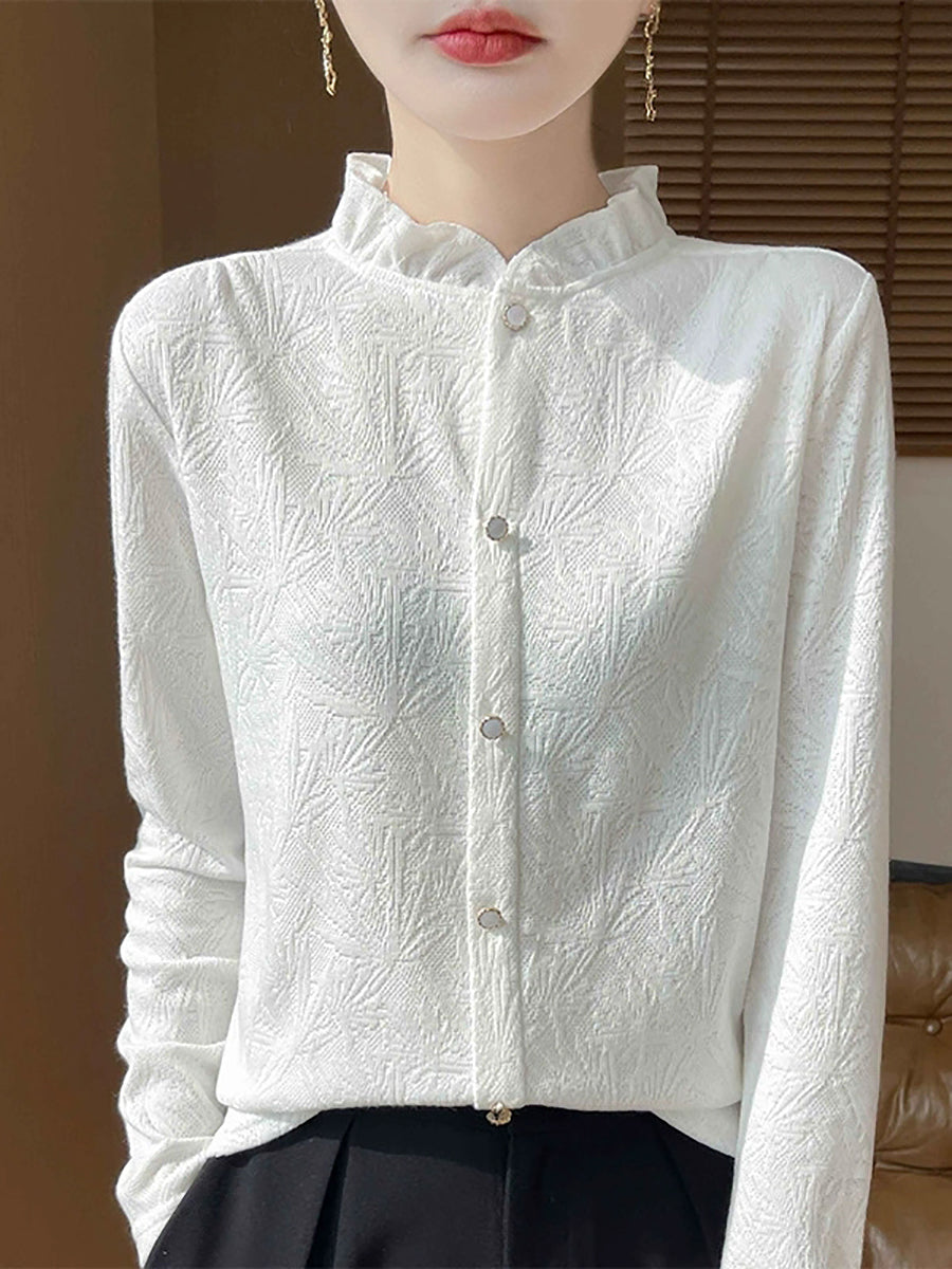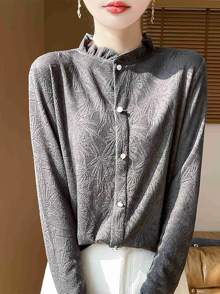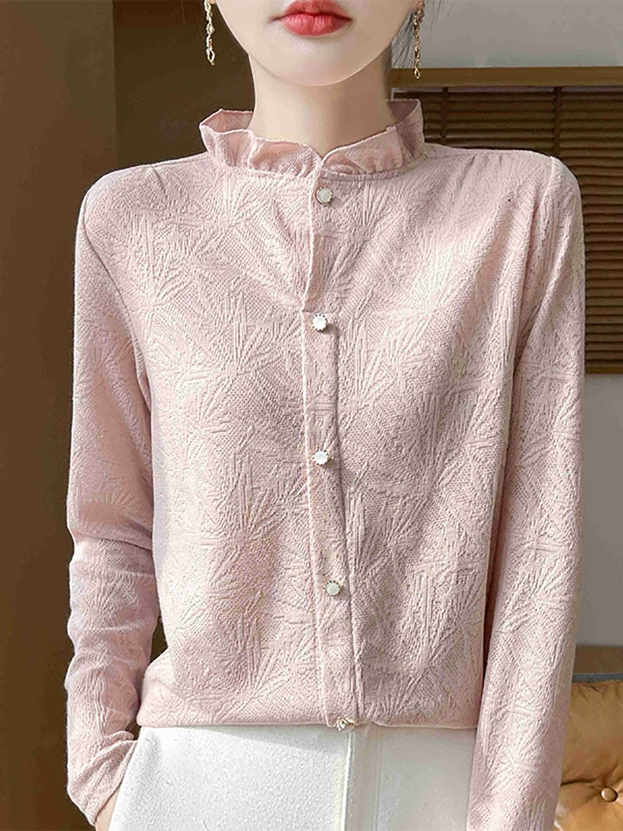 Women Artsy Spring Jackqard Stand Collar Sweater