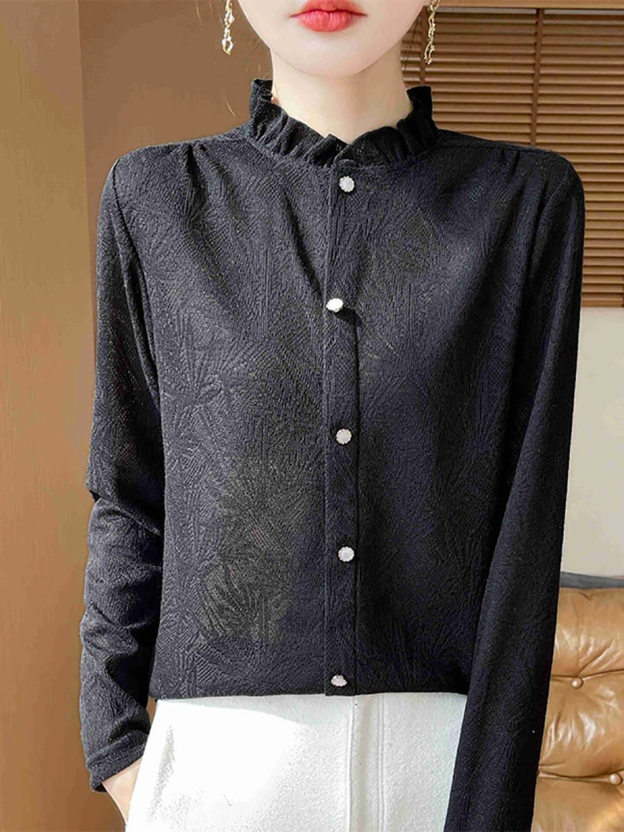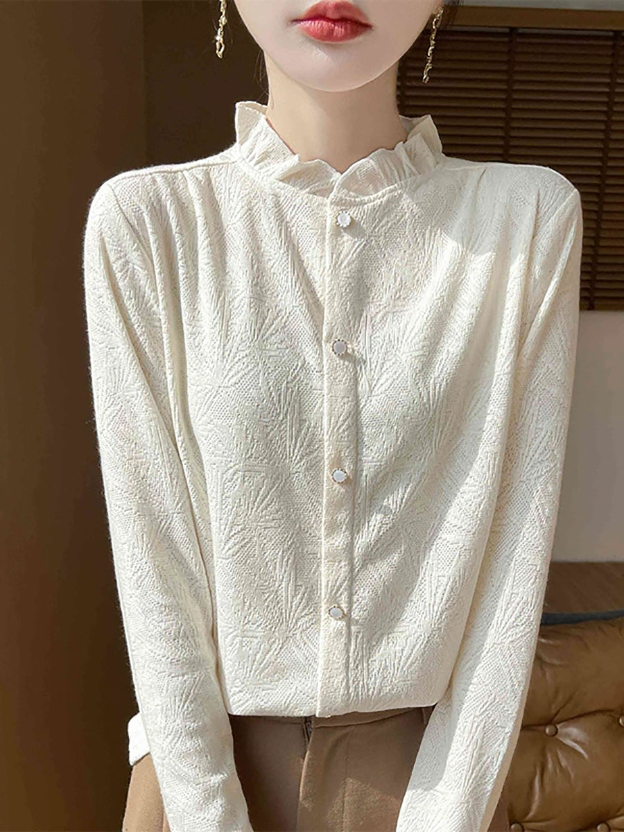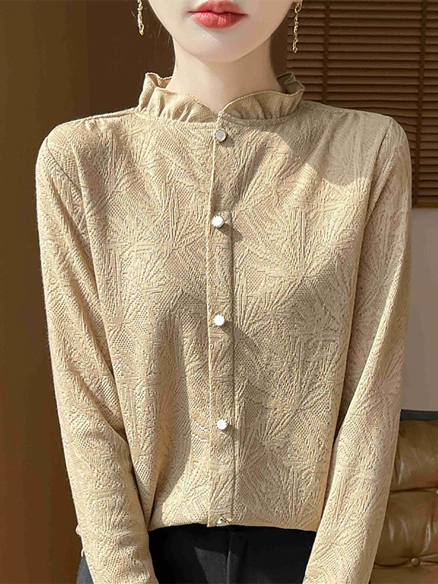Women Artsy Spring Jackqard Stand Collar Sweater