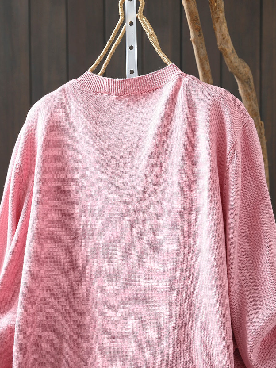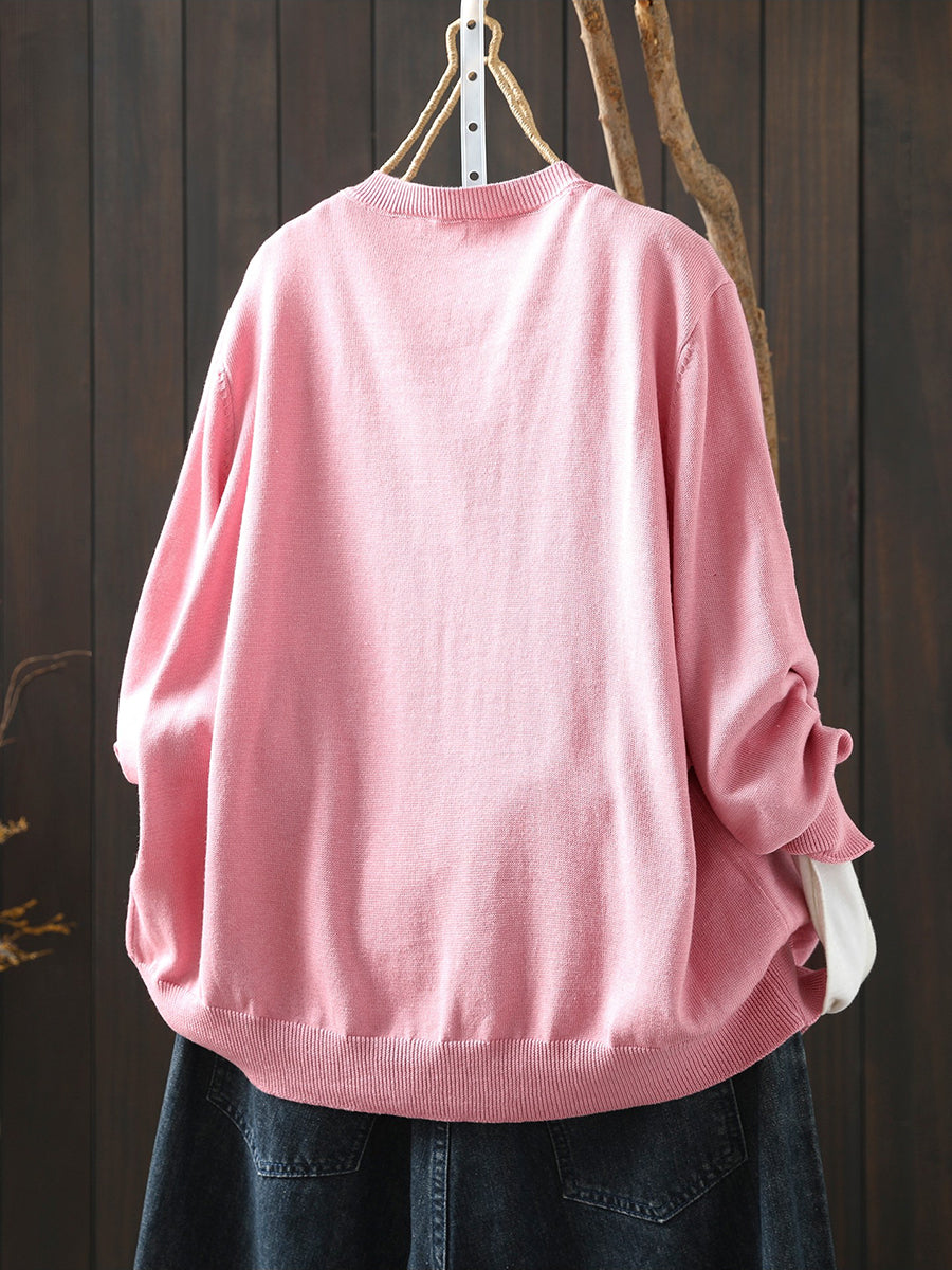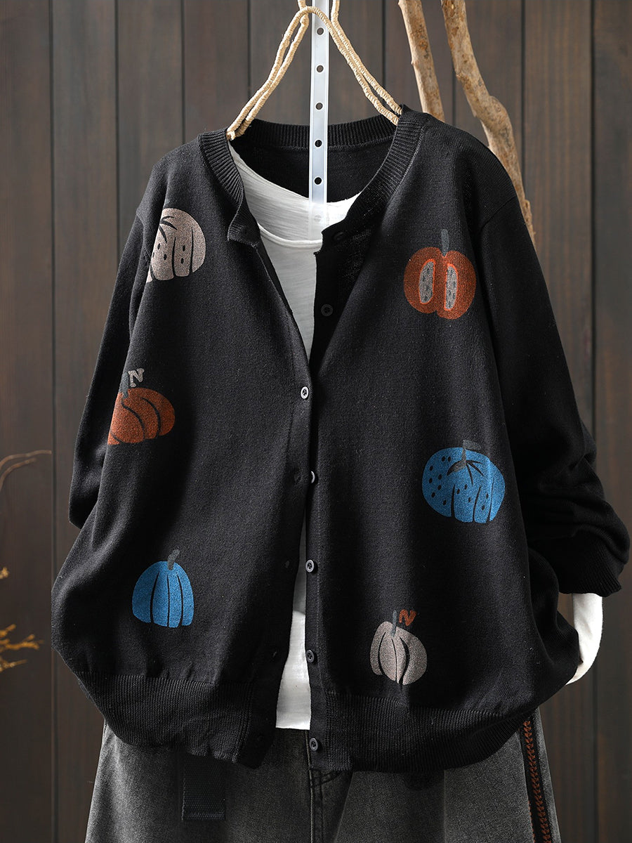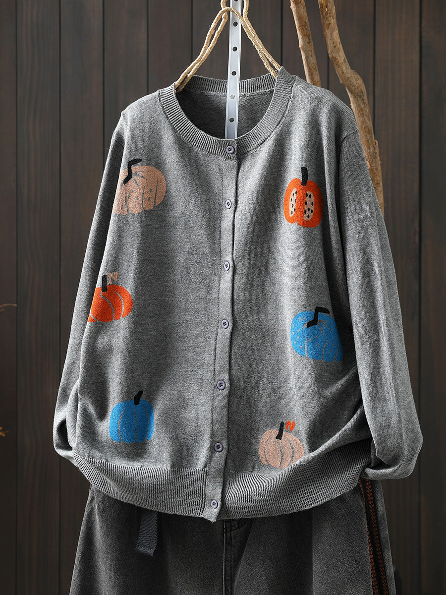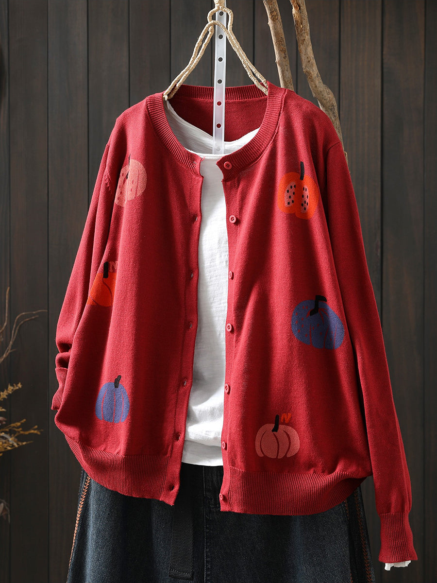 Women Artsy Spring Pumpkin O-Neck Sweater