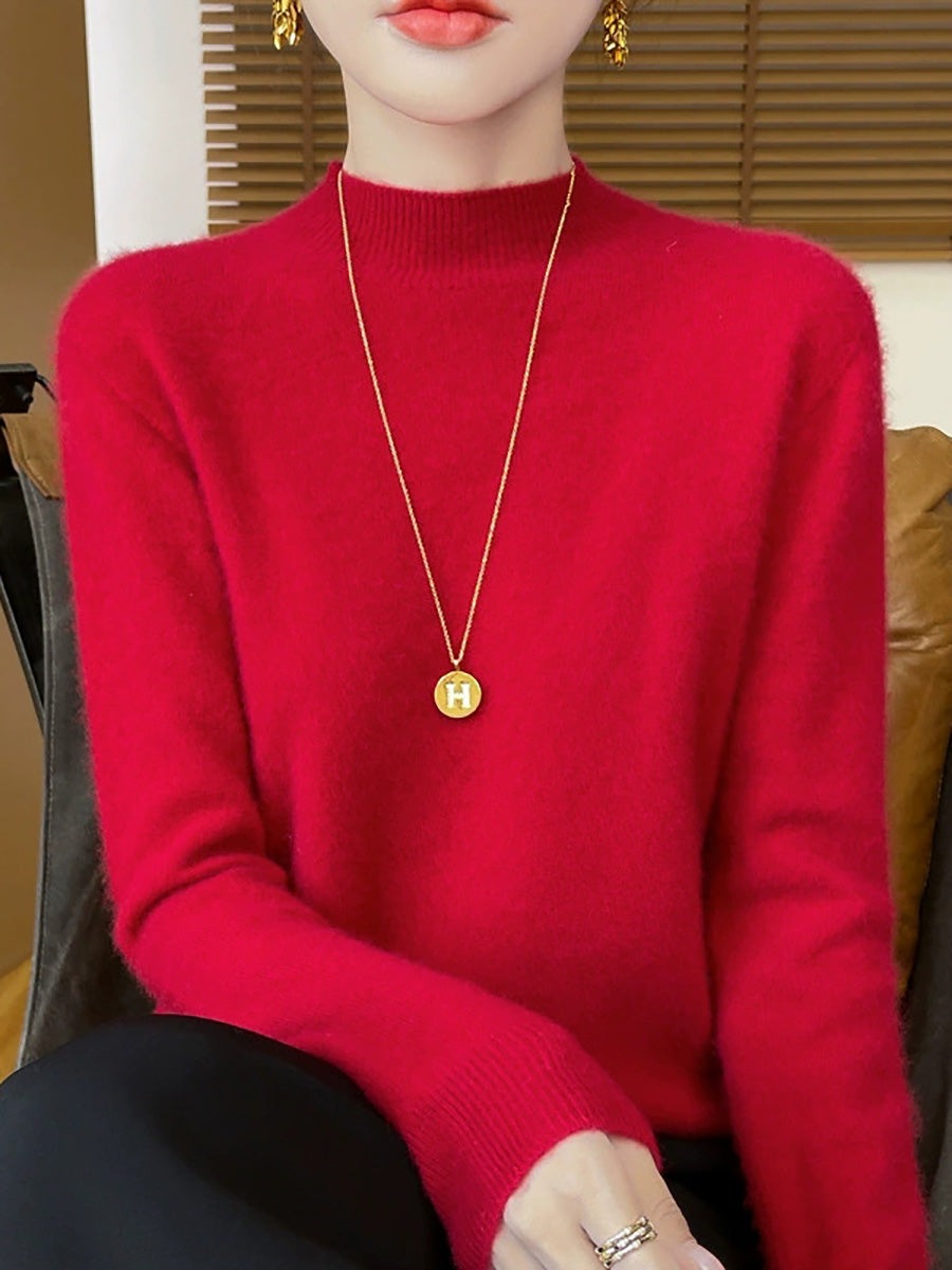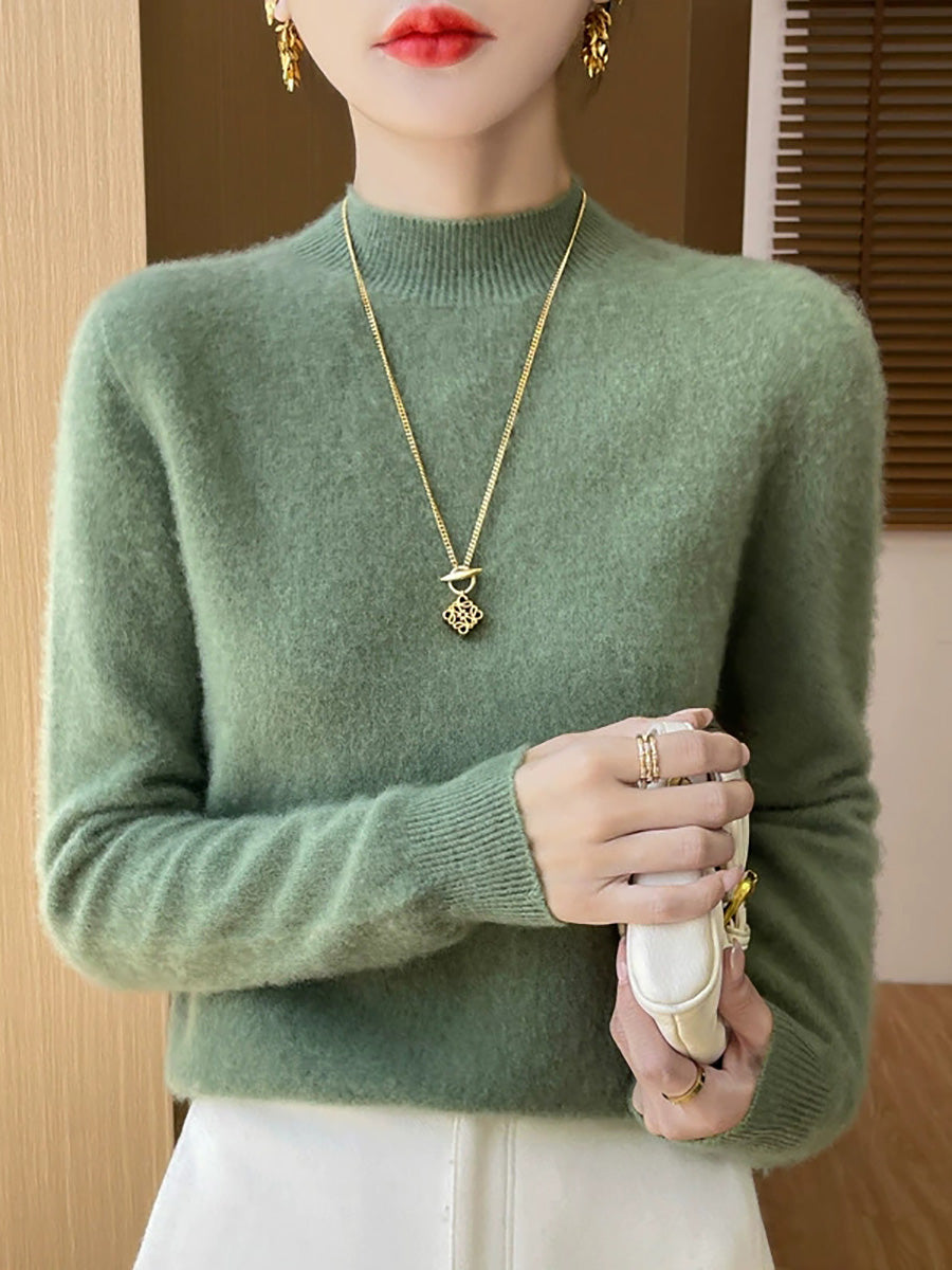 Women Artsy Spring Pure Color Half-turtleneck Sweater