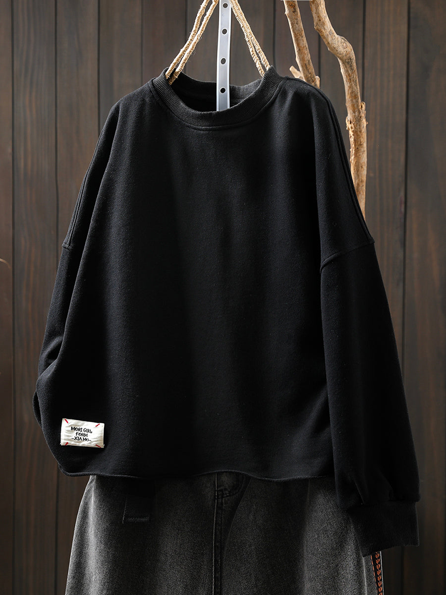 Plus Size Women Autumn Casual Pure Color O-Neck Blouse