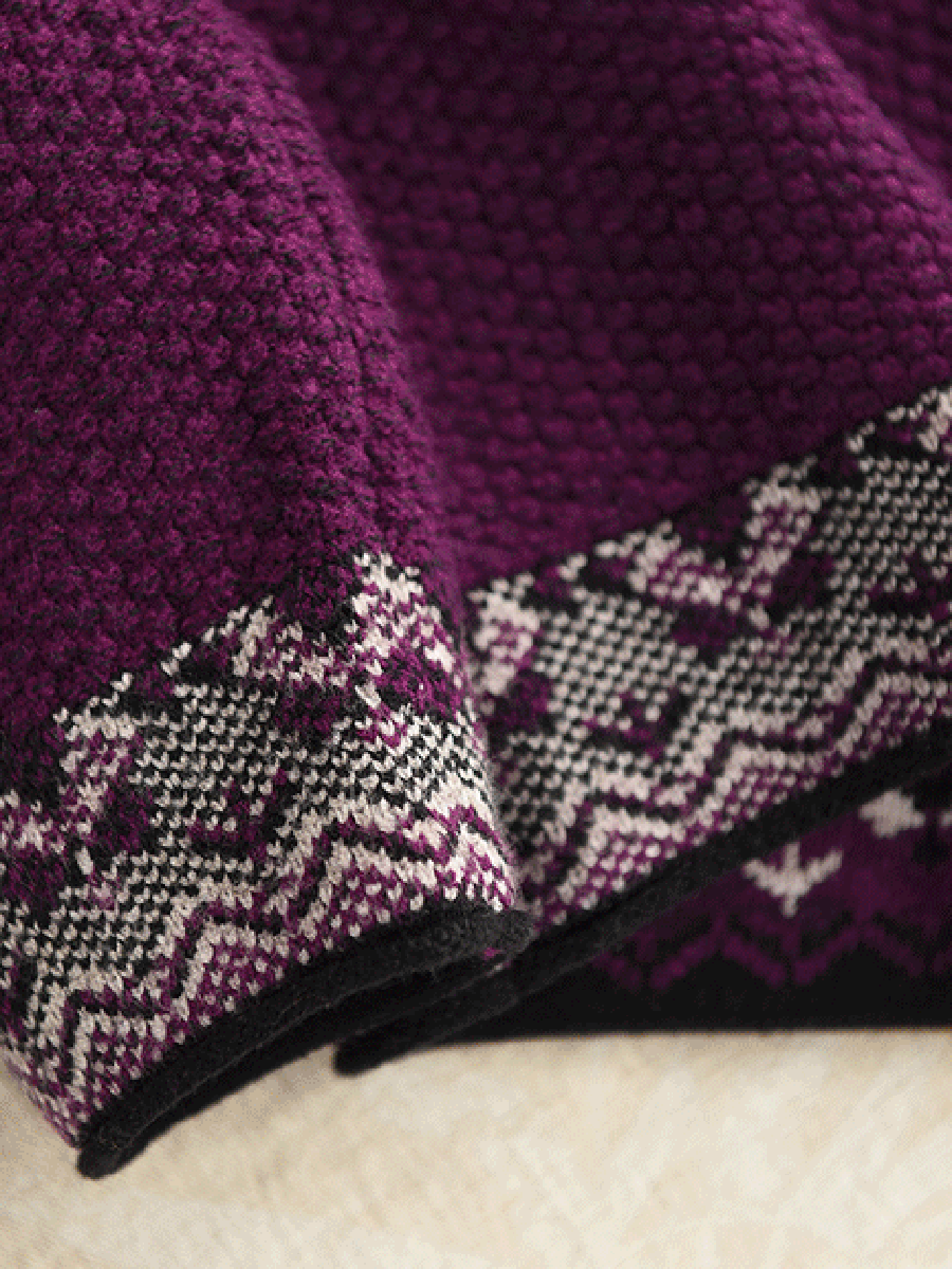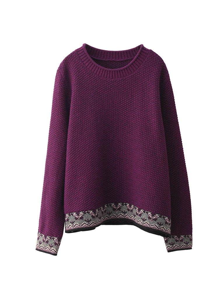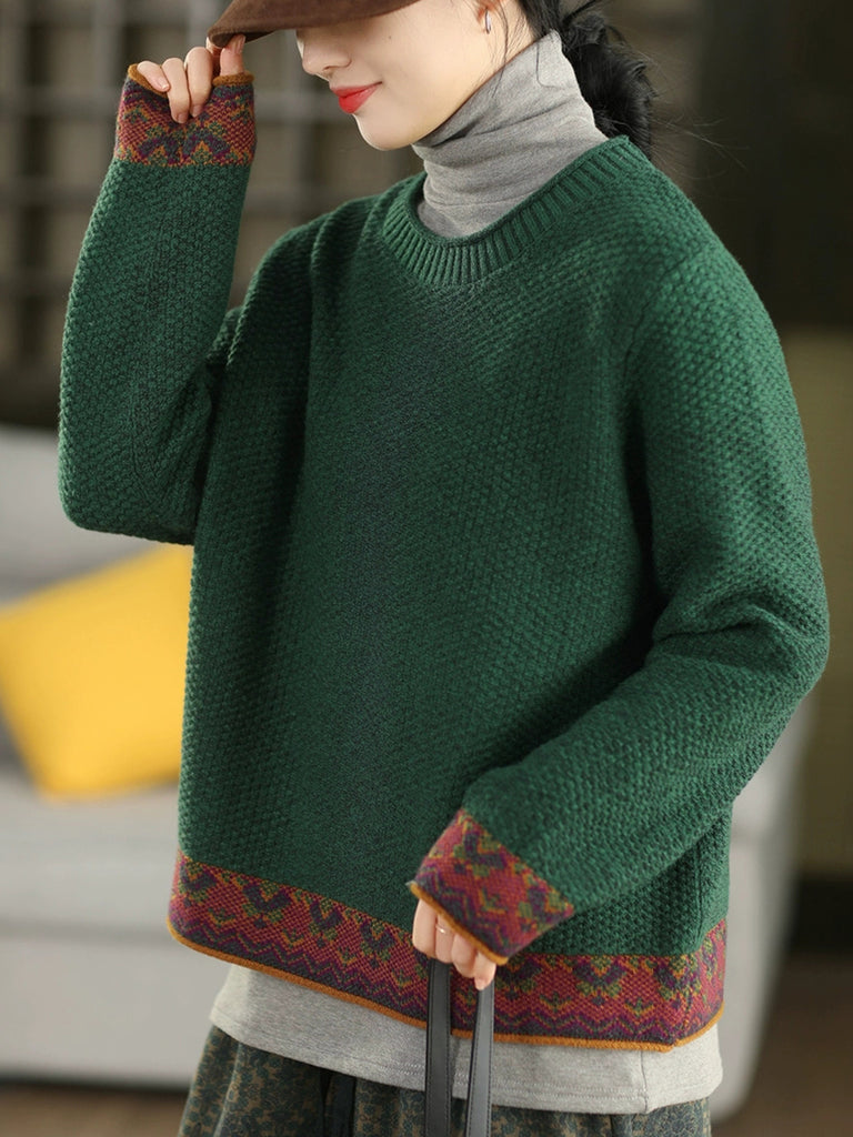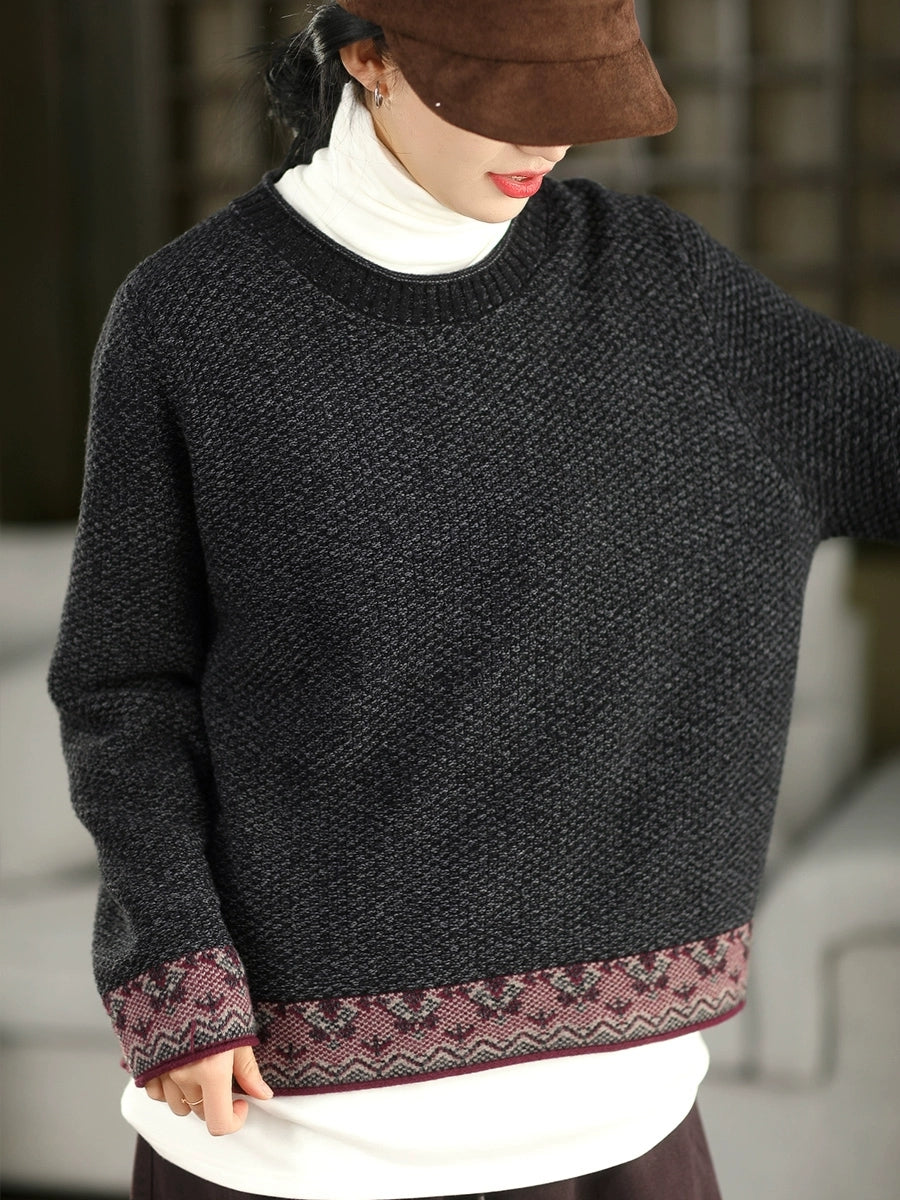 Women Autumn Ethnic Jacquard O-Neck Sweater