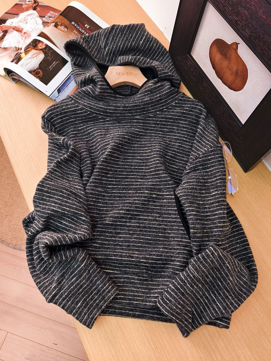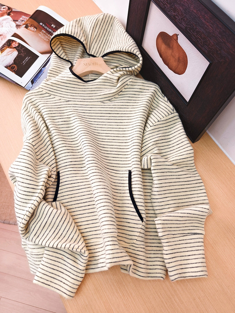 Women Casual Autumn Stripe Pocket Soft Hoodie