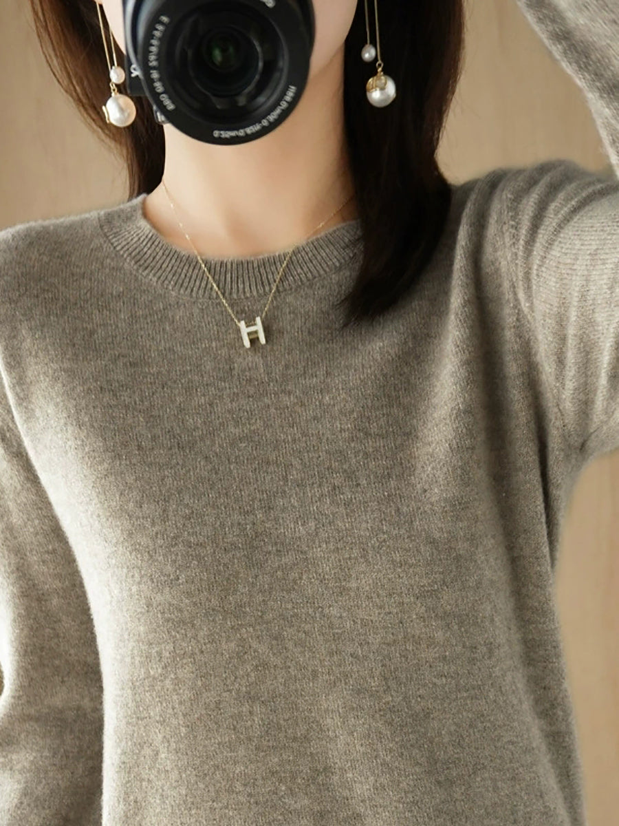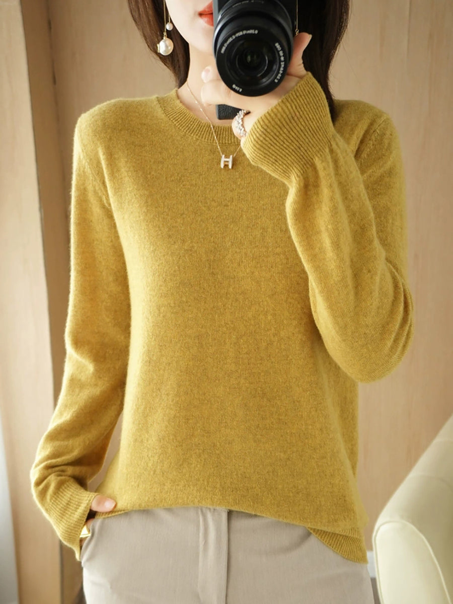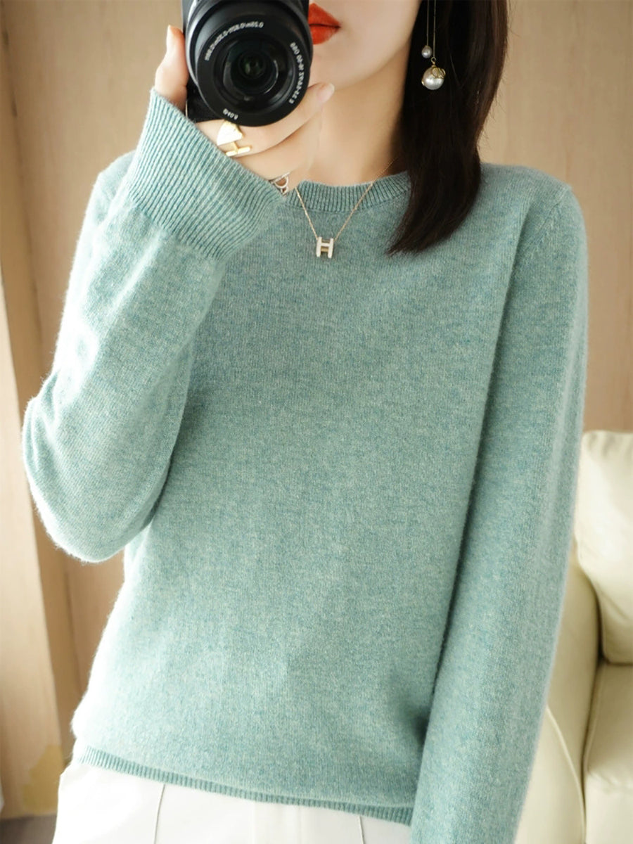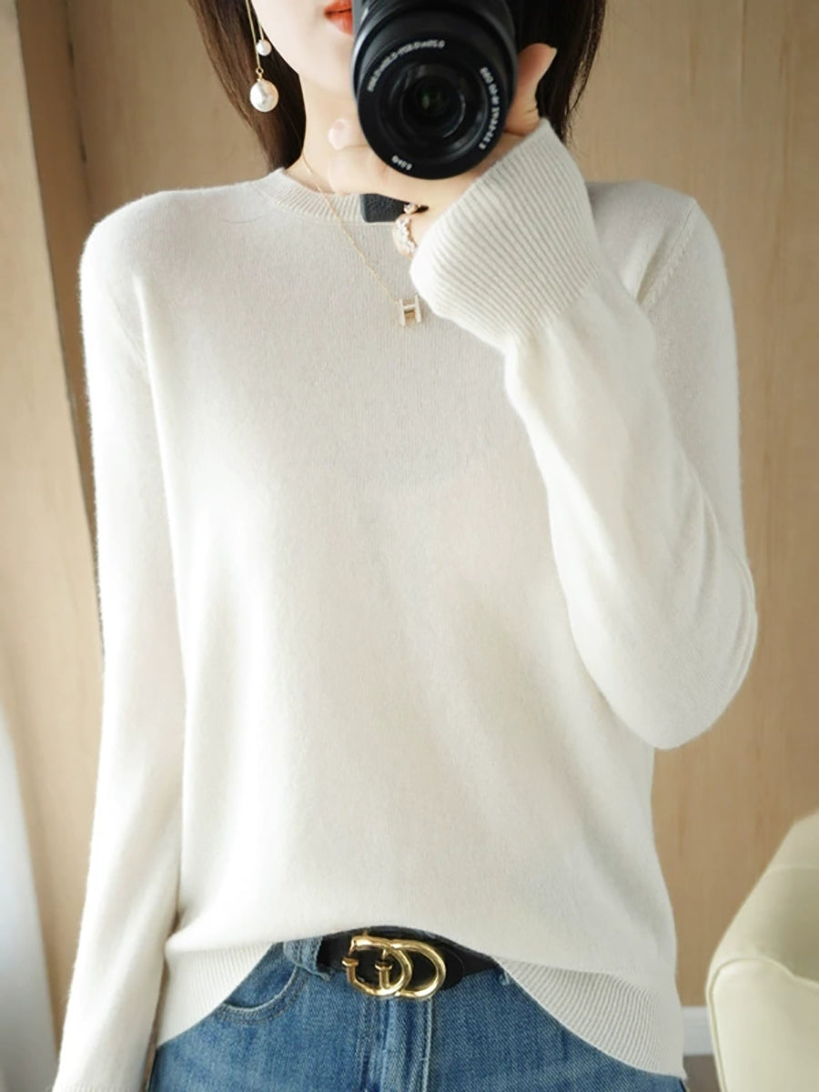 Women Casual Spring Pure Color O-Neck Sweater