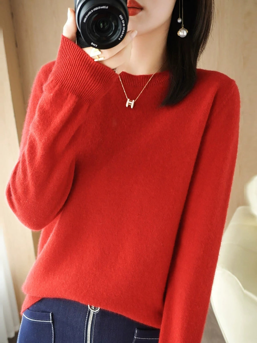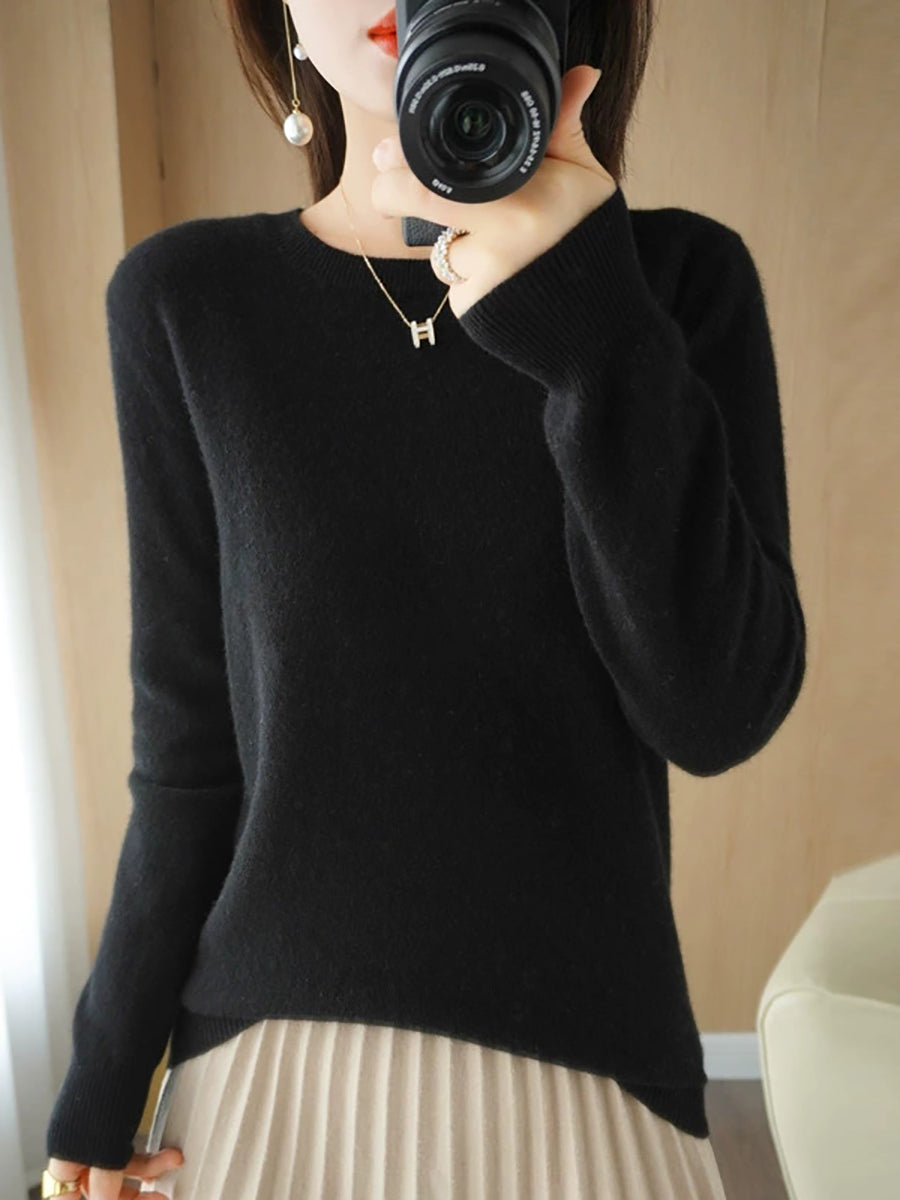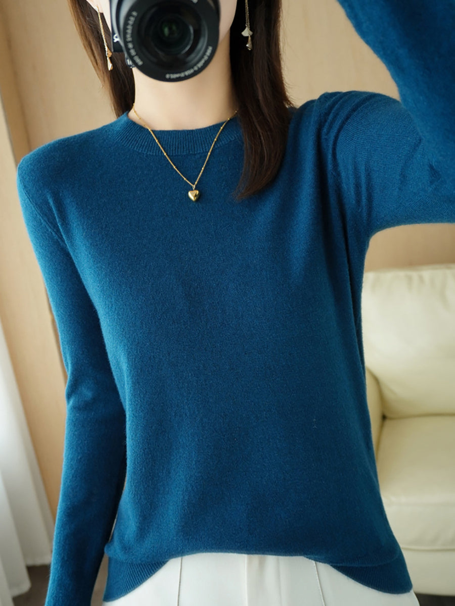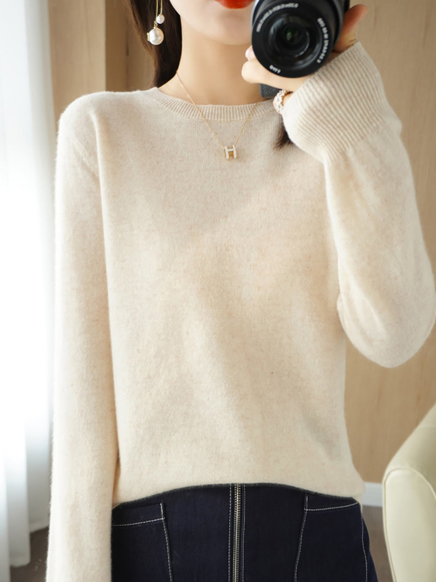 Women Casual Spring Pure Color O-Neck Sweater