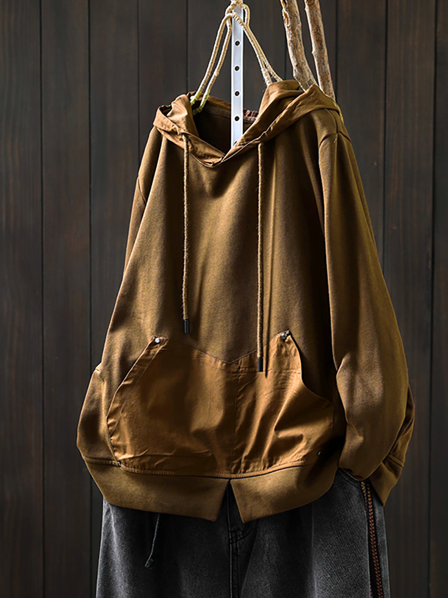 Women Retro Autumn Pure Color 100%Cotton Hoodie
