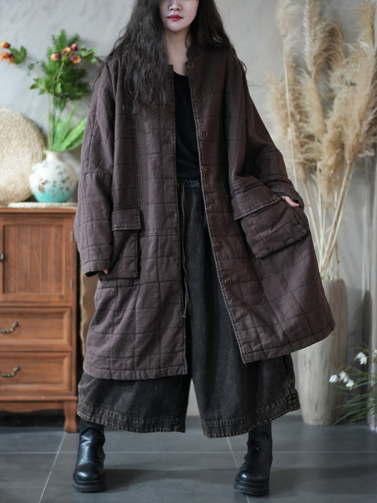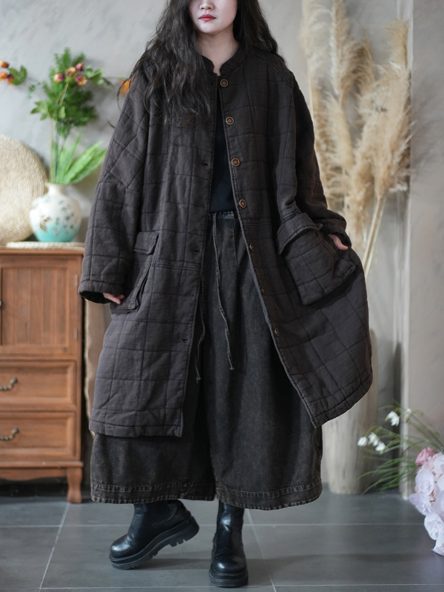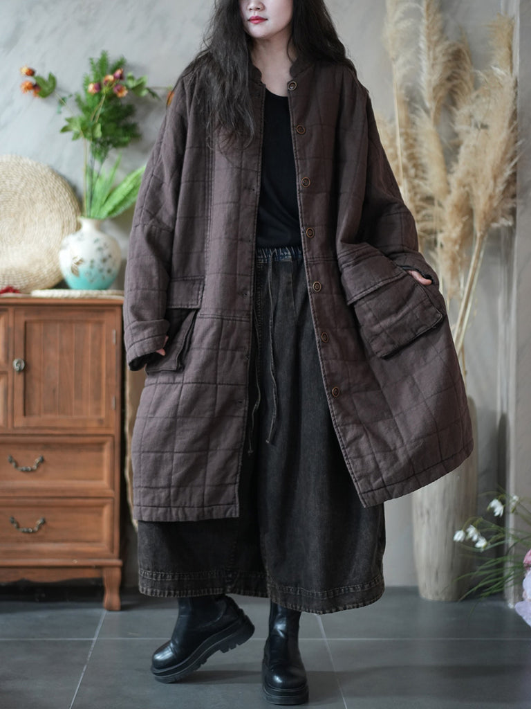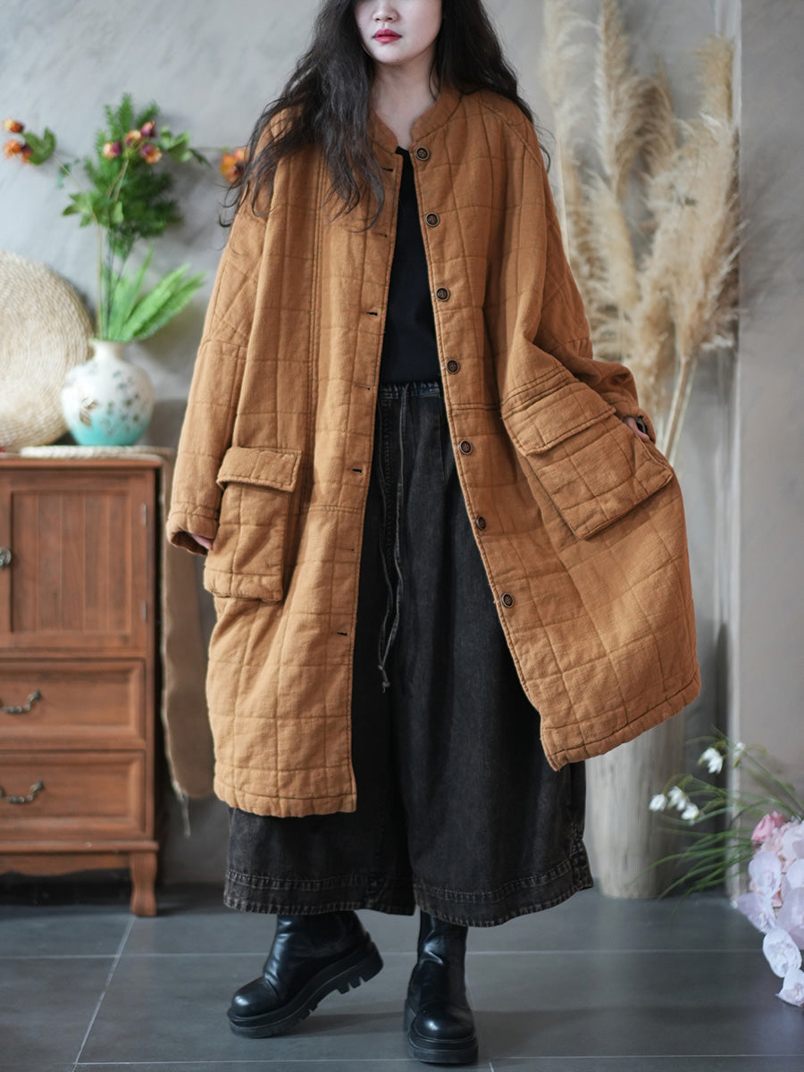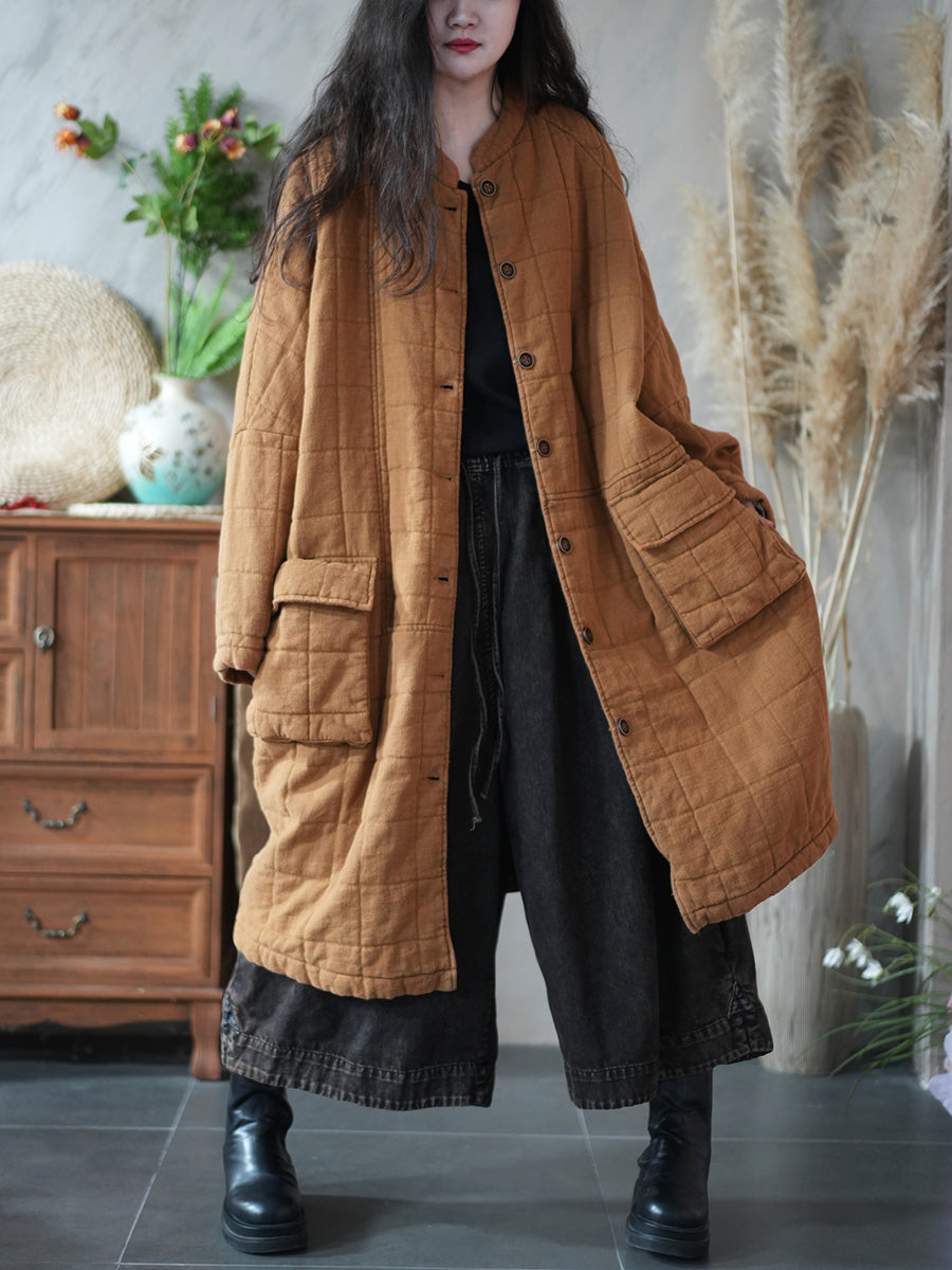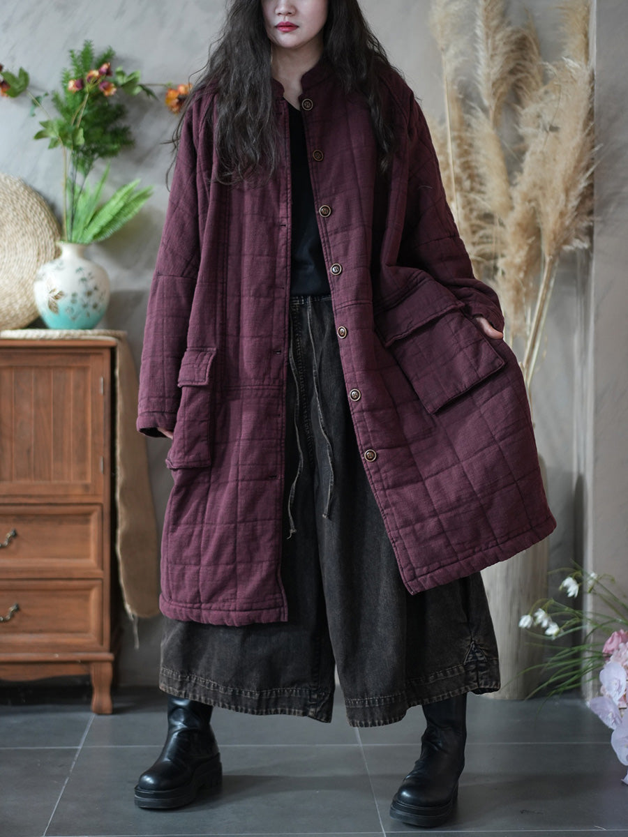 Women Retro Winter Pure Color Stand Collar Padded Coat