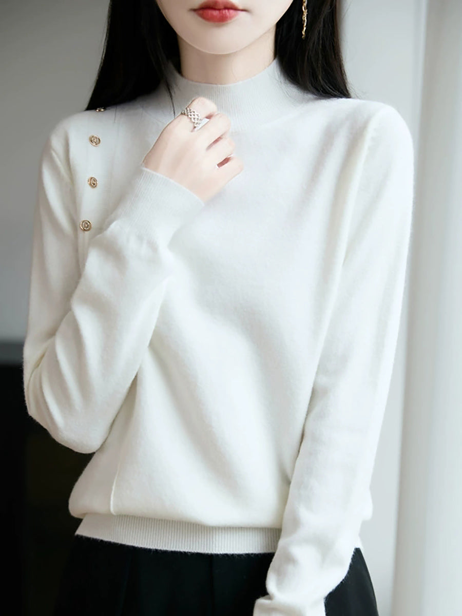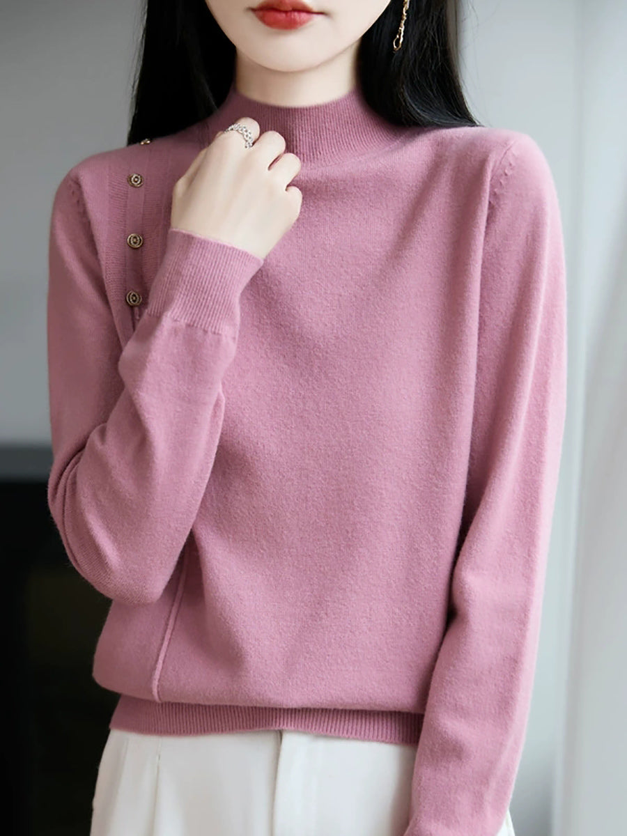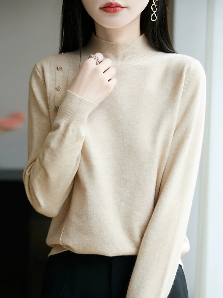 Women Winter Casual Pure Color Turtleneck Bottom Blouse