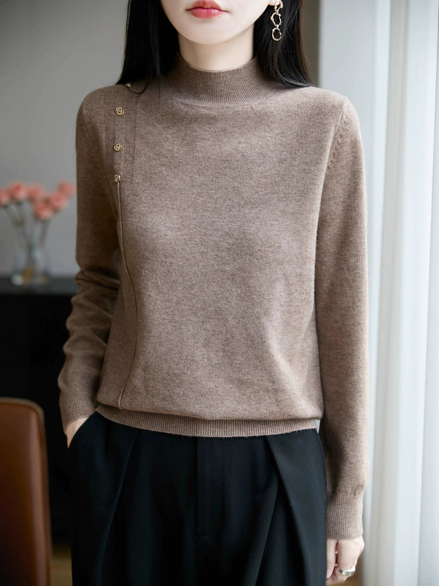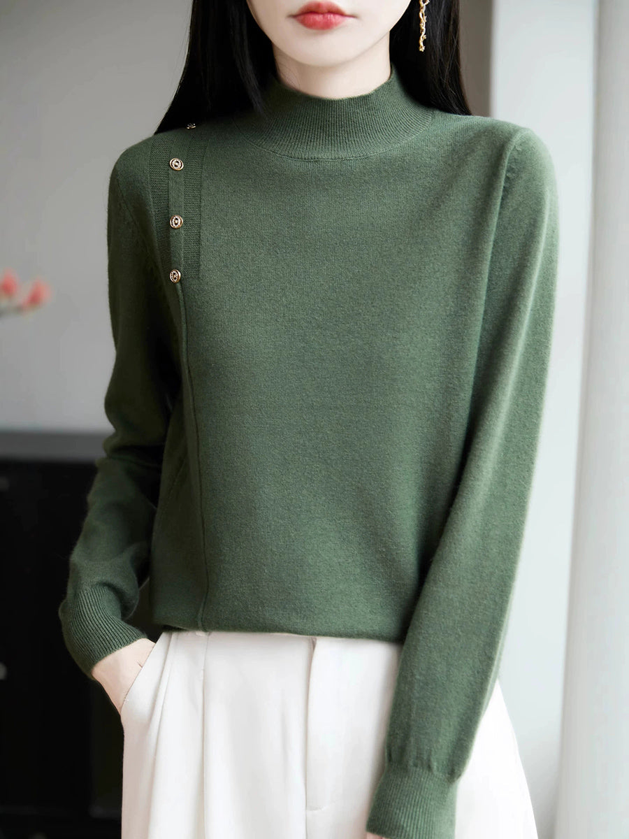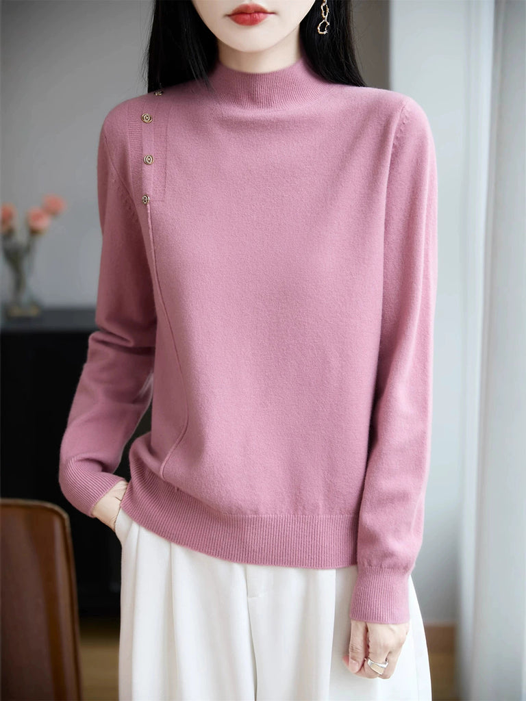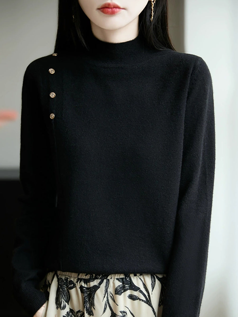Women Winter Casual Pure Color Turtleneck Bottom Blouse